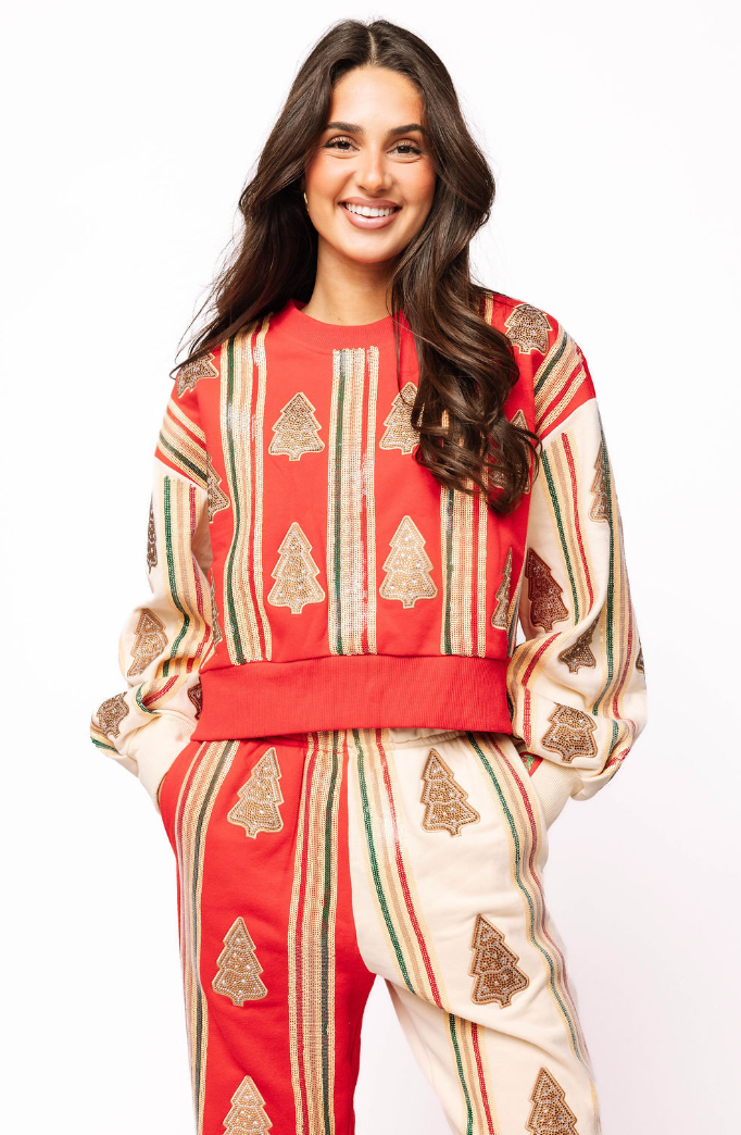 Red & Ivory Striped Christmas Cookie Sweatshirt Queen of Sparkles