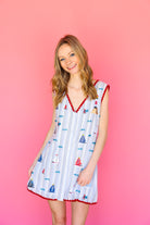 Queen of Sparkles Striped Sailboat V Neck Tank Dress