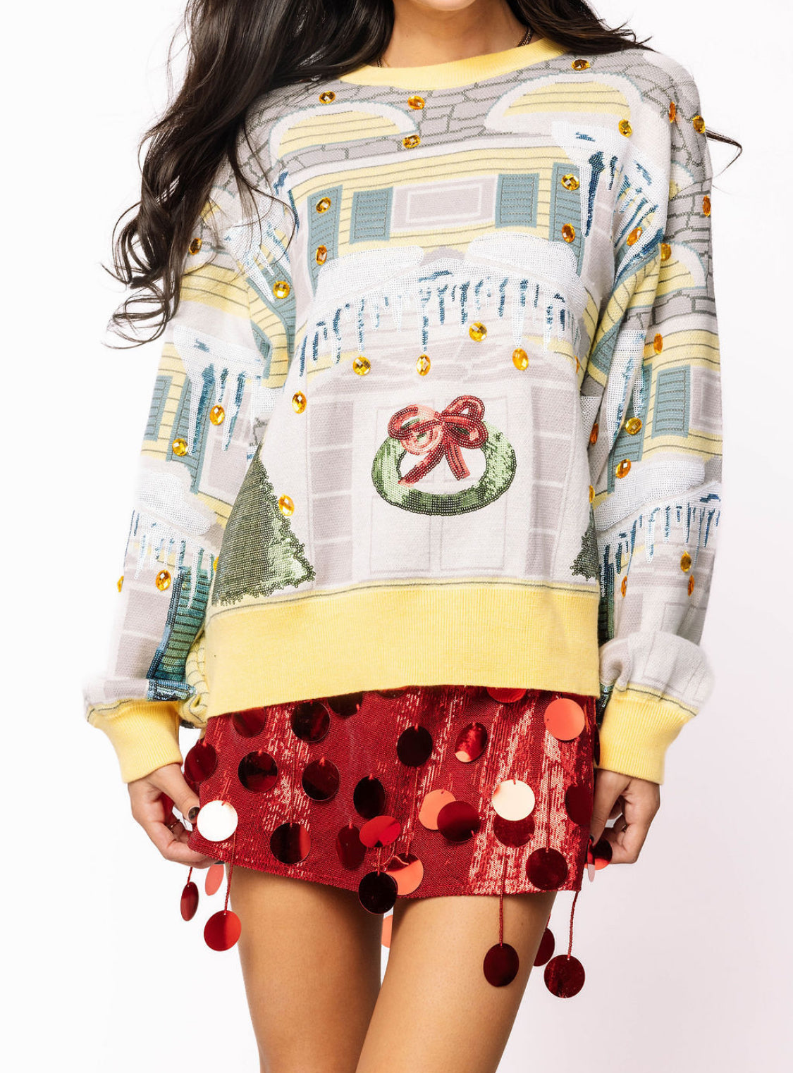 Yellow Twin Griswold House With Wreath On Door Sweater Queen of Sparkles