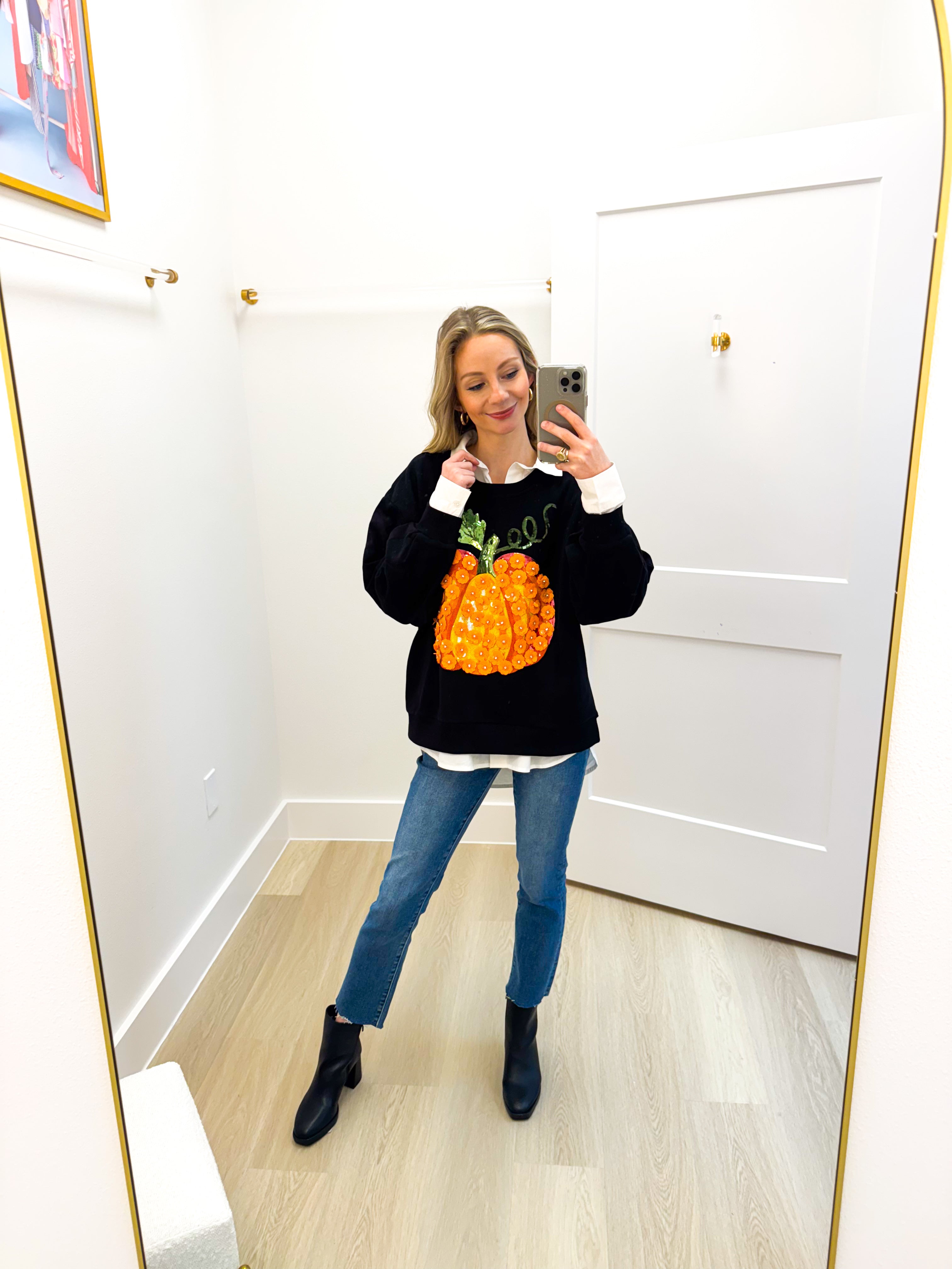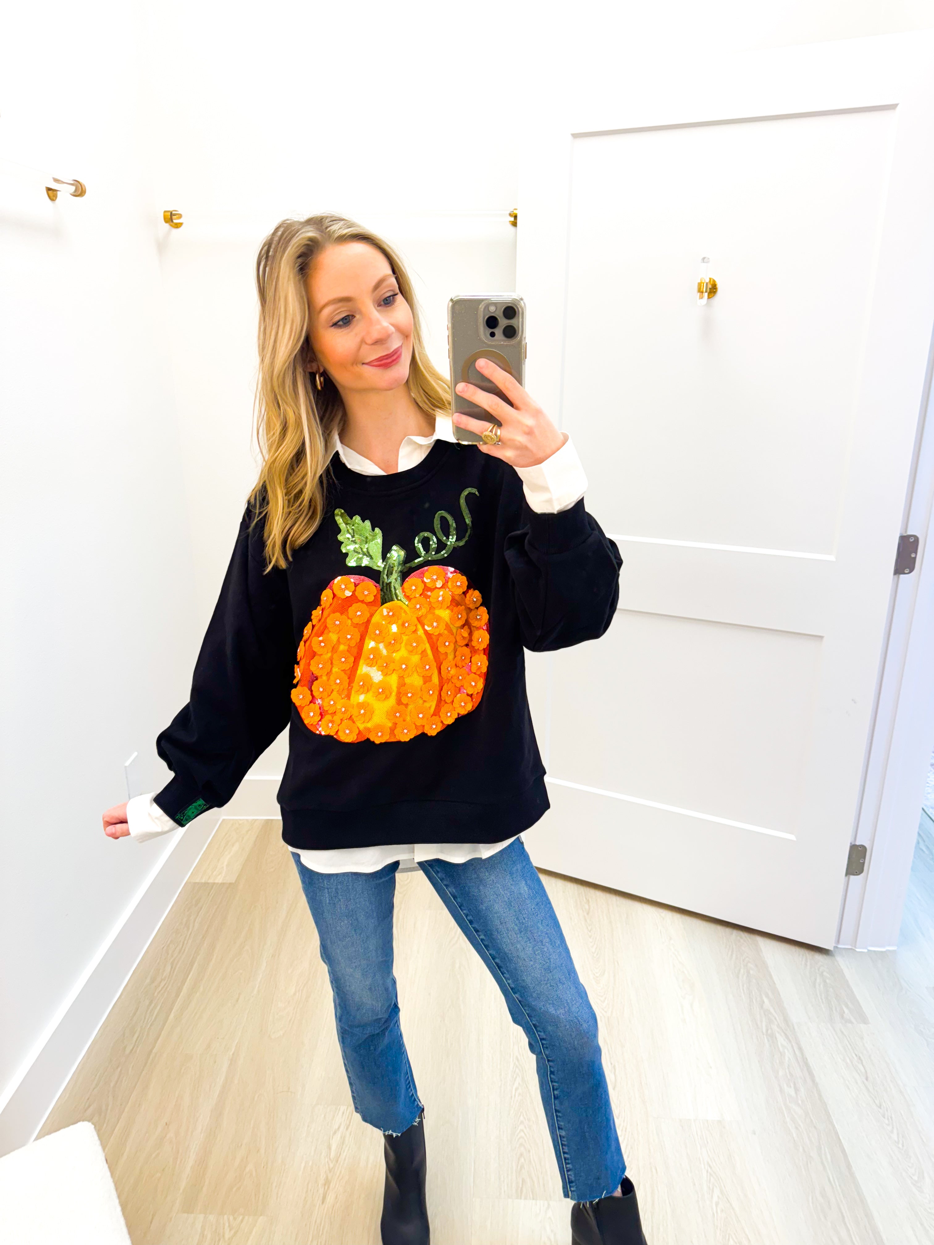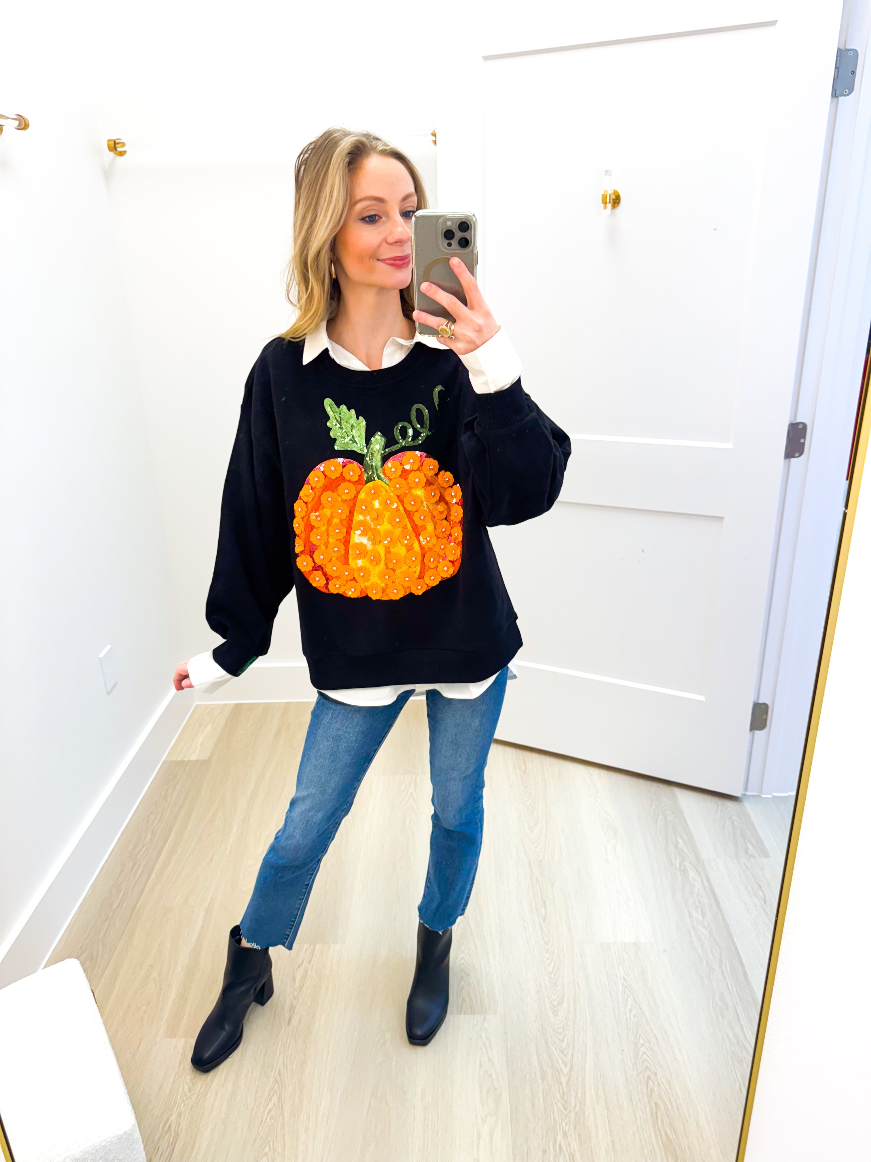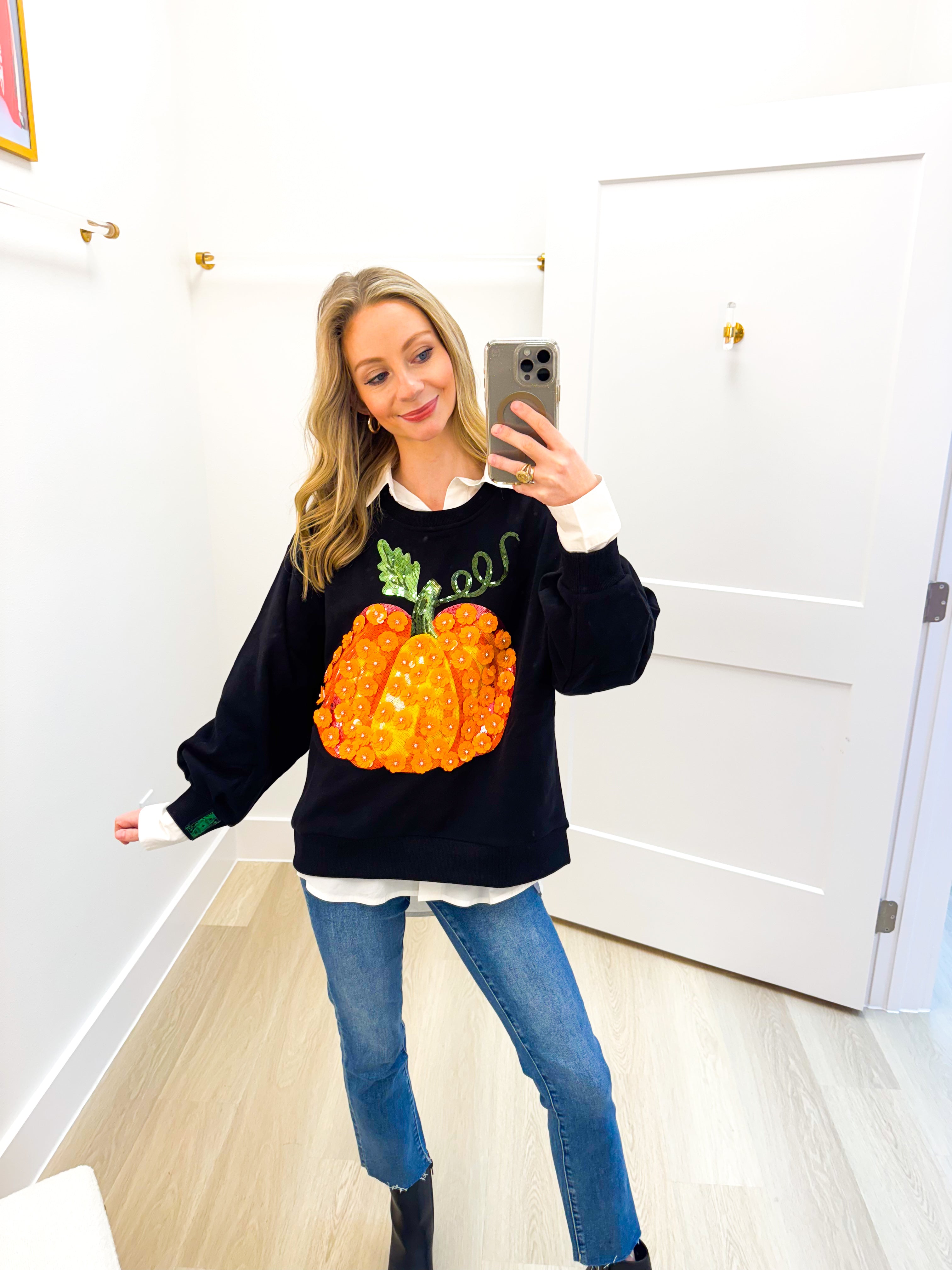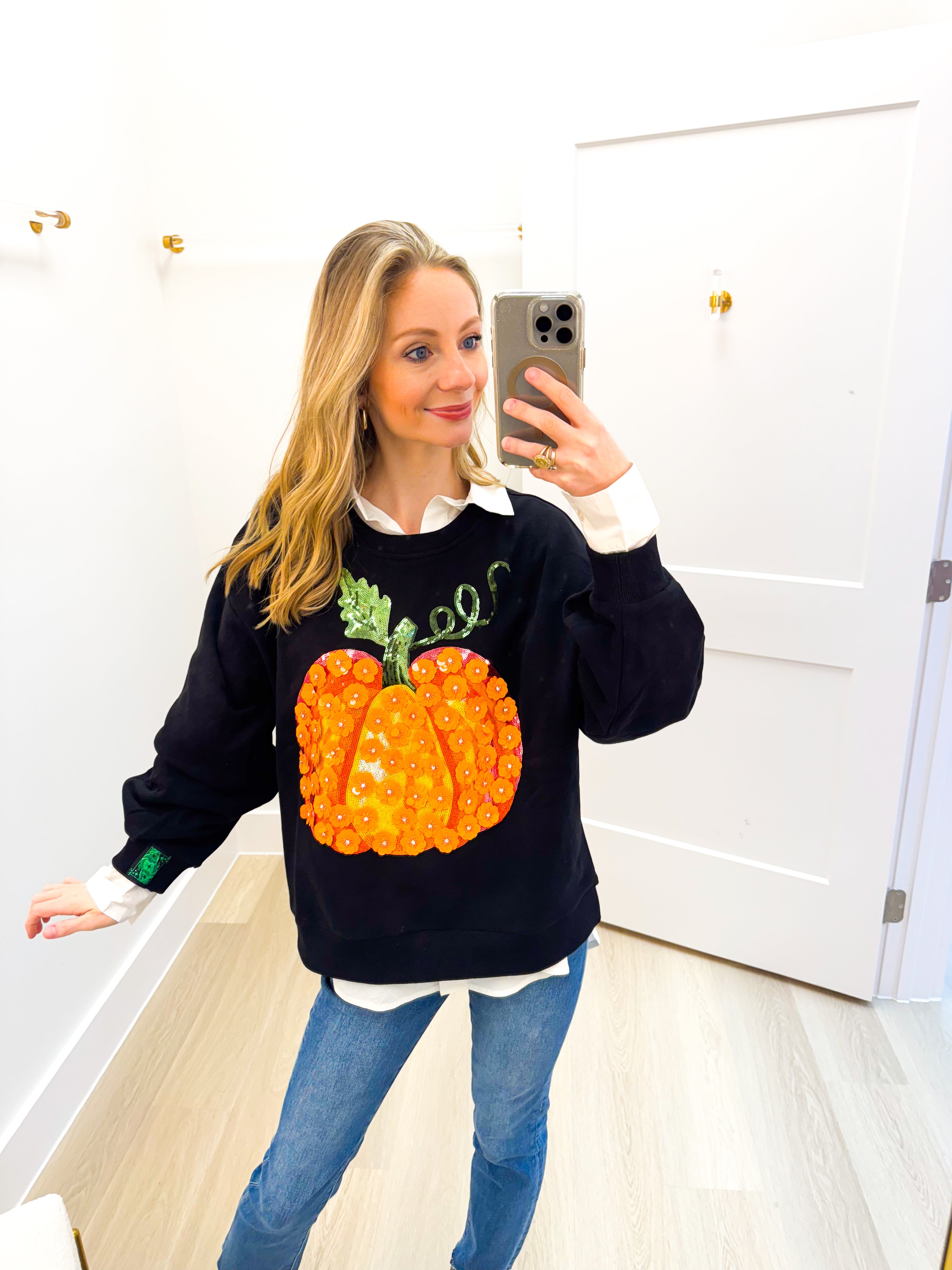 Black & Orange Flower Sequin Pumpkin Sweatshirt Queen of Sparkles