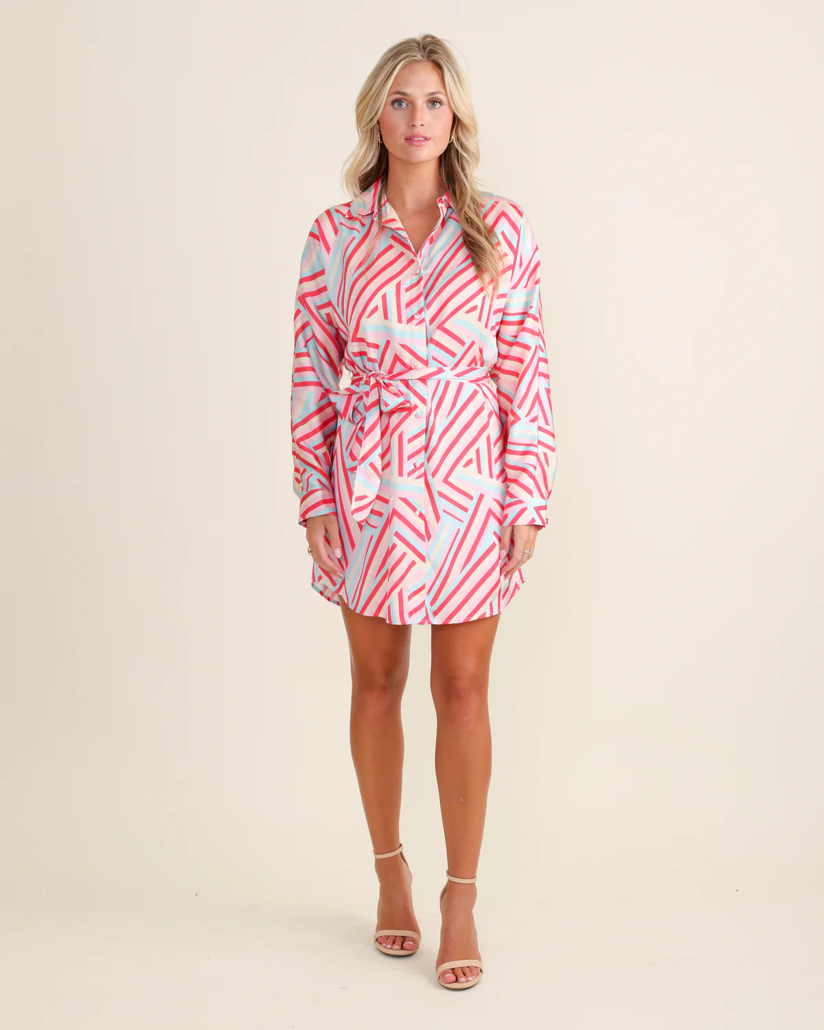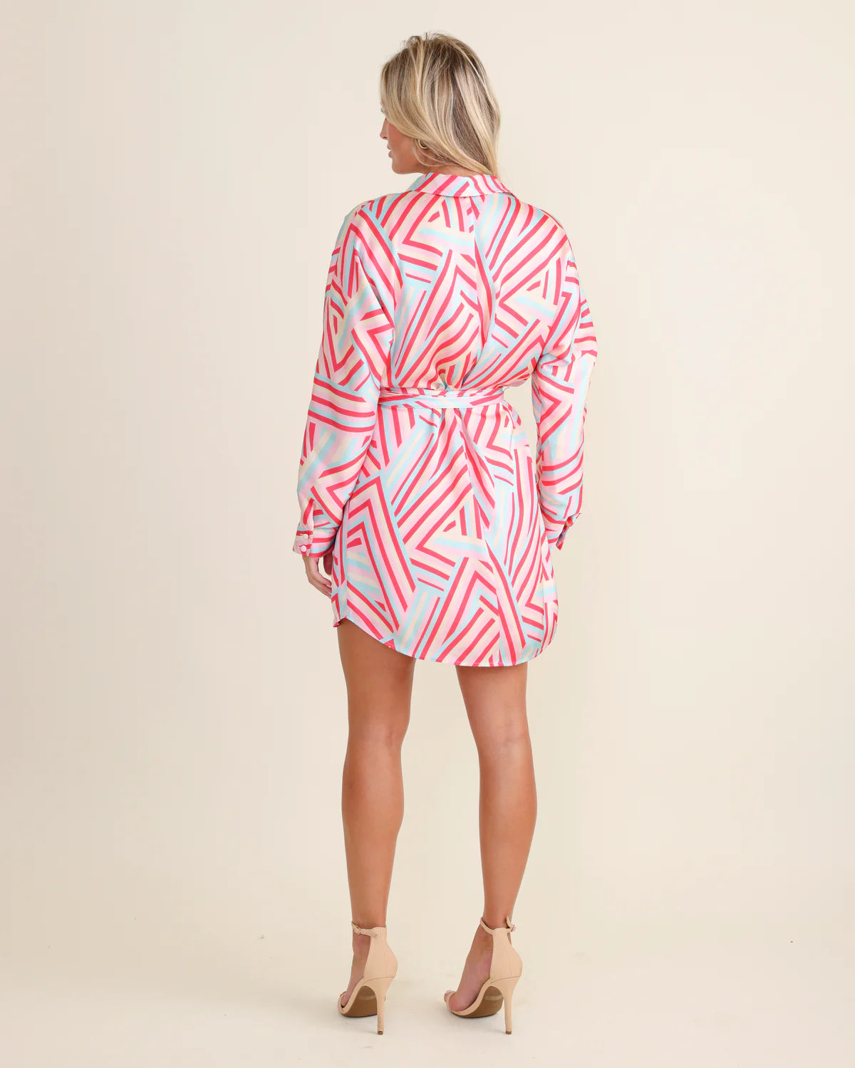 Get ready to turn heads with our Margaret Dress! This long sleeve dress features a gorgeous print and an adjustable tie waist for a flattering fit. The button front adds a touch of sophistication. Perfect for those who want to make a statement! This dress is perfect for date night or even for wearing to work!!