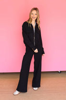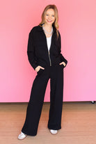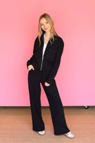 Casual yet elevated and made to move, these modal fleece pants bring a little structure to your everyday look. The straight leg, high-rise fit, and flat front with a box pleat give it a put-together feel, while the elastic waistband and slash pockets keep it relaxed.