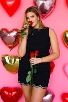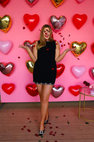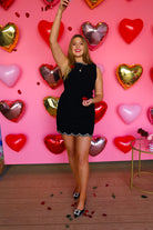 Add some star power to your wardrobe with our Starstruck Bedazzled Scallop Hem Dress. The bedazzled collar and hem line add some sparkle to this black mini dress, making it perfect for a night out. Add your fav heels for a classy look!