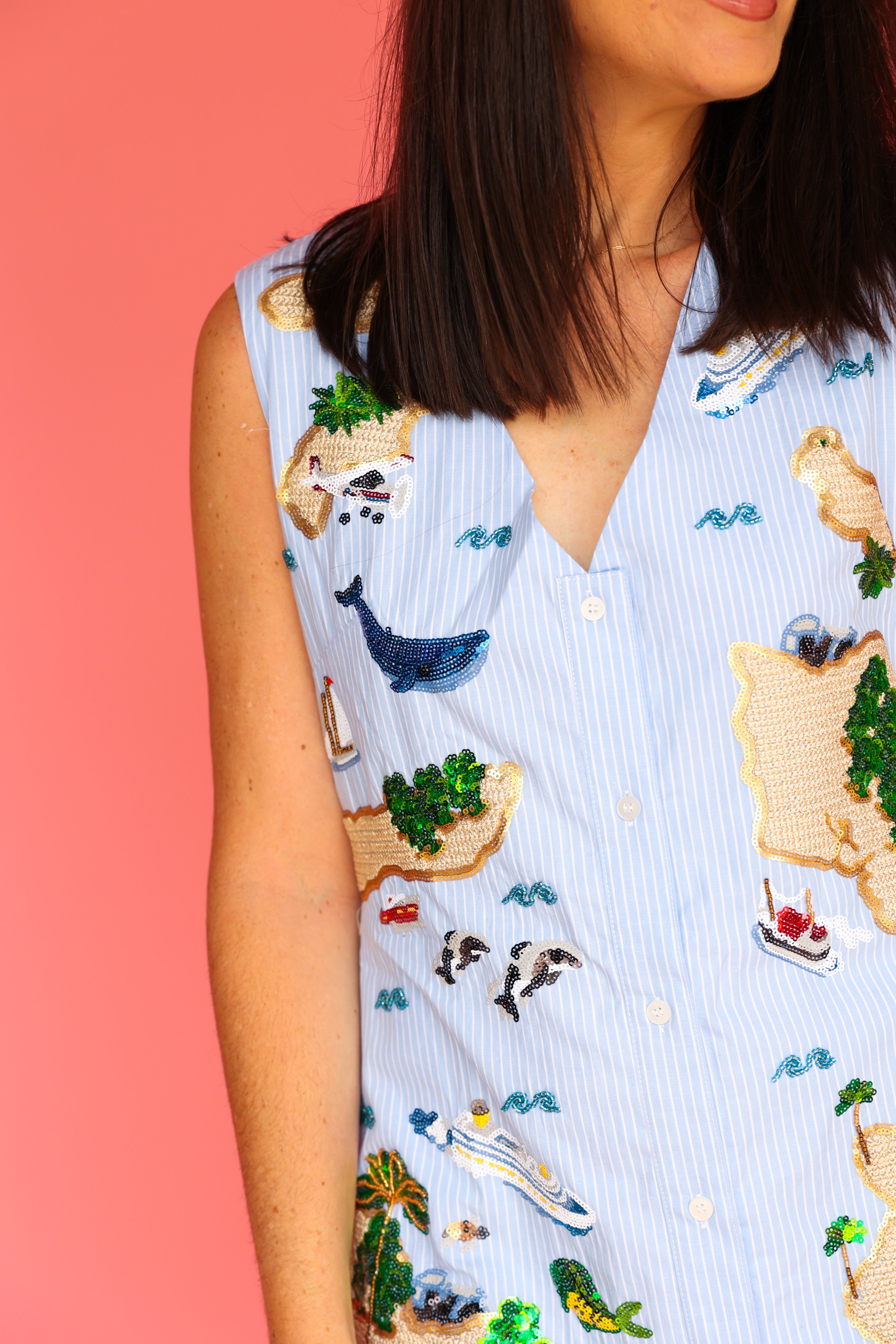 Escape to island elegance with our Blue & White Stripe Cotton Tank Dress. This breezy, lightweight design combines classic nautical stripes with a flattering silhouette that transitions effortlessly from beach to dinner. The premium cotton fabric ensures all-day comfort while the "Queen of Sparkles" details add that perfect touch of sophistication. Make every summer day feel like a luxurious getaway.