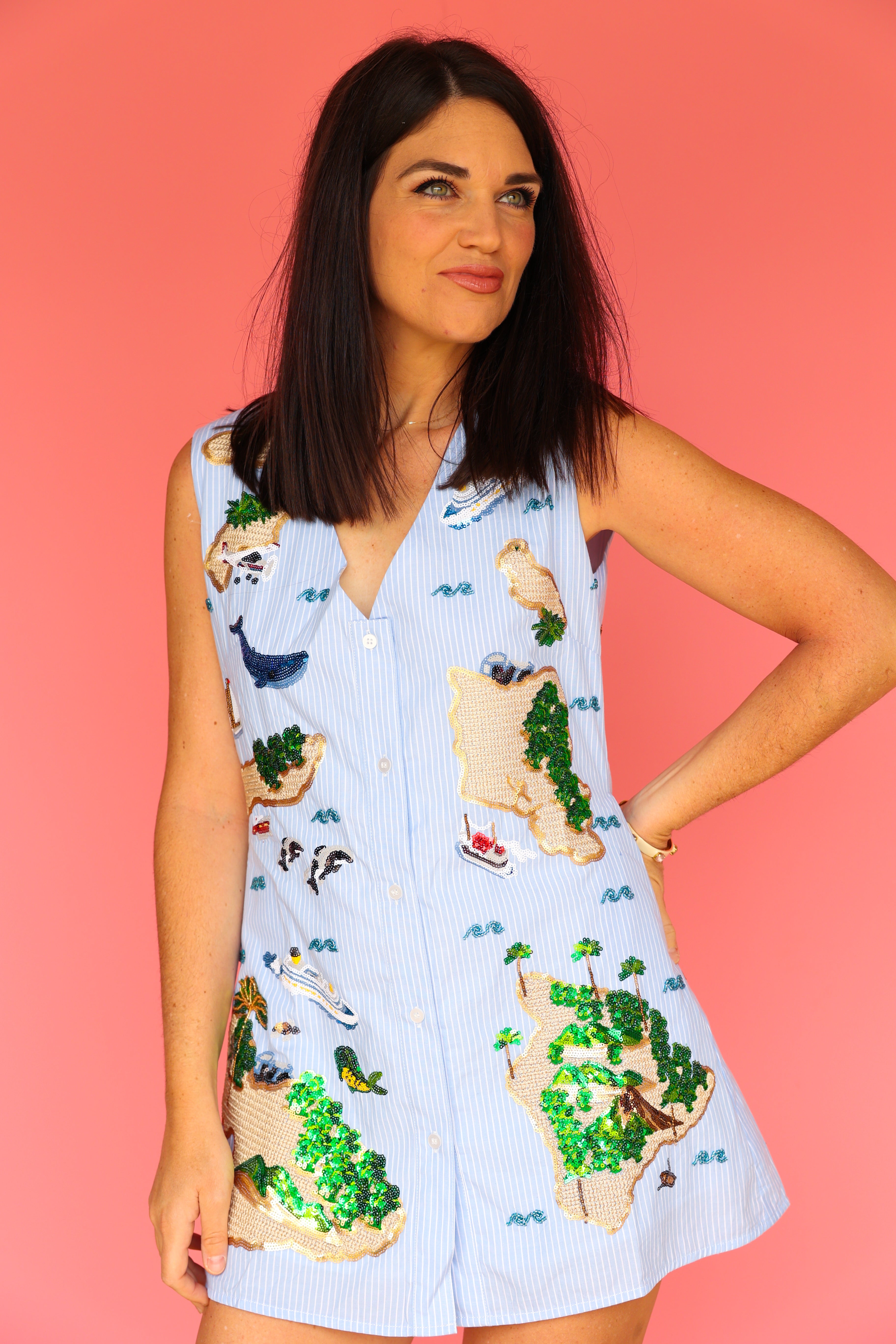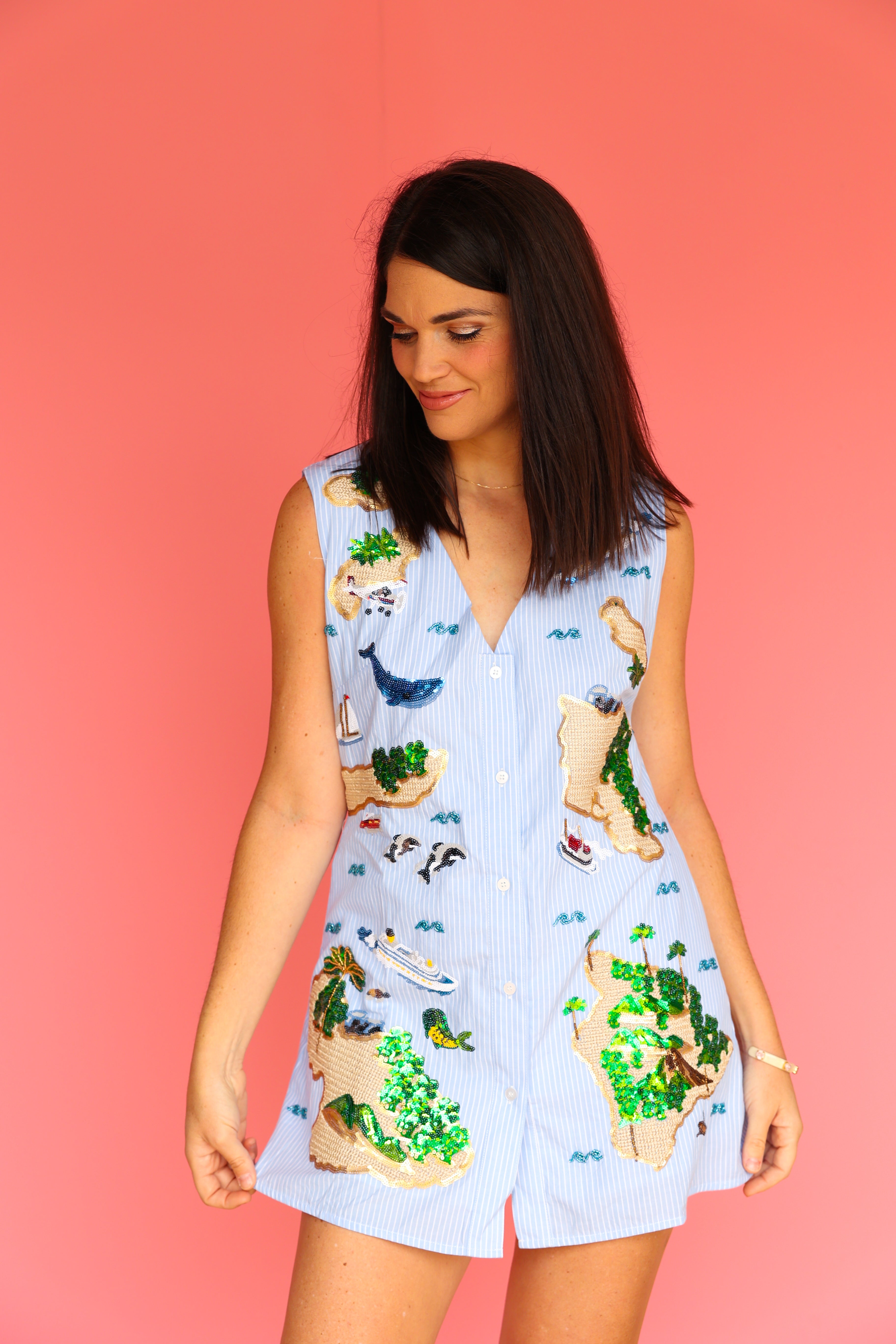 Blue & White Stripe Island Cotton Tank Dress Queen of Sparkles