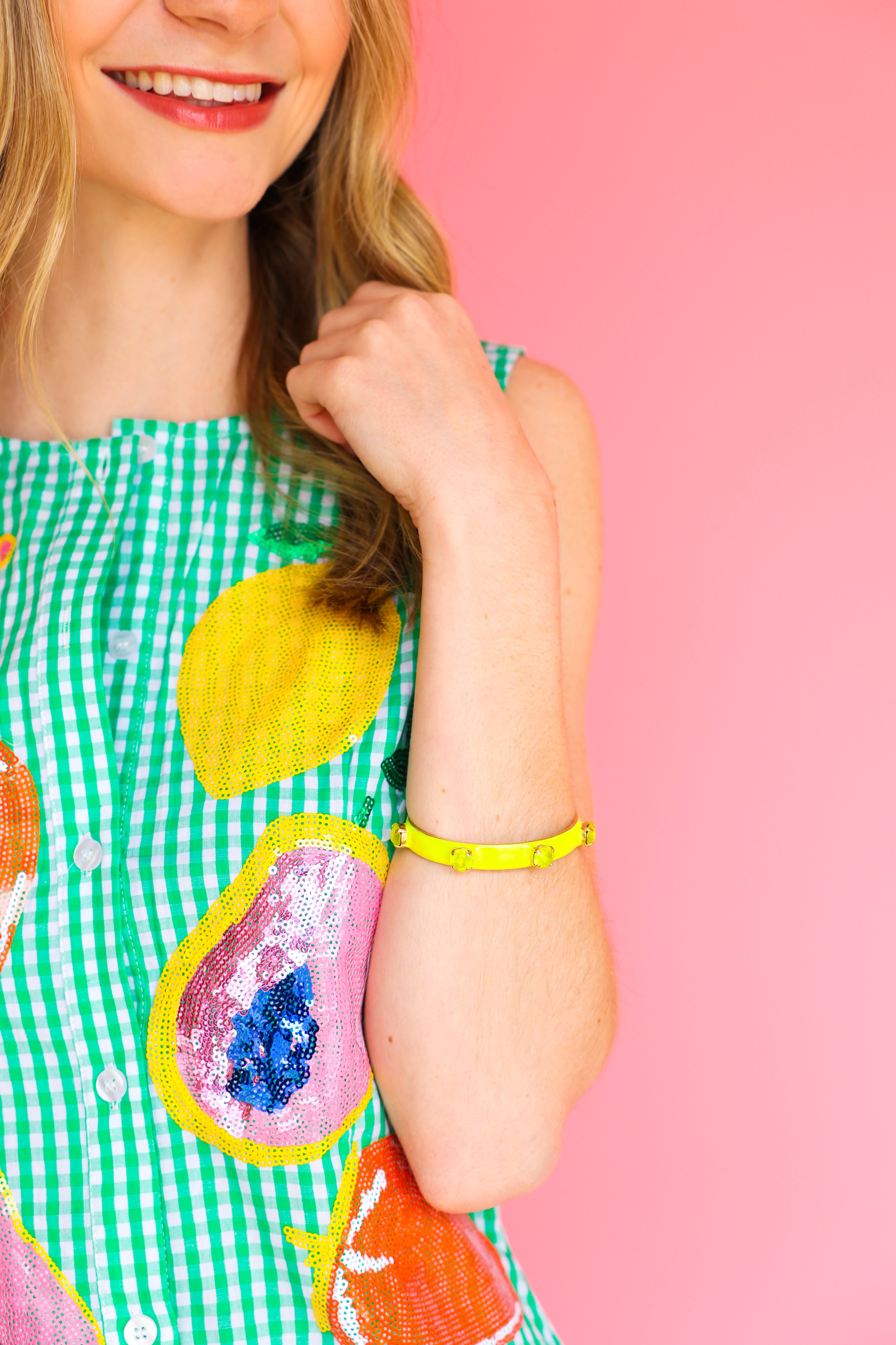 Embrace summer charm with our Green Gingham Fruit Button Up Tank Dress. This delightful piece combines classic gingham pattern with playful fruit accents, creating the perfect statement for warm-weather occasions. The flattering tank silhouette and convenient button-up design offer both style and practicality. From Queen of Sparkles, this dress promises to become your go-to outfit for effortless seasonal elegance. Turn heads at every picnic, brunch, or casual outing.
