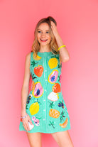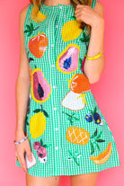 Green Gingham Fruit Button Up Tank Dress Queen of Sparkles