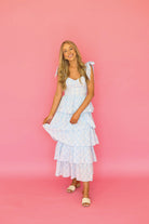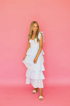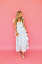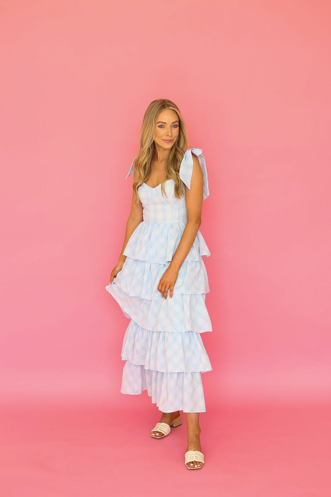 Get ready to turn heads in this playful Blue Gingham Tiered Maxi Dress. With its bold gingham print and chic tiered ruffle design, you'll stand out in the crowd. Plus, the cute bow tie shoulder straps add a touch of whimsy to this must-have dress. It's the perfect piece for any fun and flirty occasion! Wear this beauty to brunch, day dates, and more!