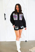 Make a statement with these Black Queen Card & Sparkle Collar Button Up Cotton Shorts from Queen of Sparkles. Crafted from soft, breathable cotton, these shorts feature an eye-catching sparkle collar detail and bold queen card graphic that radiates confidence and style. Perfect for anyone who loves to shine, whether you're heading to a casual outing or making waves at your next event. The classic button-up design offers comfort and versatility, while the luxe sparkle accents elevate your everyday look. Embrace your inner royalty and stand out from the crowd.