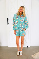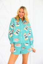 Green & White Stripe Café Du Monde Icon Short Queen of Sparkles