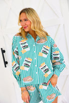 Embrace effortless elegance with this charming green and white striped short from Queen of Sparkles. Inspired by the iconic Café Du Monde aesthetic, this piece captures Parisian café culture with a modern twist. The classic stripe pattern offers versatile styling options, pairing beautifully with casual tees or dressed up for weekend adventures. Perfect for those who appreciate timeless design with a touch of whimsy, this short delivers comfort and style in one irresistible package. Make it your go-to piece for creating memorable moments in style.
