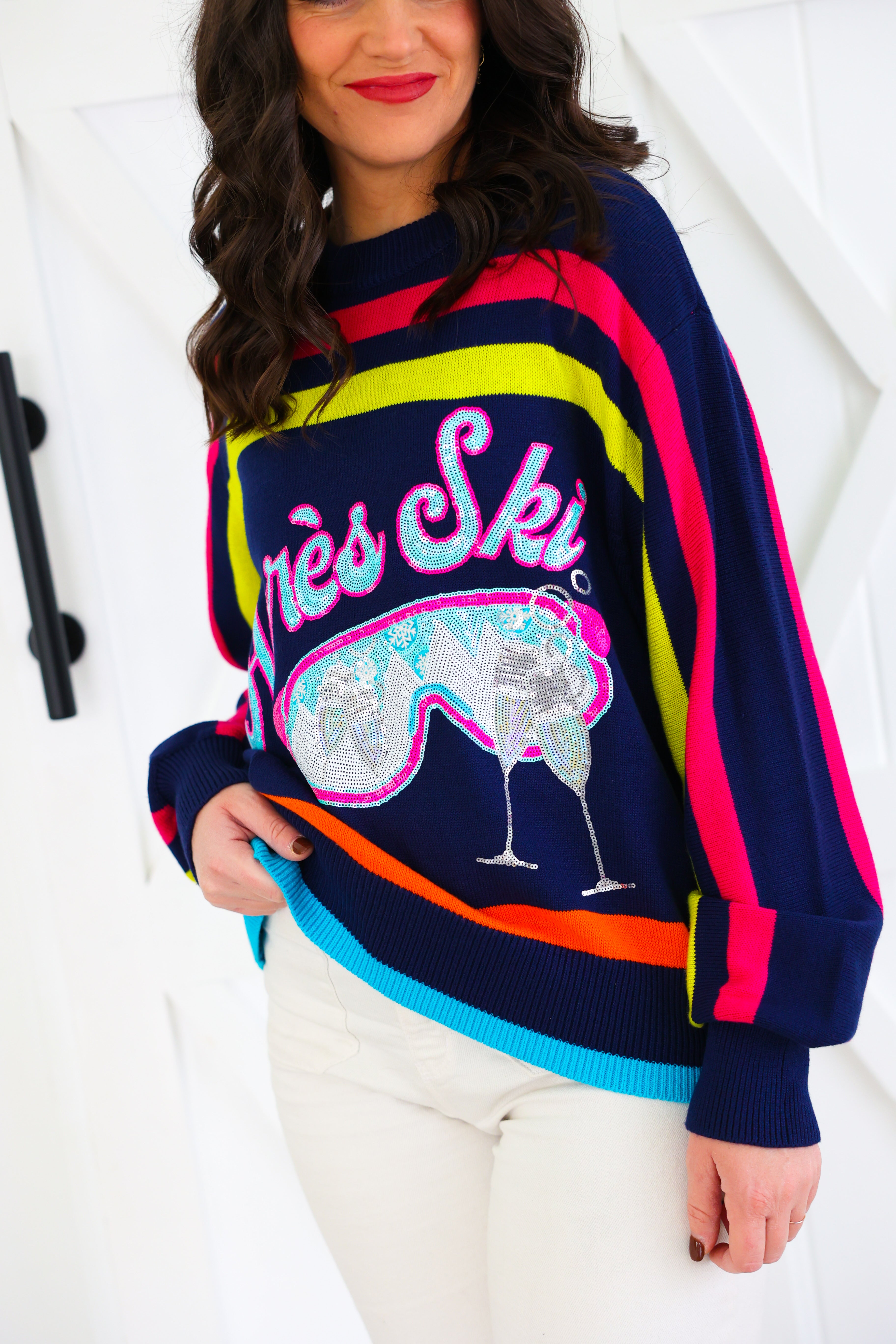 Navy Multi Stripe 'Apres Ski' Goggle Stripe Sweater Queen of Sparkles