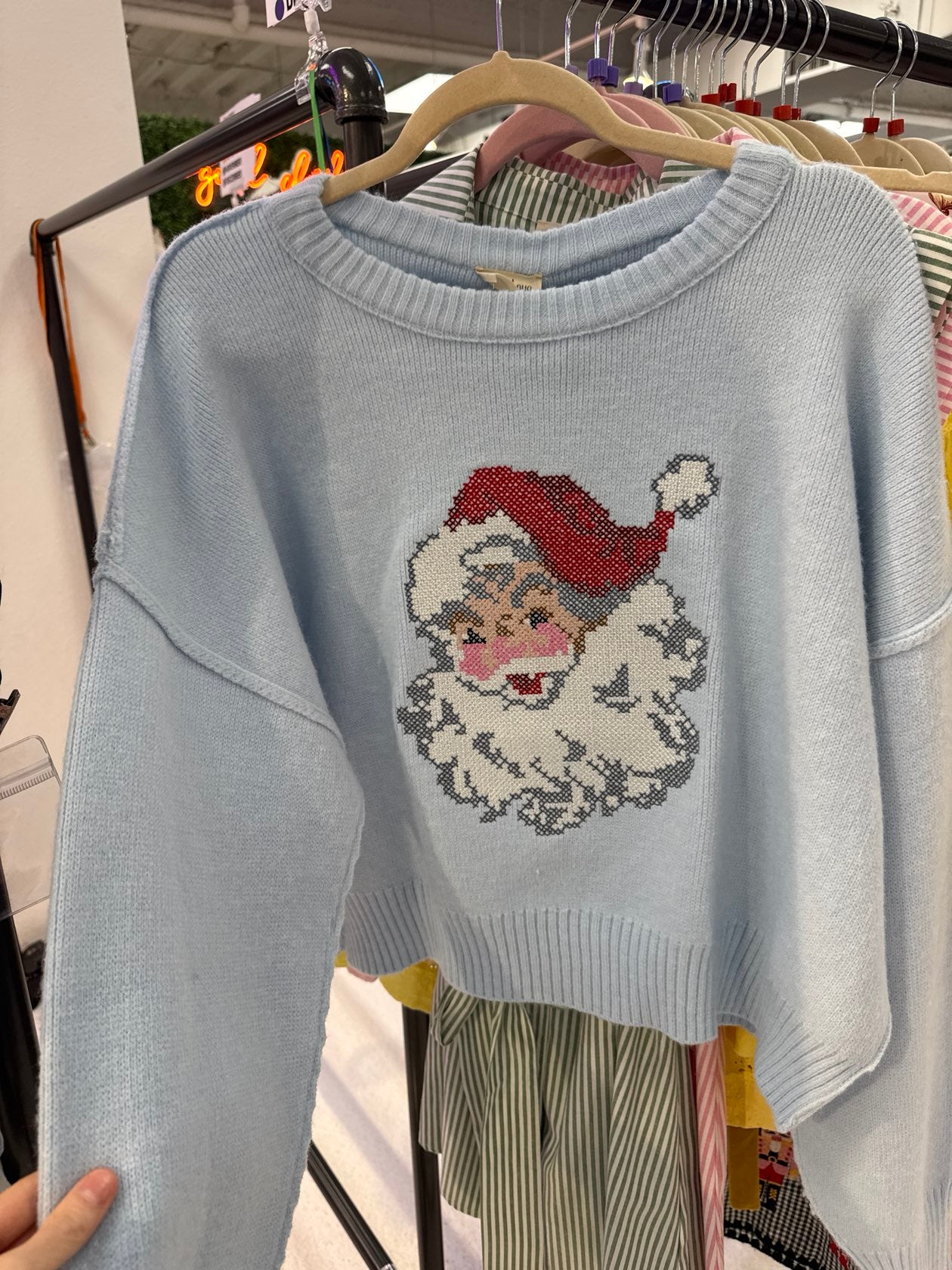 Light Blue Needlepoint Santa Sweater