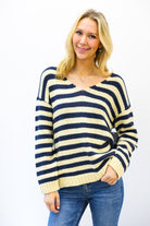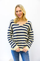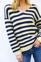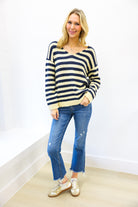Cream & Navy Striped V Neck Oversized Sweater Top
