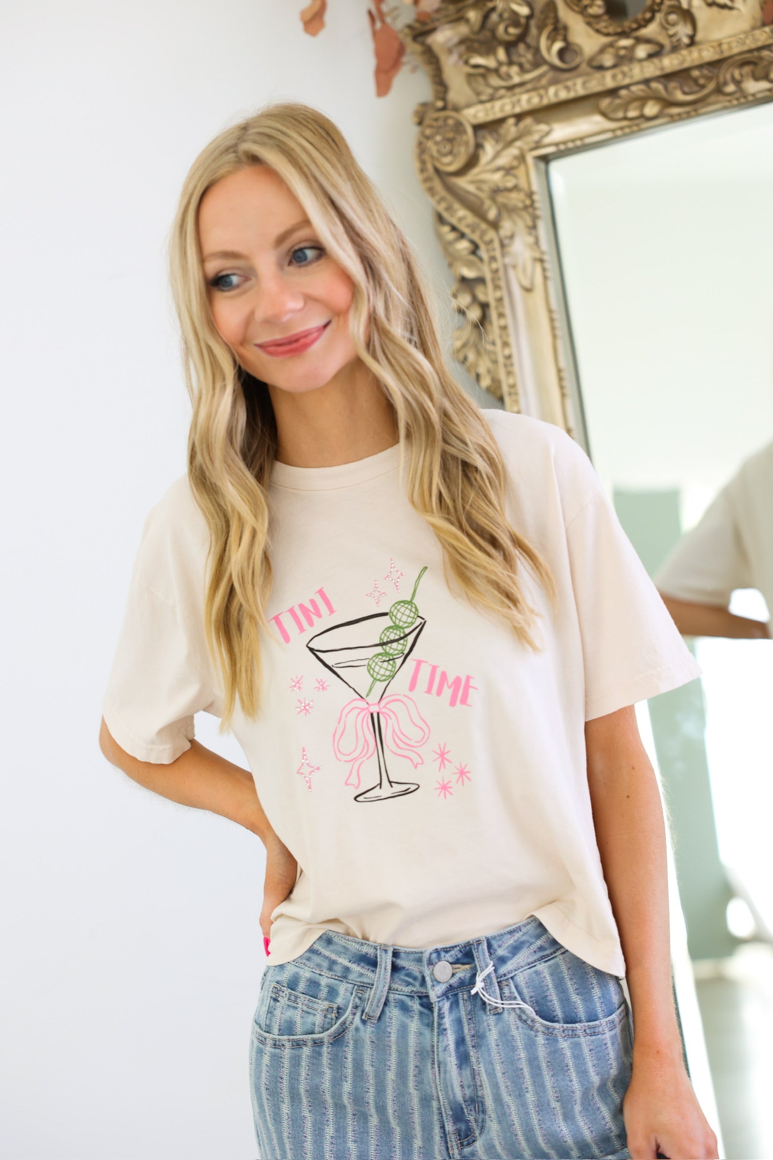 Playful, relaxed, and ready for happy hour. The Tini Time Graphic Tee by All Us features a soft cotton fabric and relaxed silhouette with a fun martini-inspired graphic that adds personality to any casual outfit.