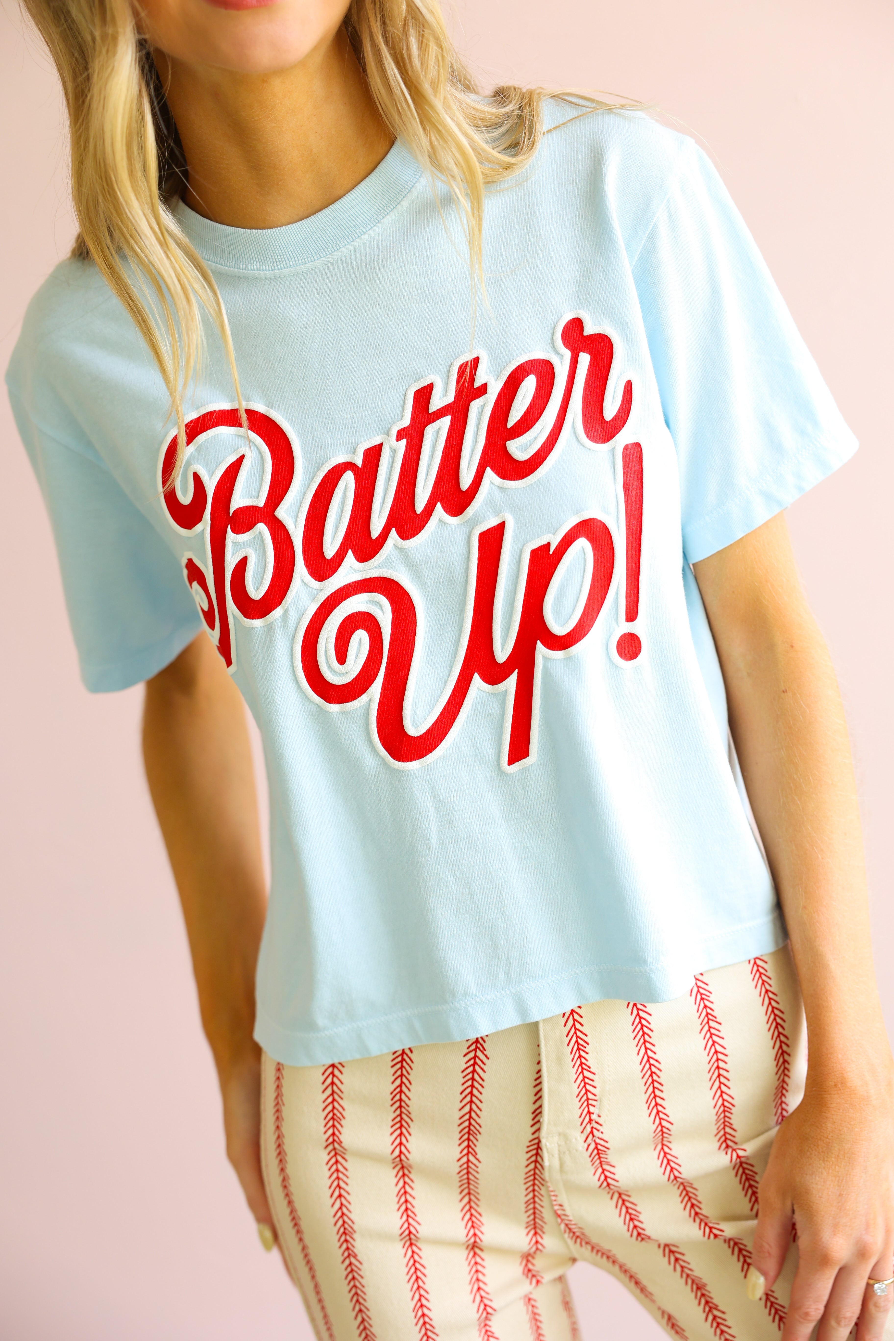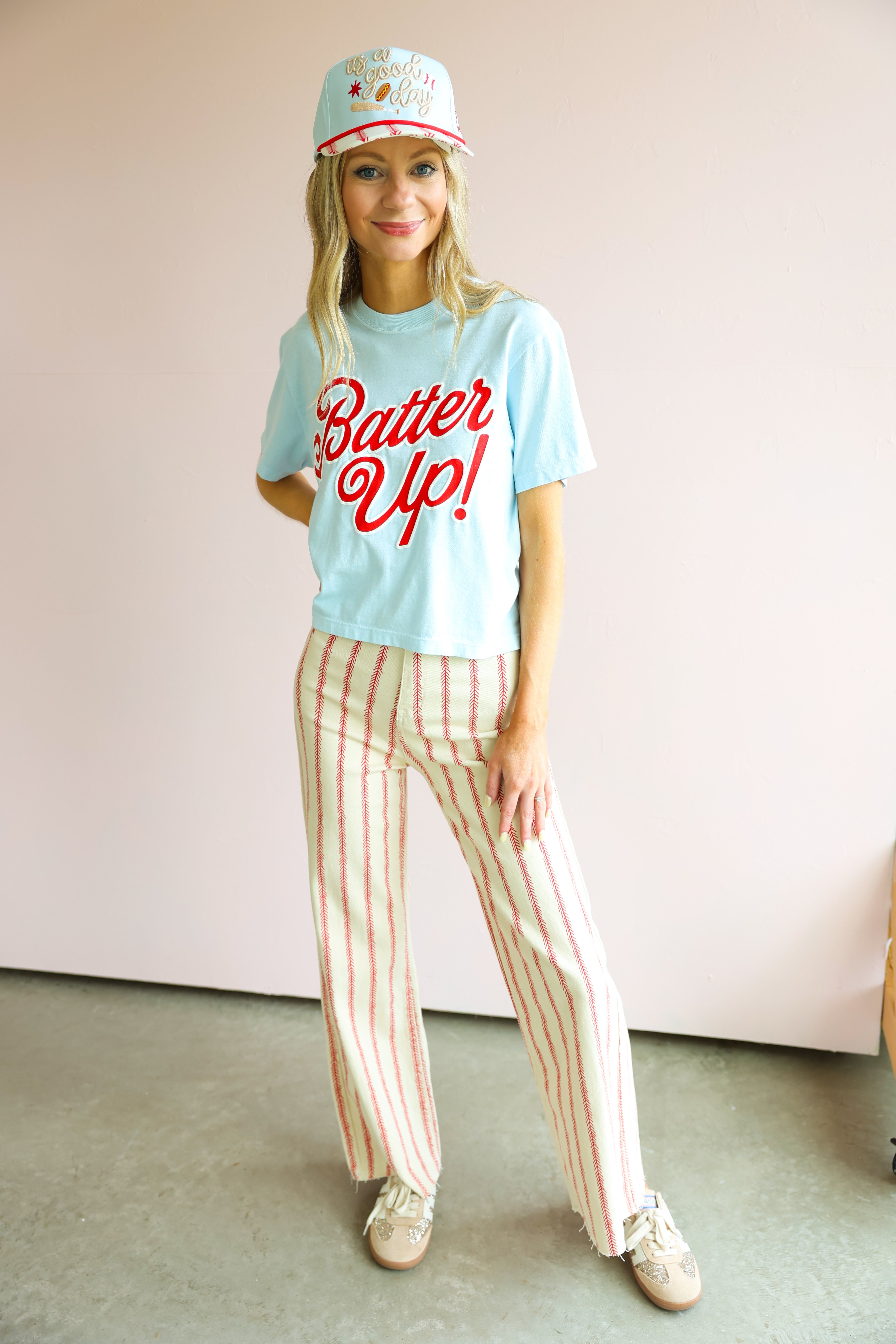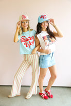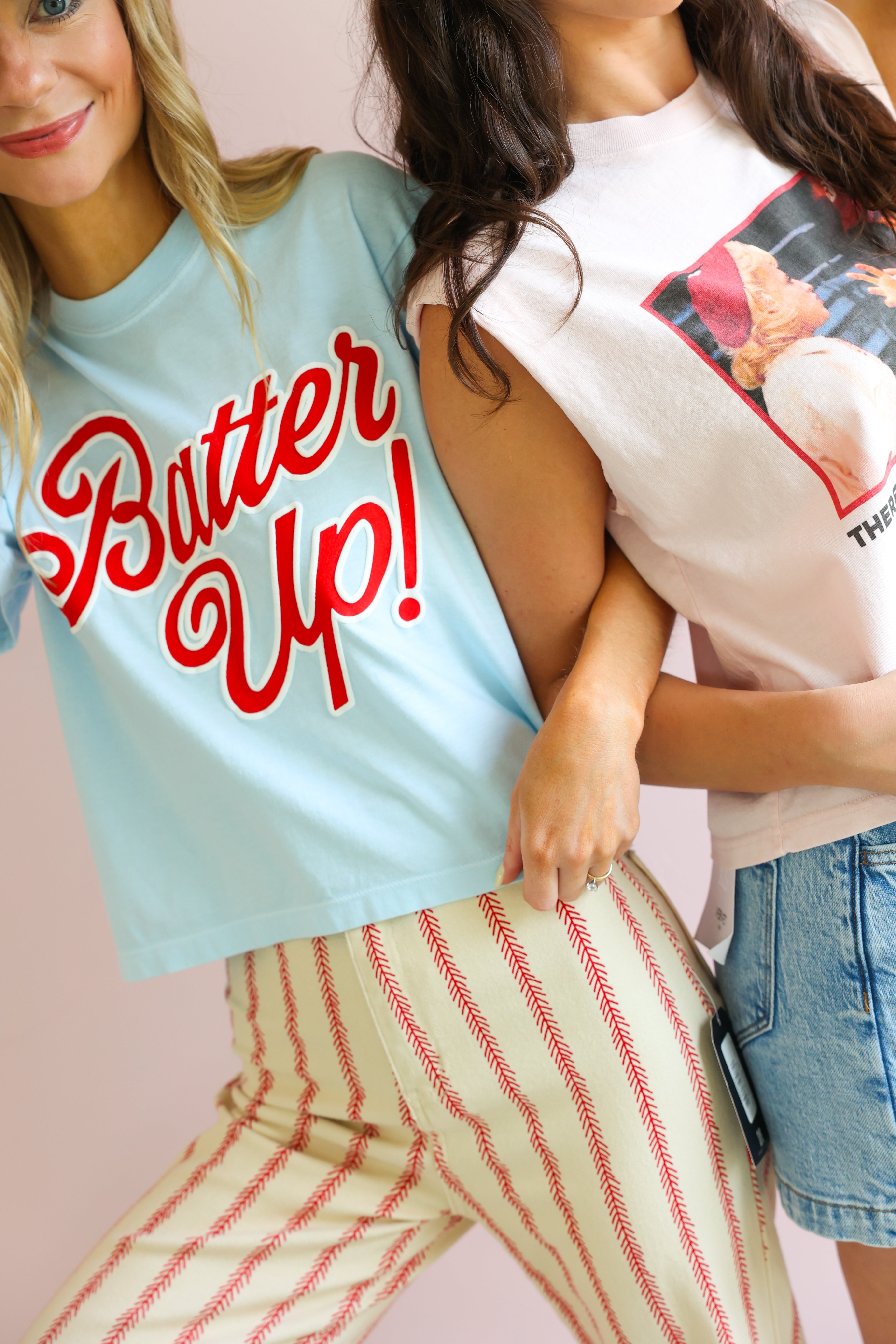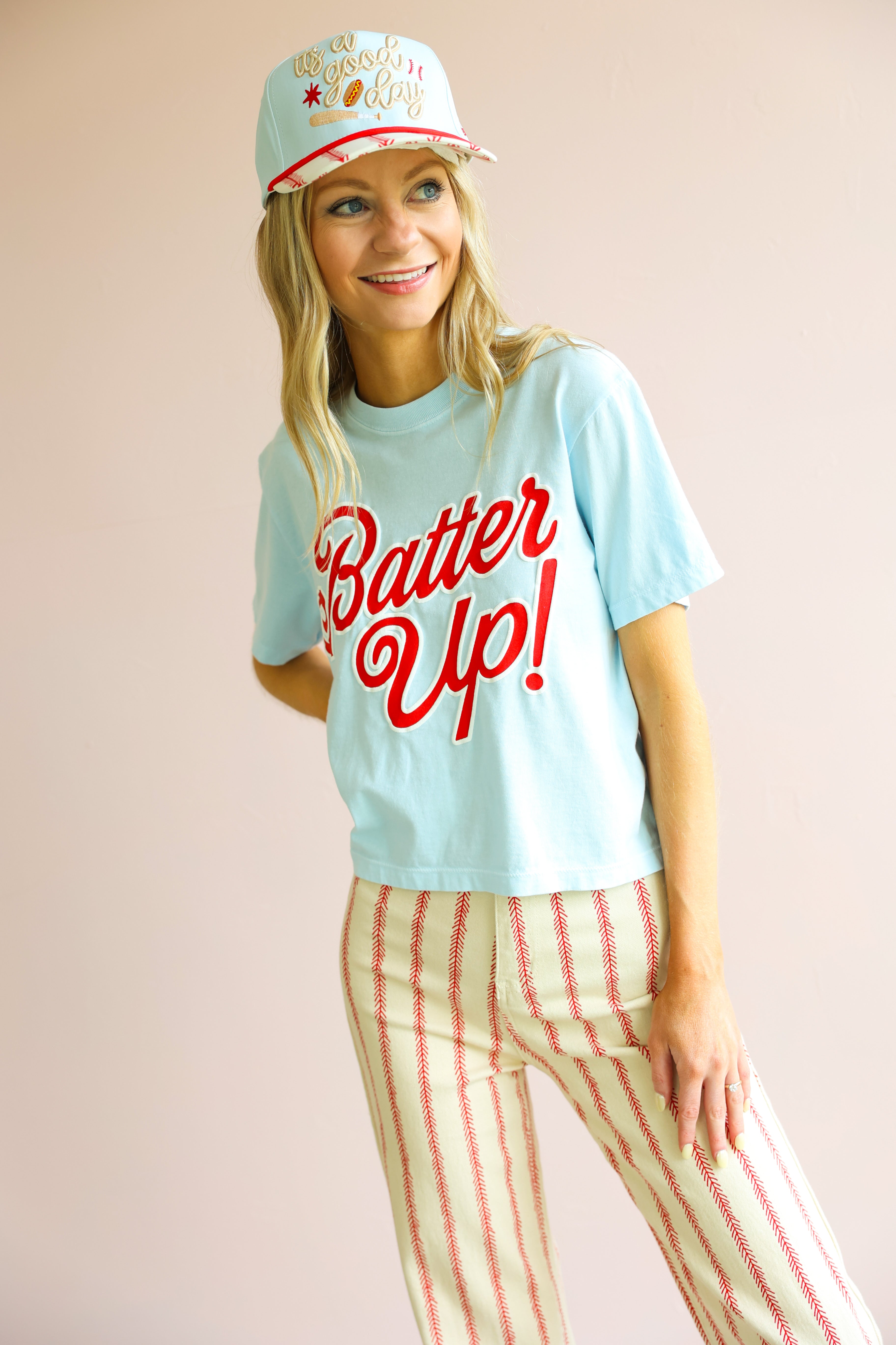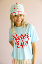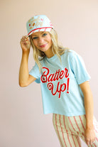 This tee is the perfect mix of sporty charm and playful style. Featuring a bold “Batter Up!” graphic, it brings a fun, game-day energy to your everyday look.