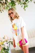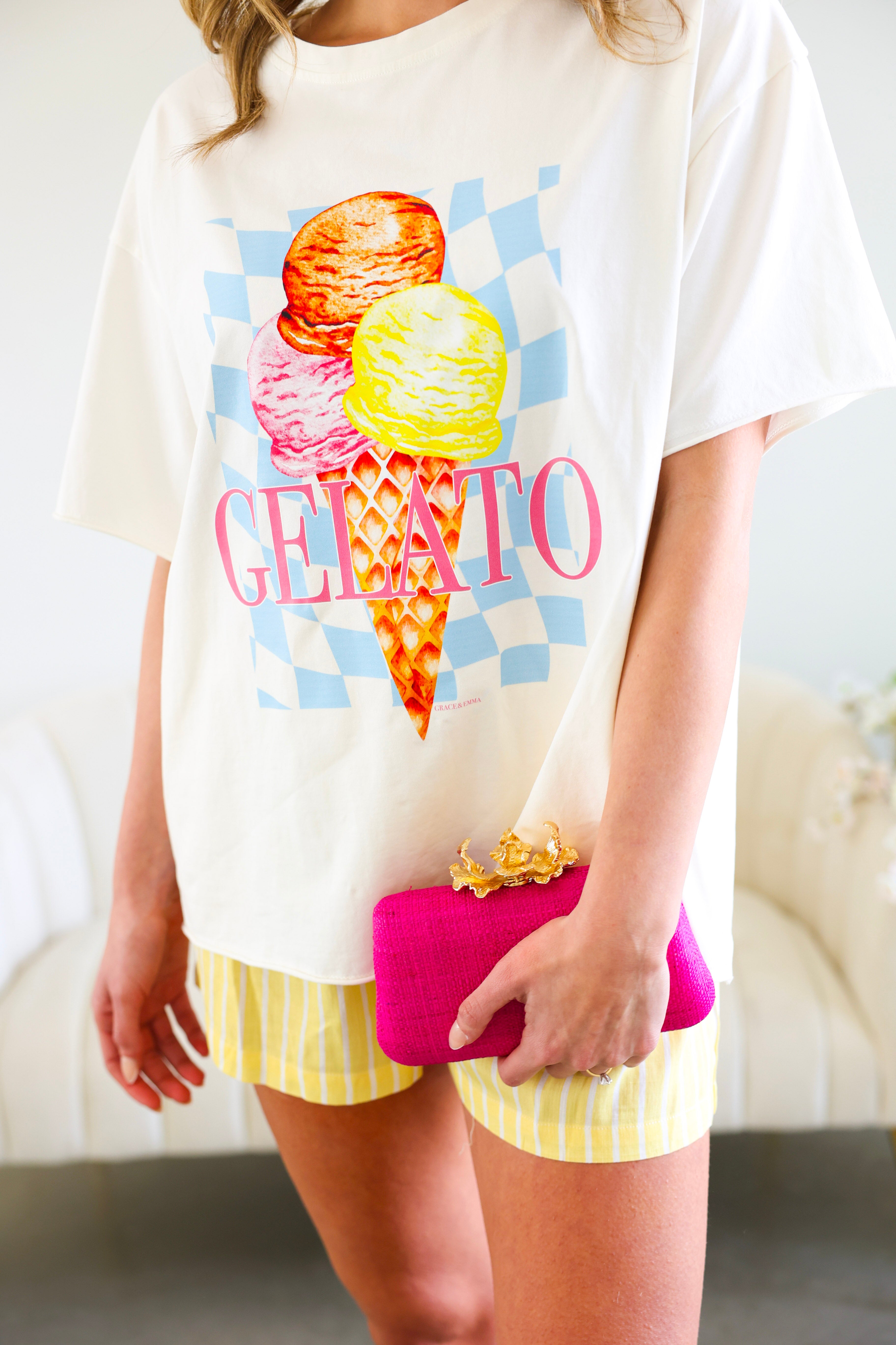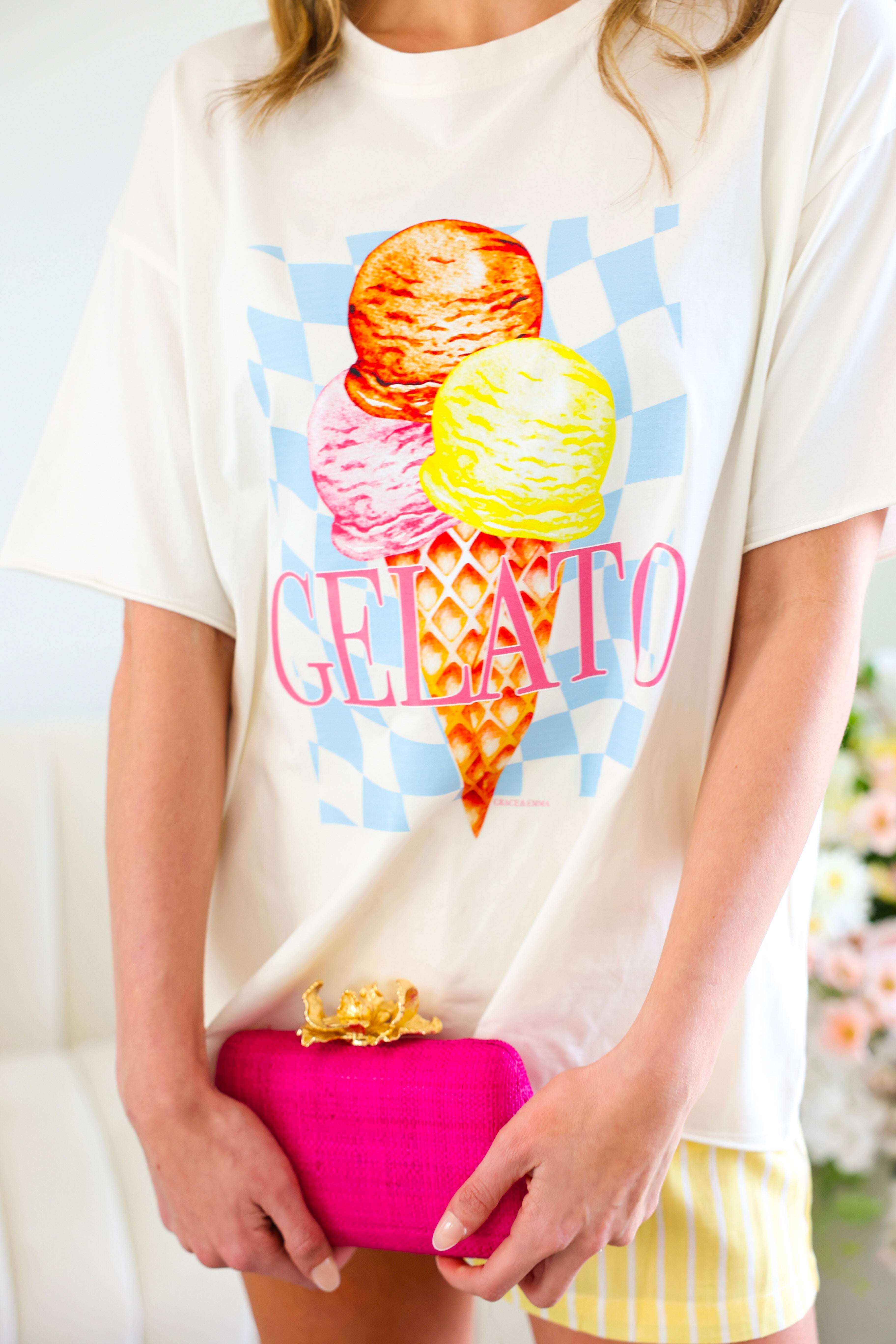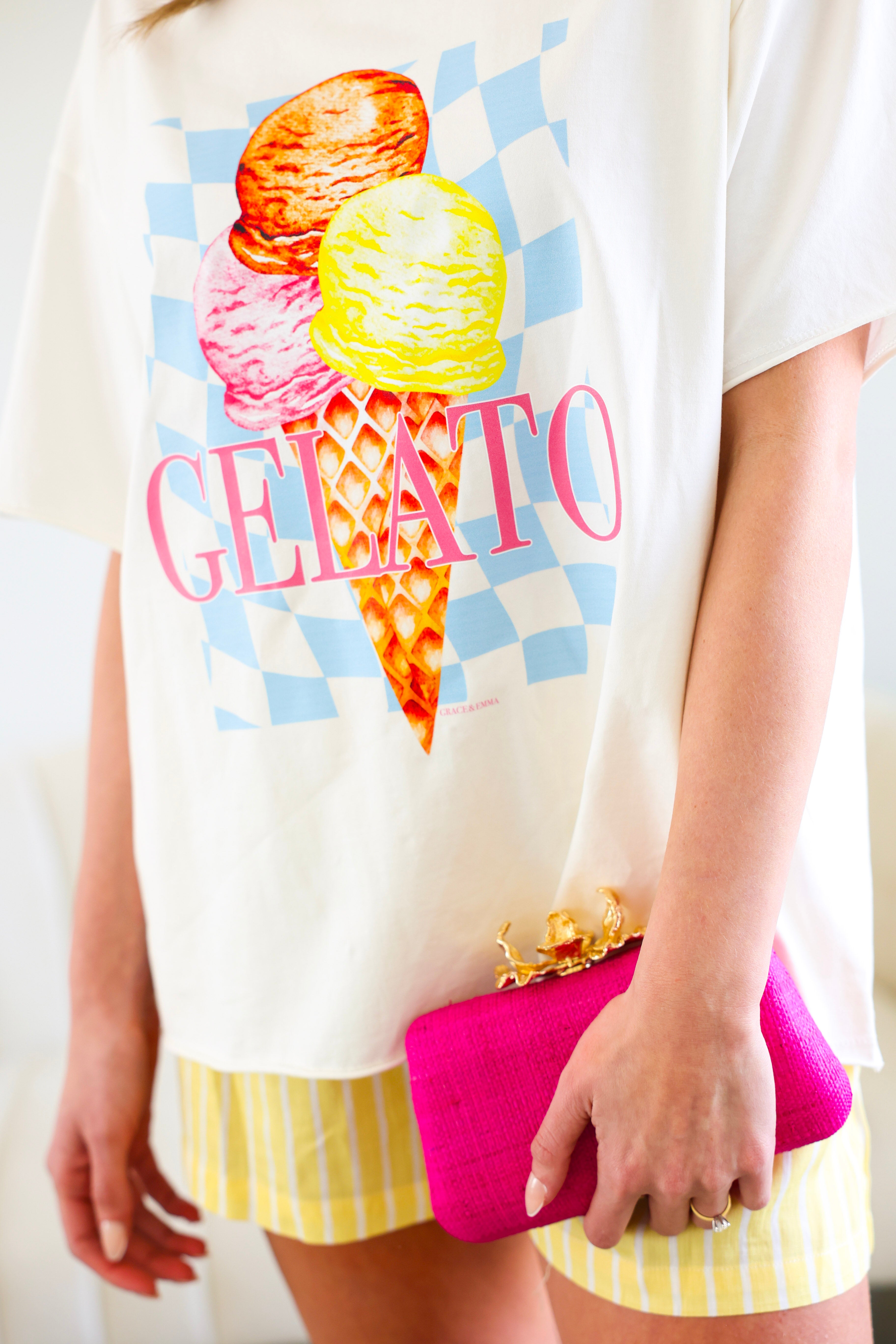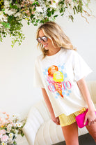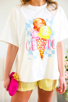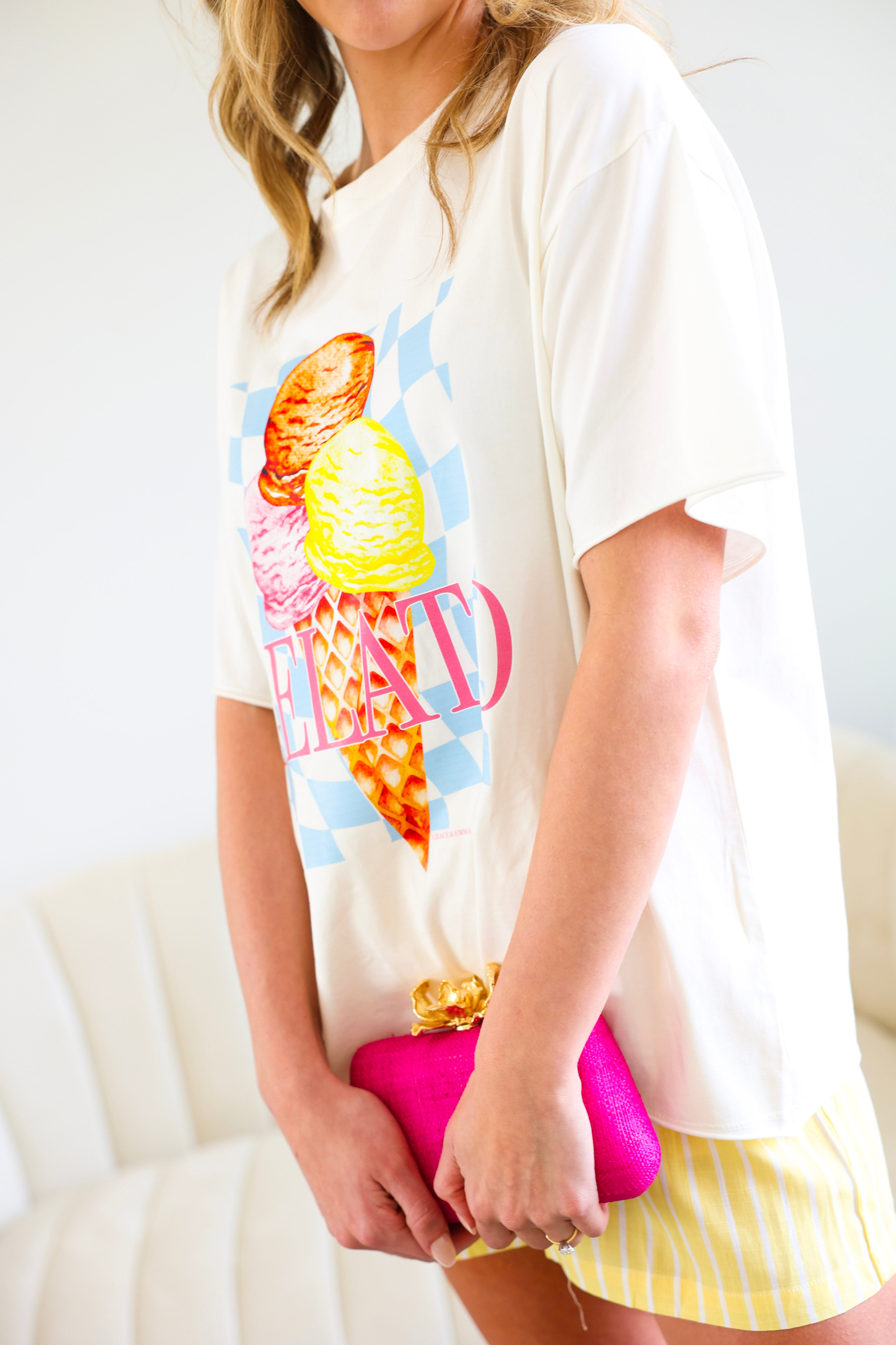 Bright, playful, and full of personality. The Sweet Summer Gelato Tee adds a pop of fun to your everyday basics with its charming graphic and soft white base.