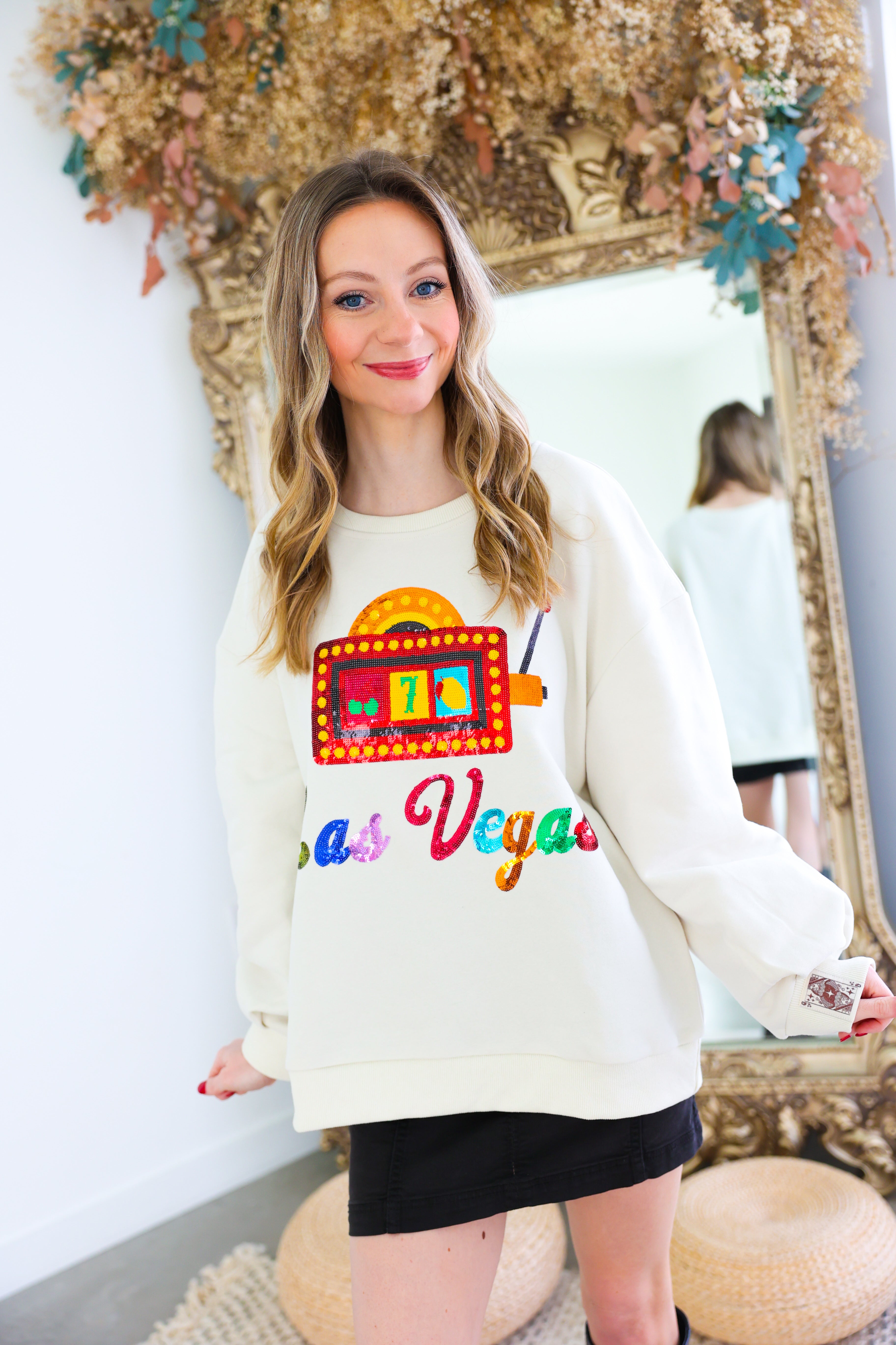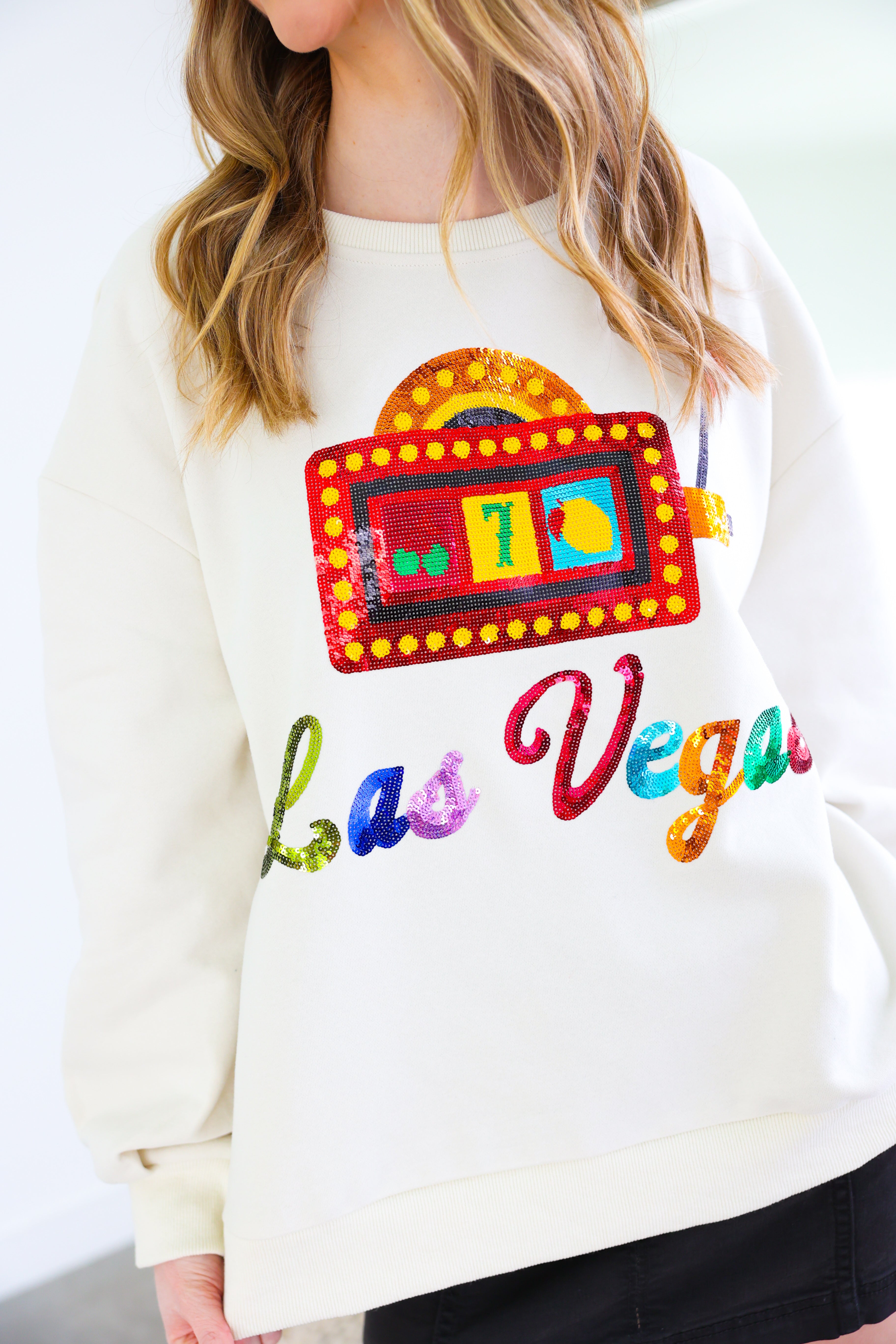 Queen of Sparkles Light Beige "Las Vegas" City Icon Sweatshirt