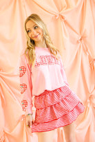 Perfect with denim, skirts, or coordinating gingham pieces, this pullover brings just the right mix of comfort and festive flair.