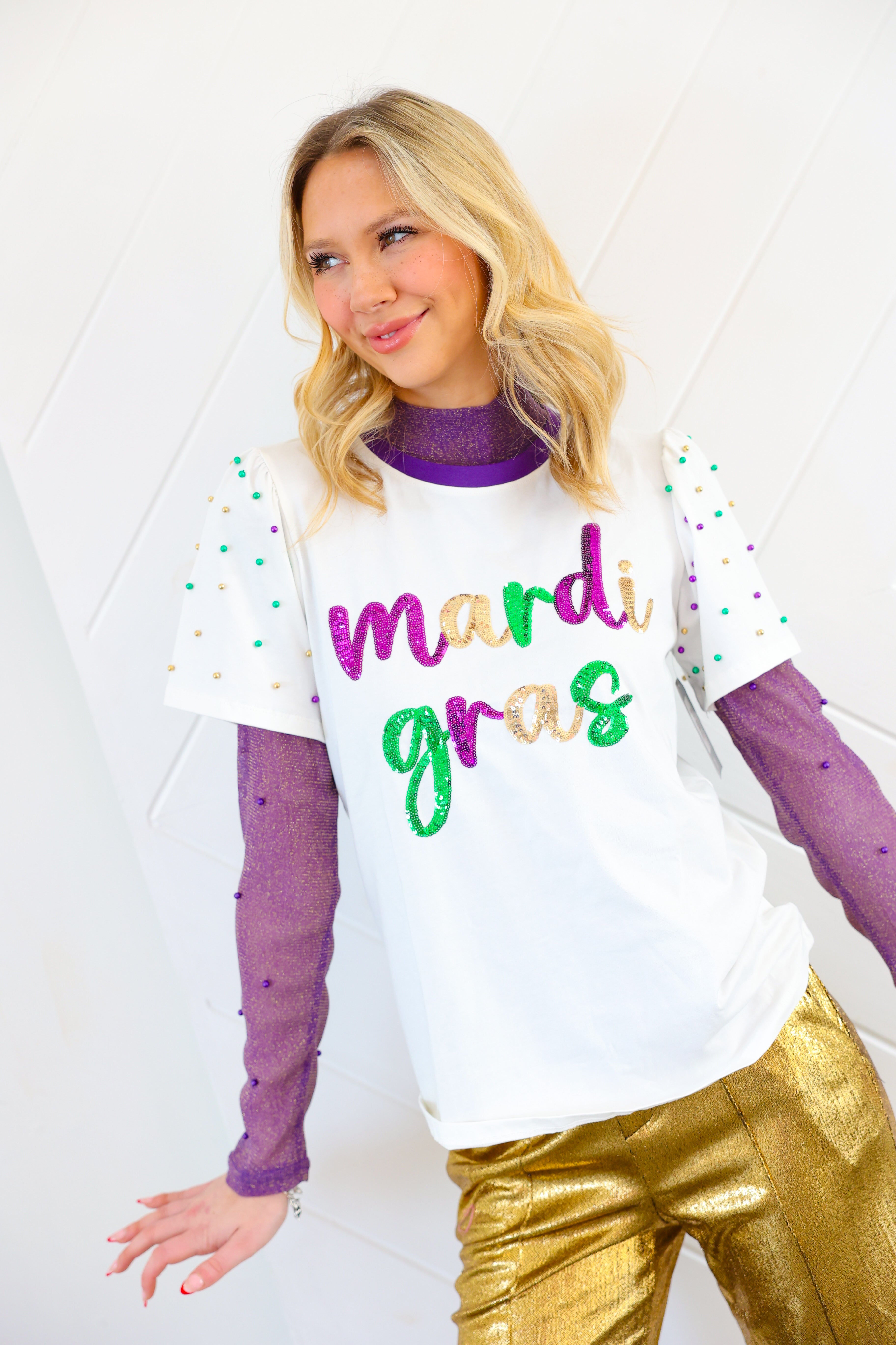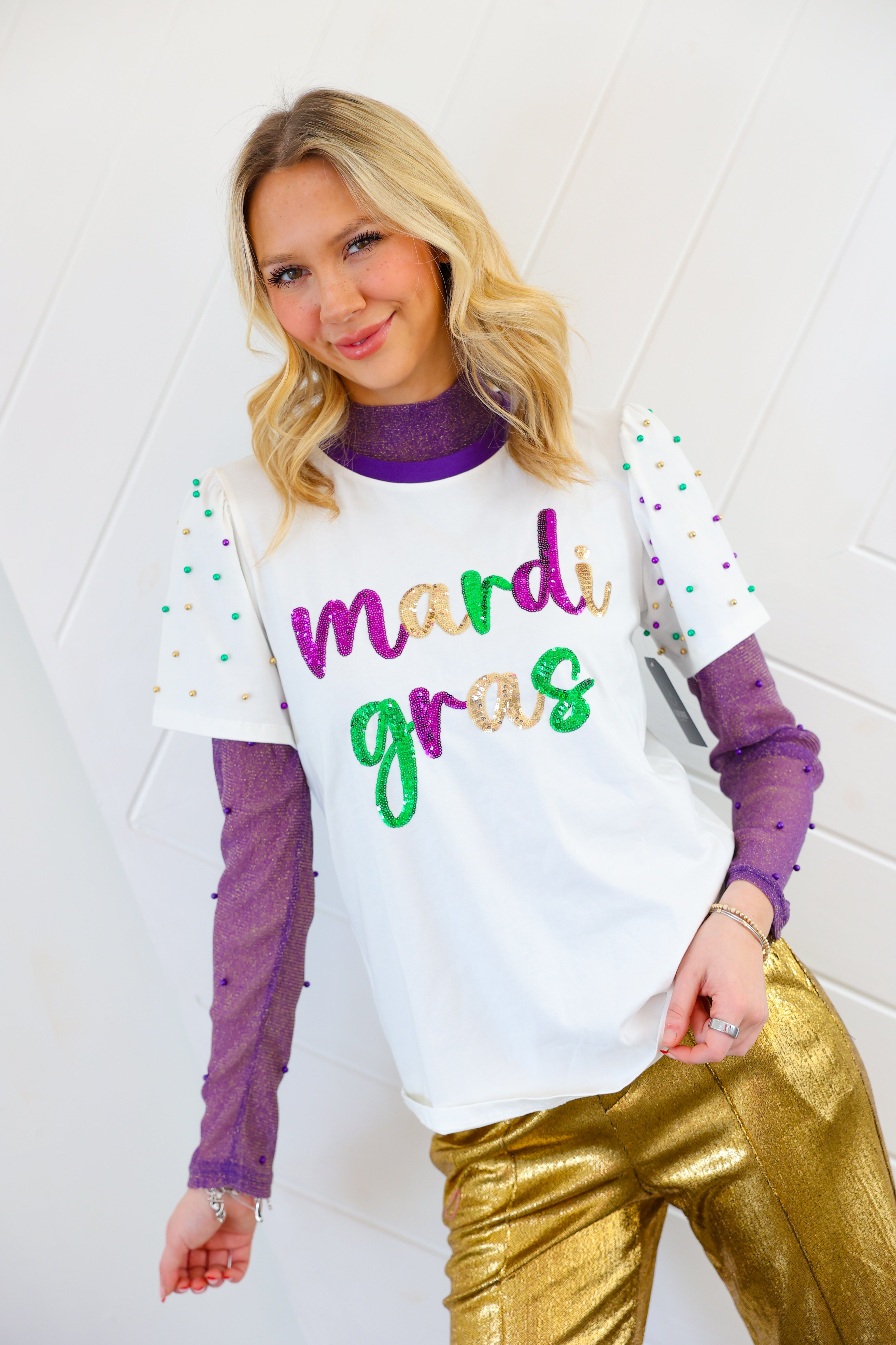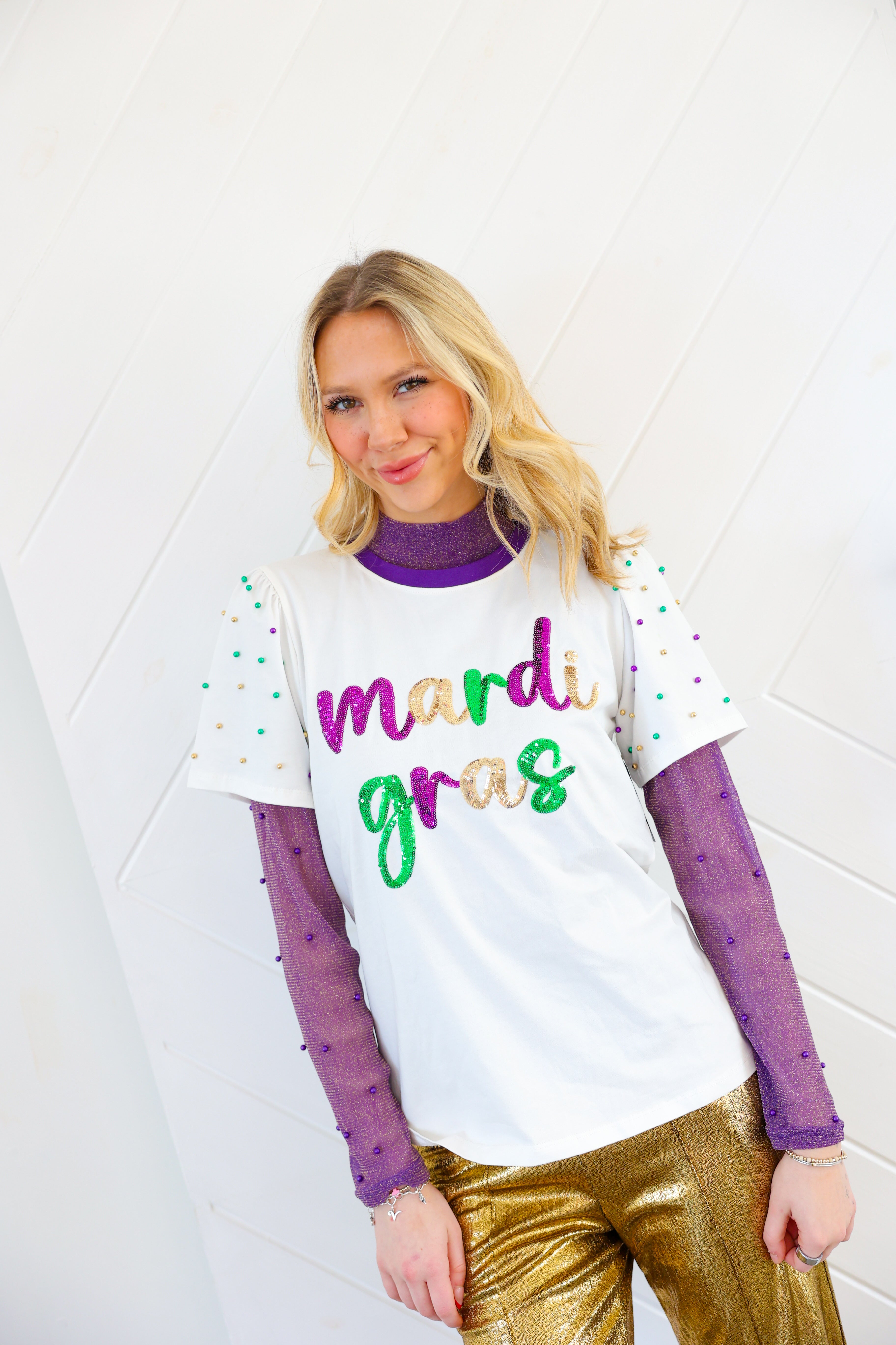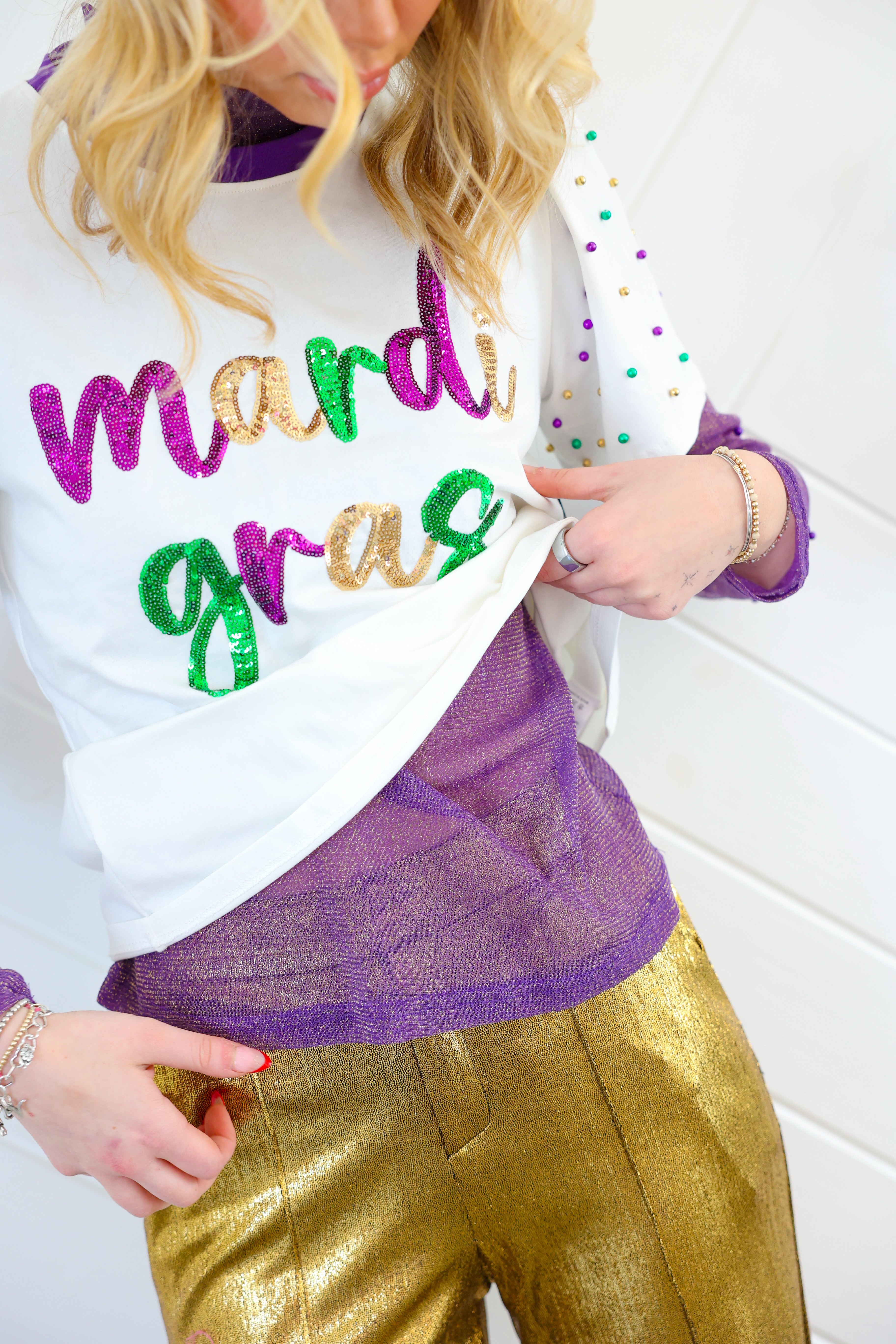 A little sparkle goes a long way—and this top proves it ✨ The Mock Neck Mesh Top in Purple Shimmer is the ultimate layering piece when you want to add glam without going over the top. Crafted from a lightweight, sheer mesh with subtle shimmer throughout, it’s finished with delicate beaded accents along the sleeves for just the right amount of extra shine. The mock neckline and long sleeves give it a polished feel, while the stretchy fit keeps it comfortable and easy to style.