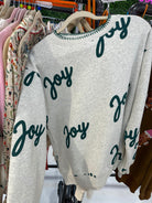 Experience cozy comfort and cheerful style with the Gray & Green Joy Stitch Neckline Sweatshirt. Its soft fabric and unique stitched neckline add a fresh, playful touch to your casual wardrobe. Perfect for layering or wearing on its own, this sweatshirt keeps you warm while spreading a joyful vibe wherever you go. Elevate your everyday look with a blend of comfort and charming design.