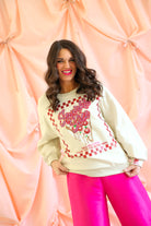 Add a little extra cheese and a whole lot of sparkle to your everyday look 🍕✨ The Beige & Red Sparkle Slice Sweatshirt by Queen of Sparkles is playful, cozy, and completely irresistible. Featuring a bold, pizza-inspired graphic with shimmering sequin details and vibrant red accents, this sweatshirt brings fun fashion energy to even the most casual days.