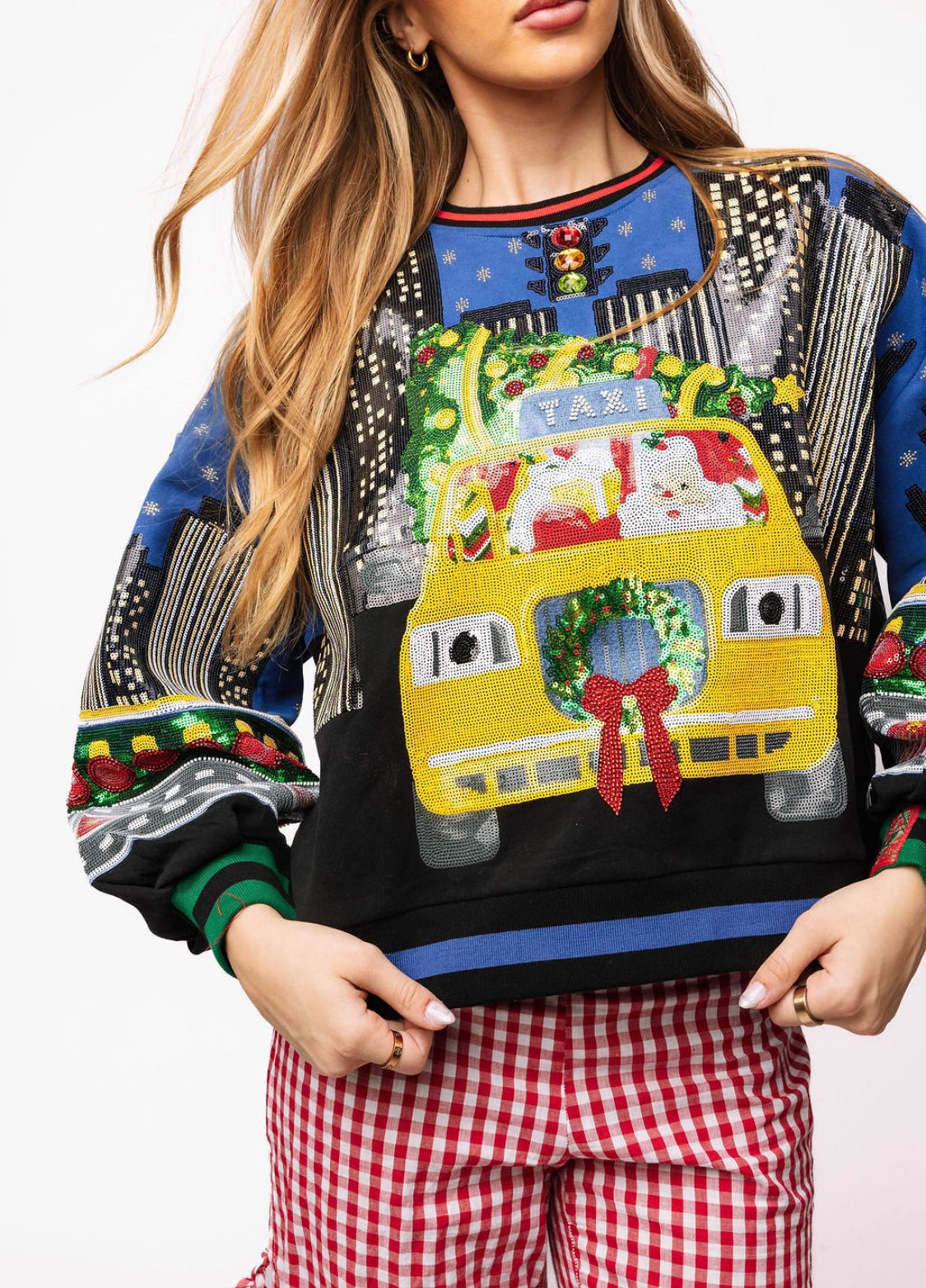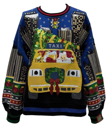 Christmas Taxi NYC Scene Sweatshirt Queen of Sparkles