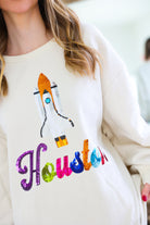 Show your H-Town pride with sparkle in the Light Beige “Houston” City Icon Sweatshirt by Queen of Sparkles 🤠🚀✨ This ultra-cozy sweatshirt features a fully sequined Houston city icon paired with multicolor sequin “Houston” lettering for a bold, eye-catching look. Soft, stylish, and effortlessly glam, it’s perfect for game days, rodeo season, concerts, weekend outings, or adding a little extra shine to your everyday wardrobe. A must-have for every Houston queen who loves to stand out! 💖🌆