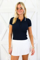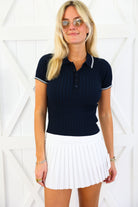 The Player Polo Top blends sporty and polished in the best way. A flattering fit with classic collar detail makes it an easy wardrobe staple.