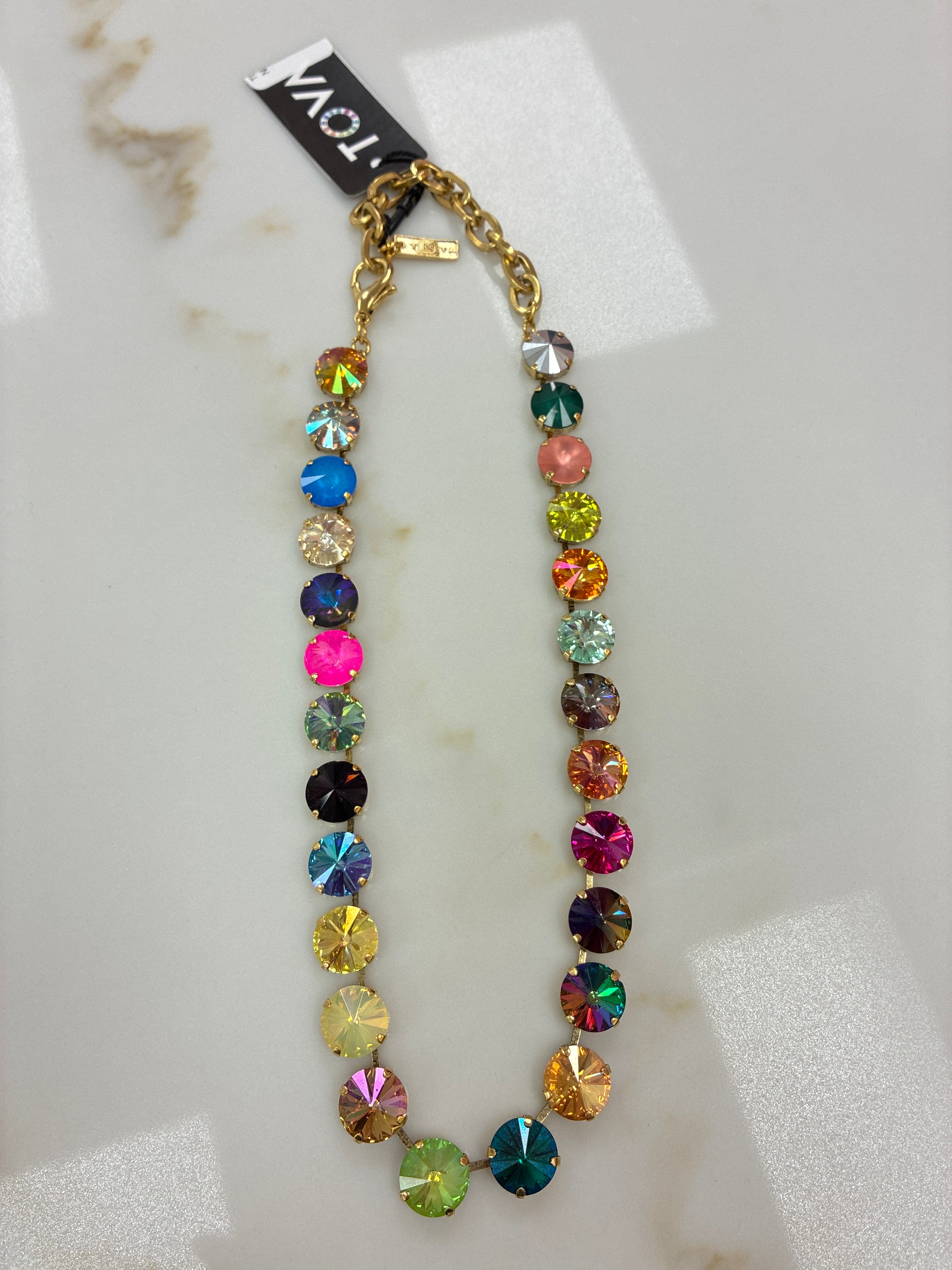 The TOVA Sofia Necklace is the definition of a true statement piece. Designed with a completely unique mix of hand-set crystals, this one-of-a-kind beauty brings unmatched sparkle, dimension, and exclusivity to your collection. No two are alike — making this piece as special as the woman wearing it.
