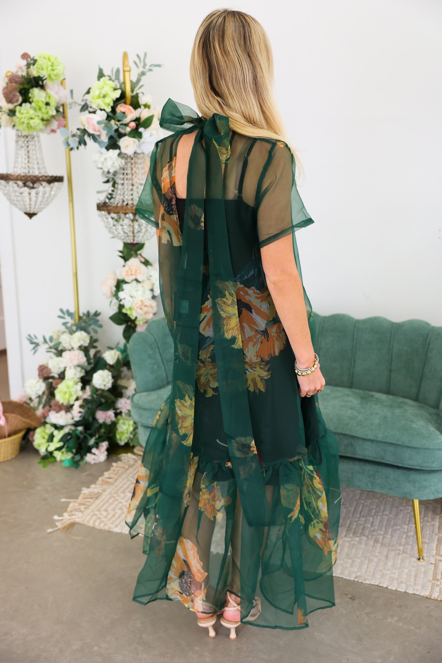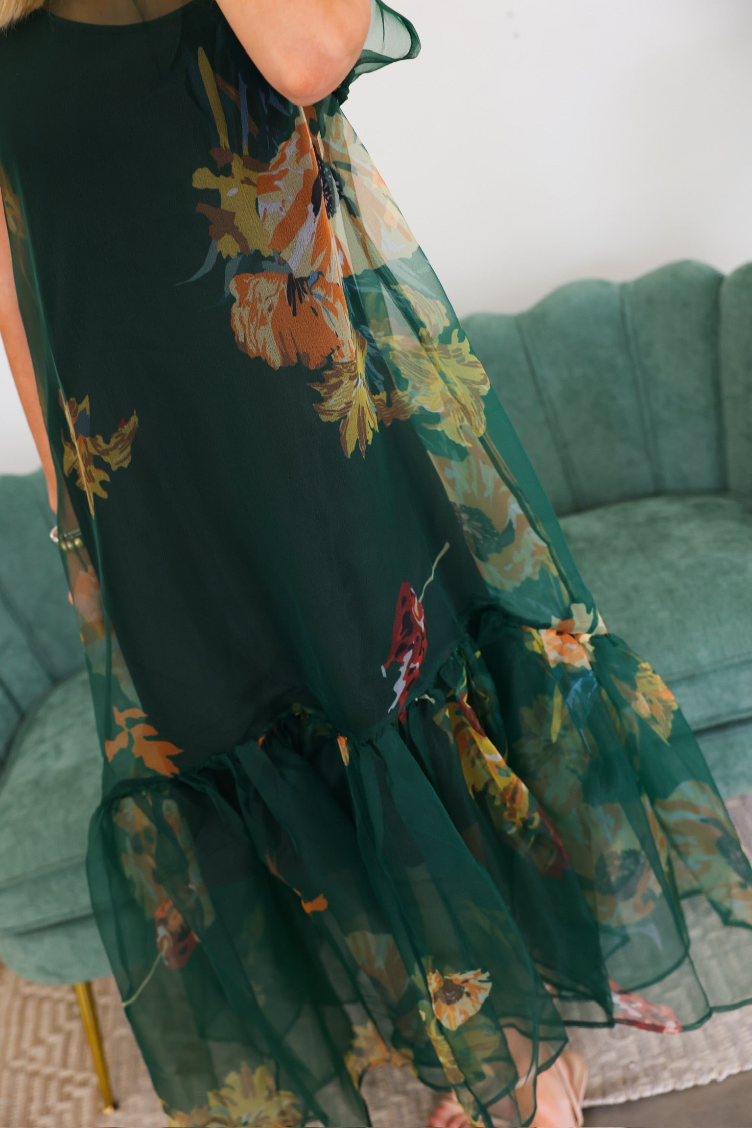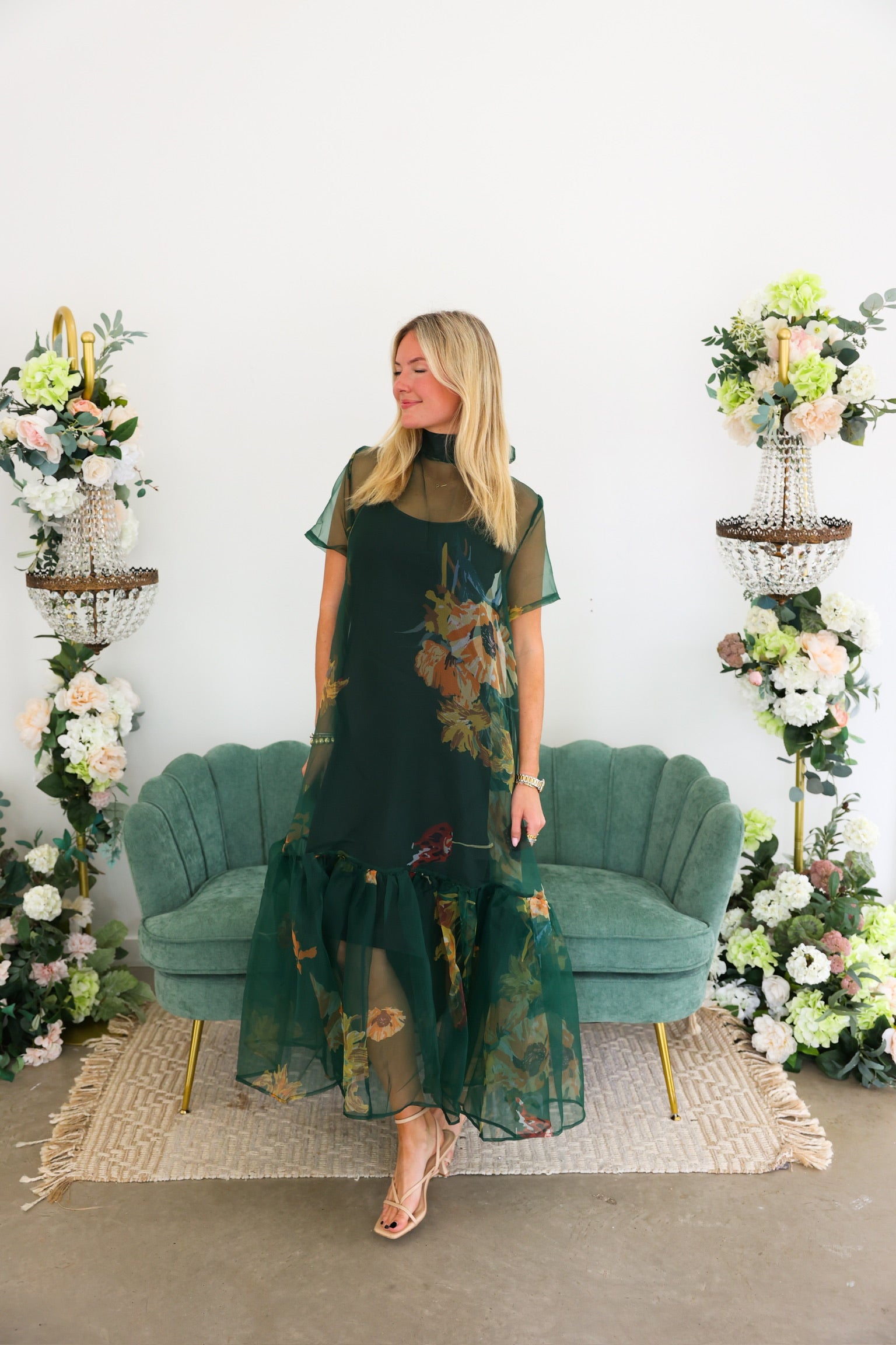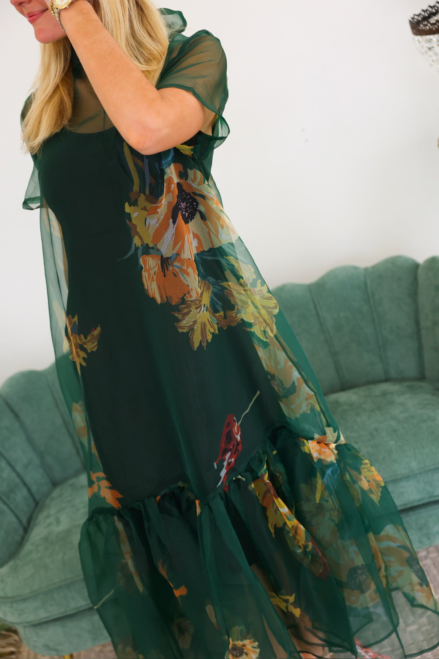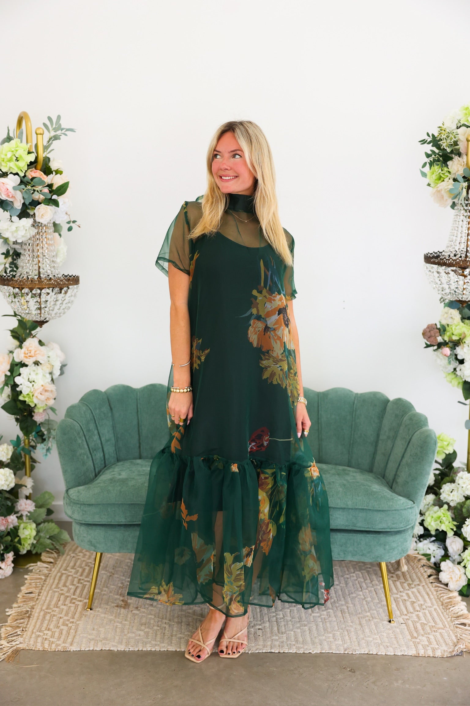 Sheer Floral Maxi Dress with Slip - Evergreen