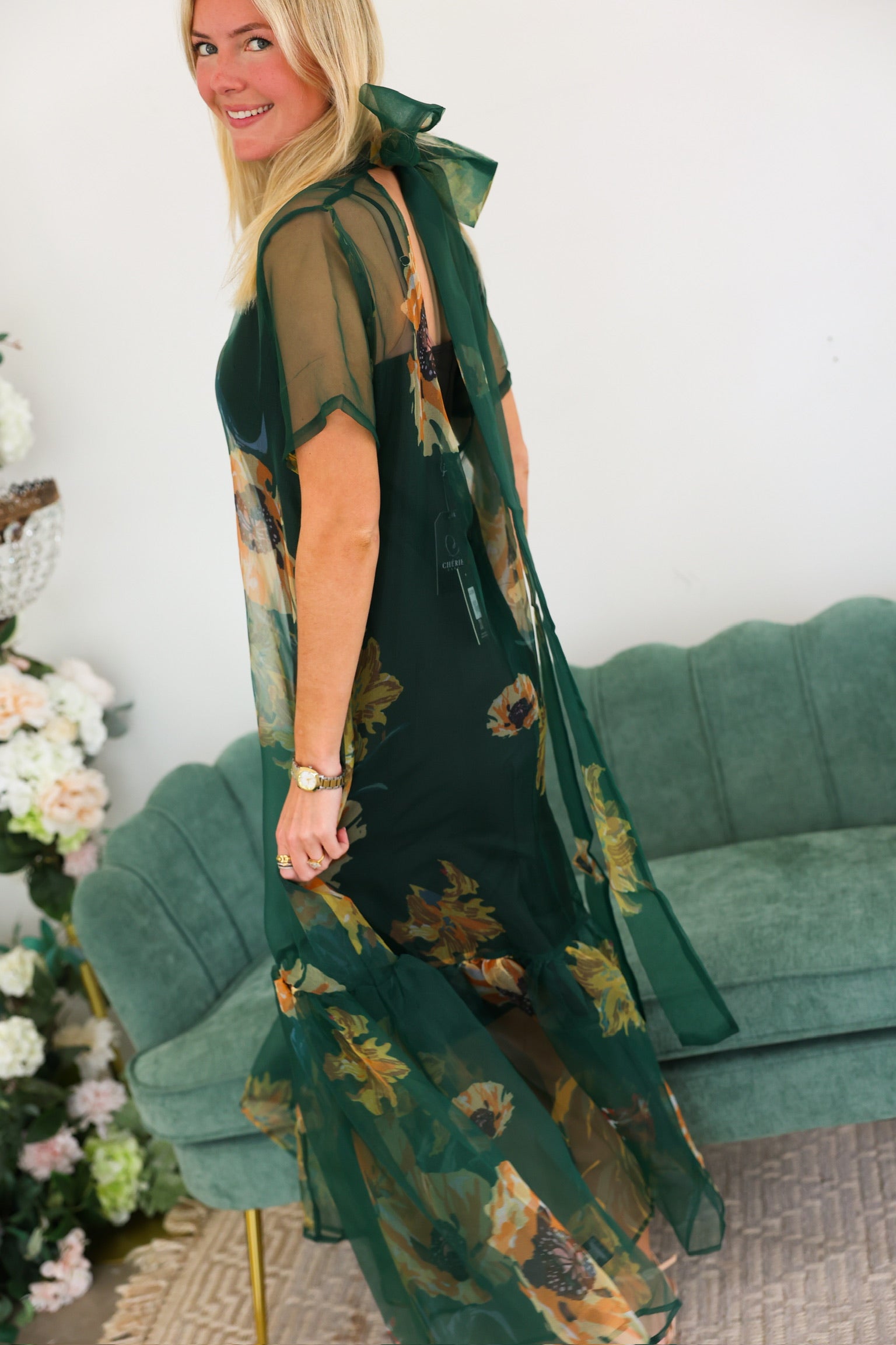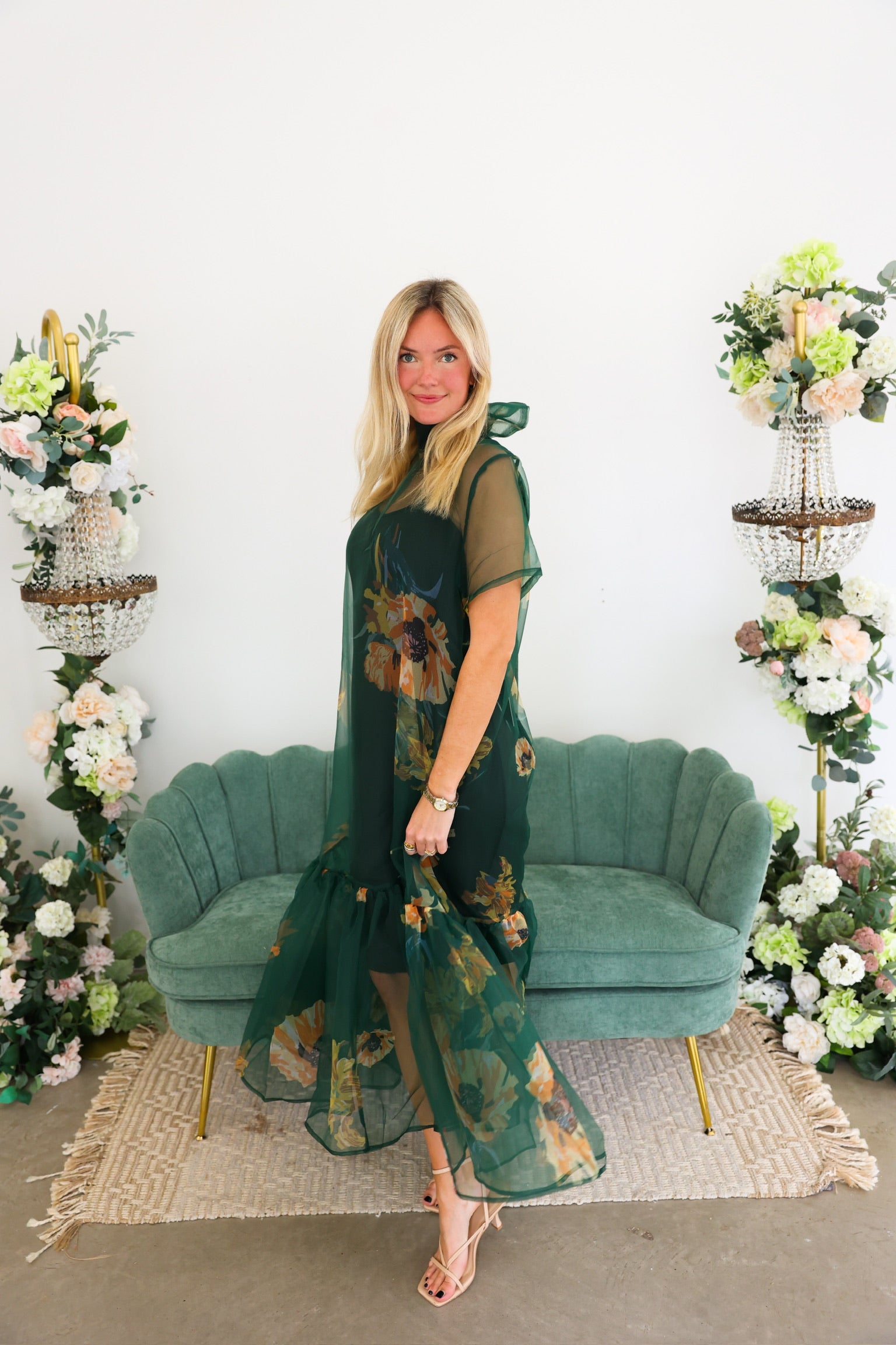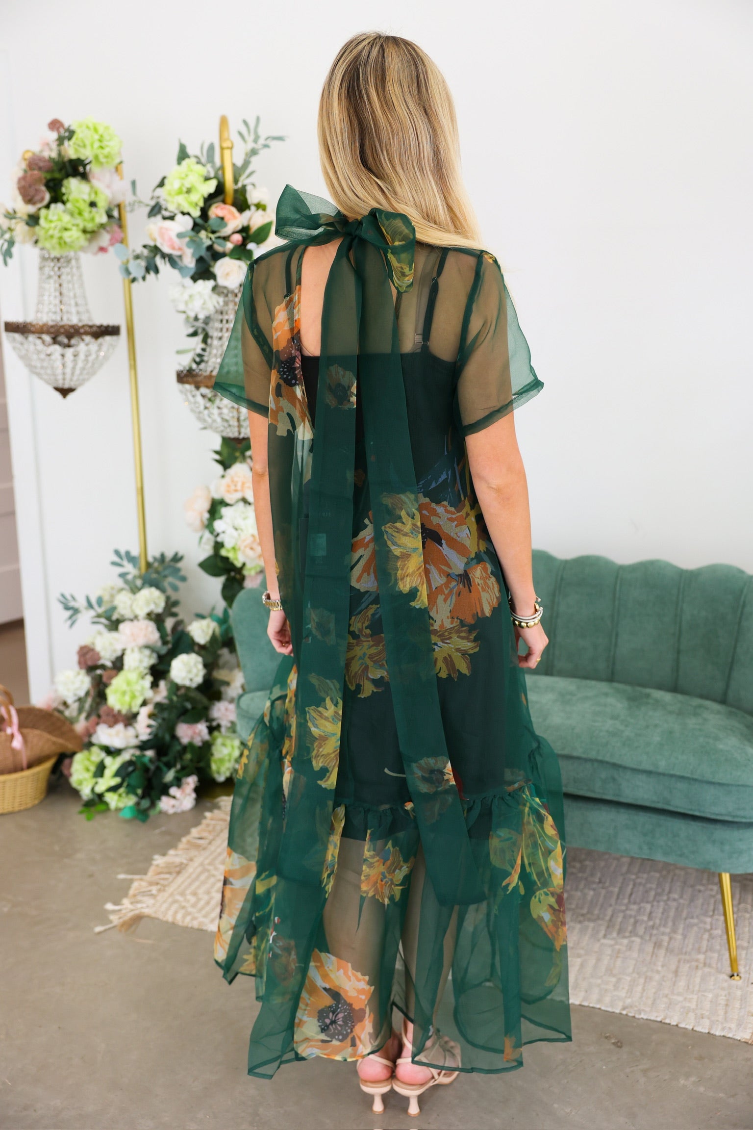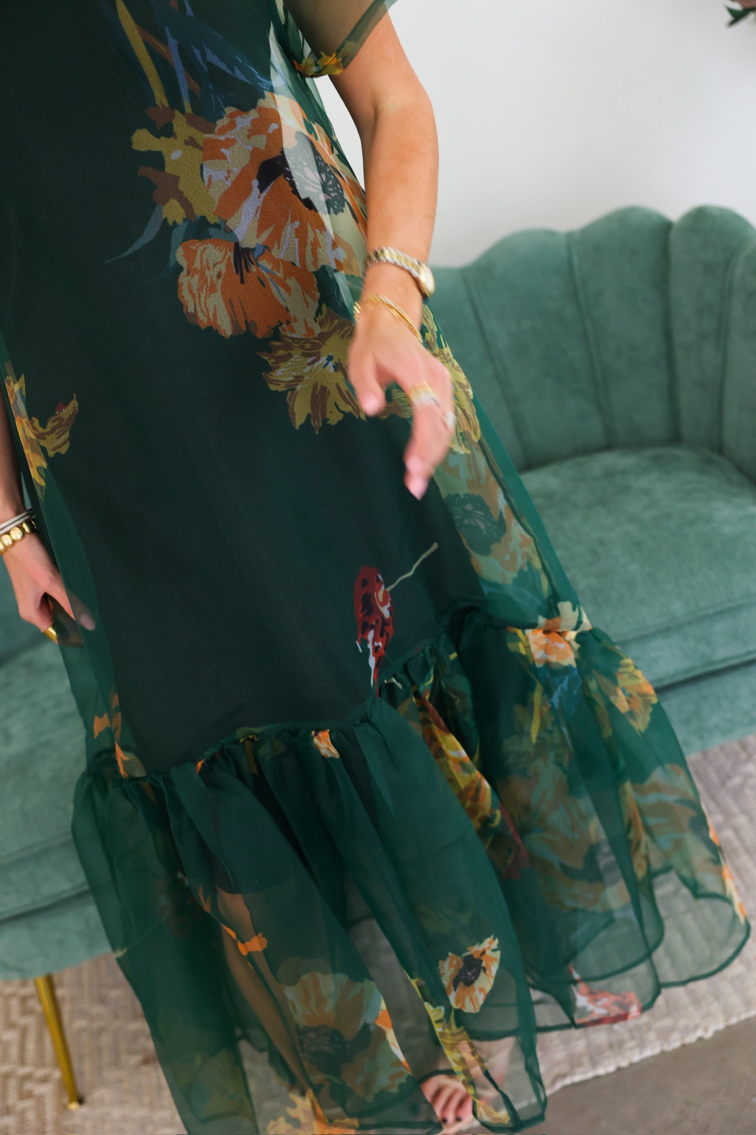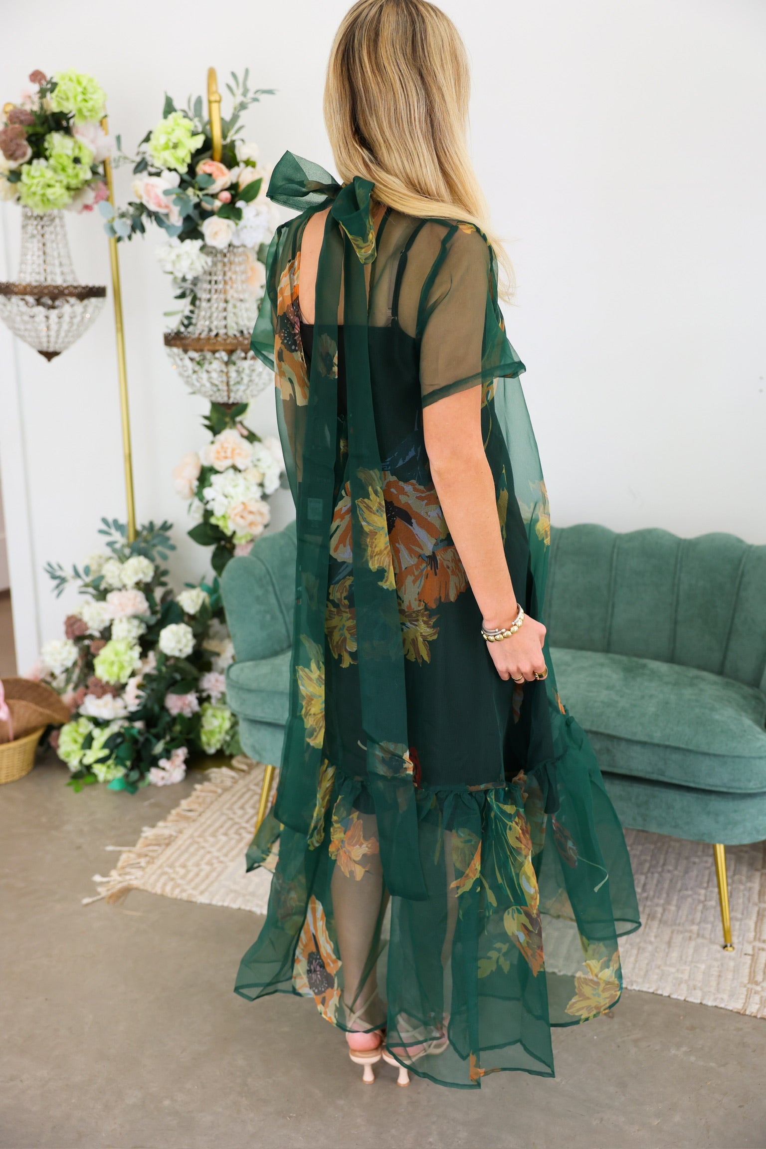 Sheer Floral Maxi Dress with Slip - Evergreen