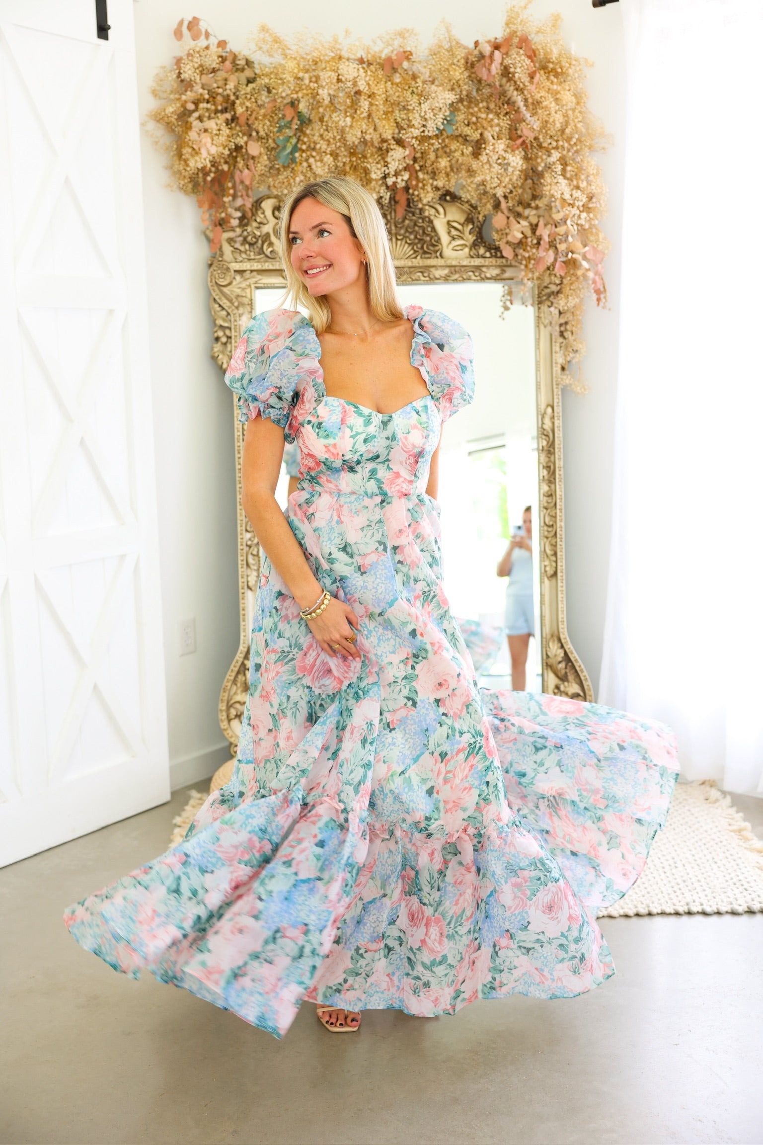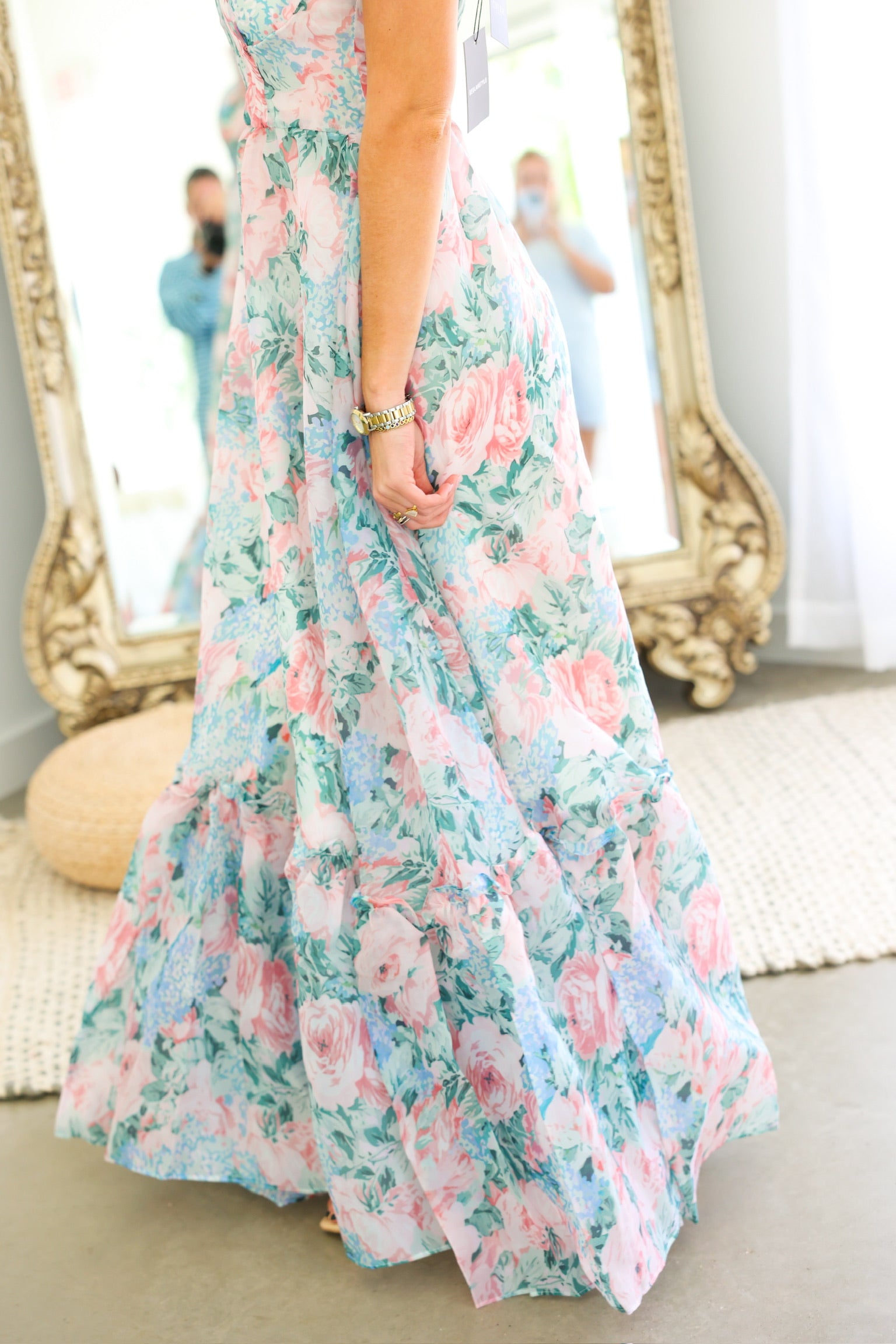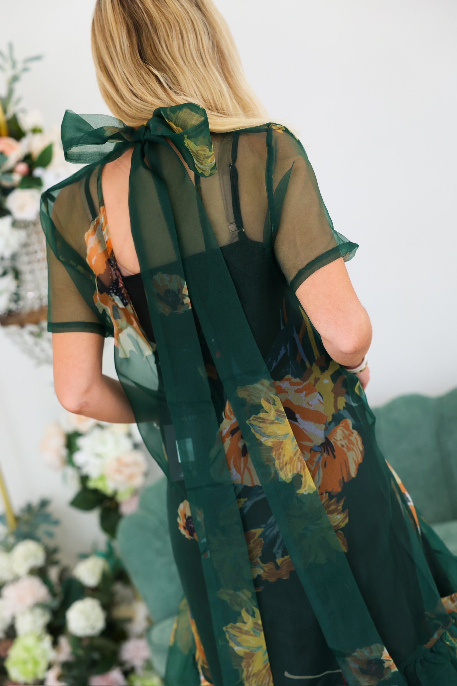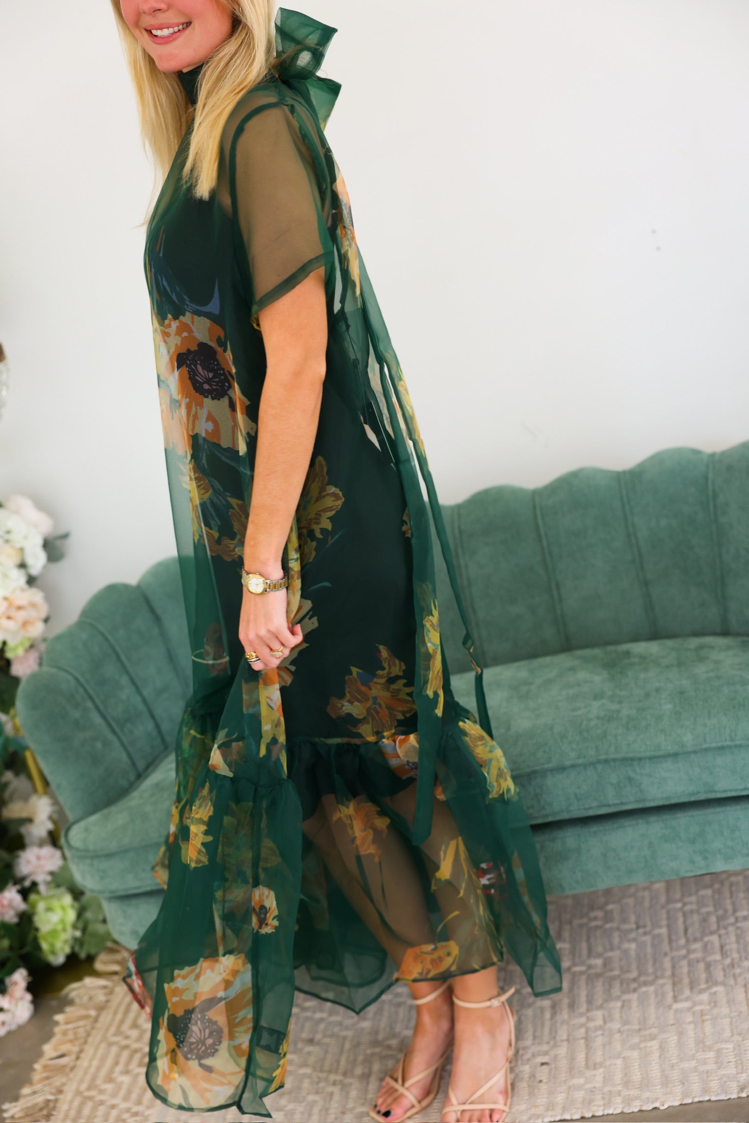Sheer Floral Maxi Dress with Slip - Evergreen