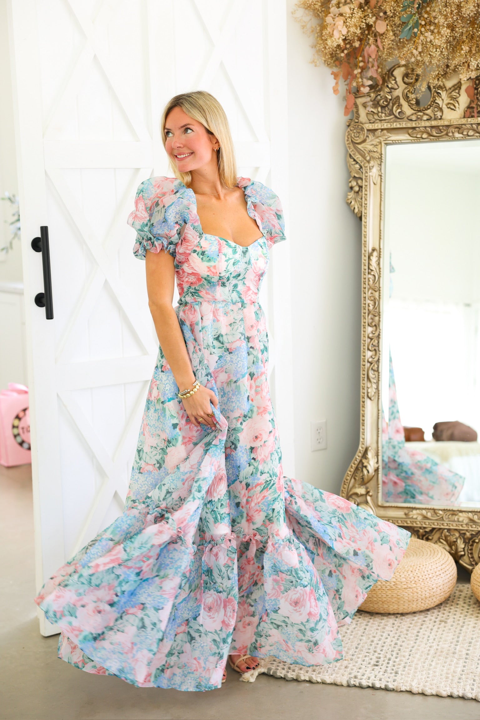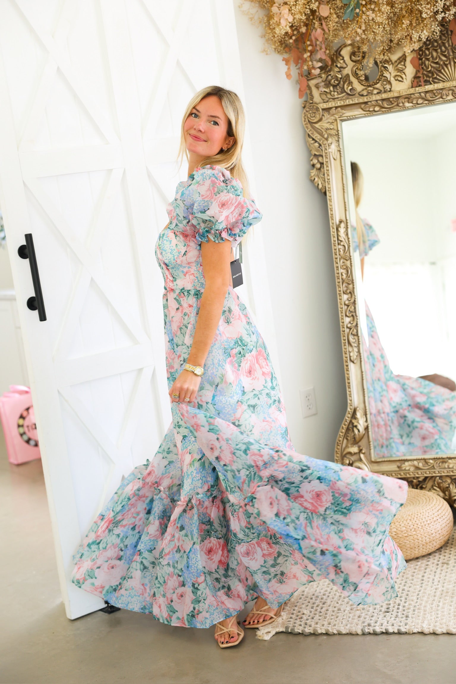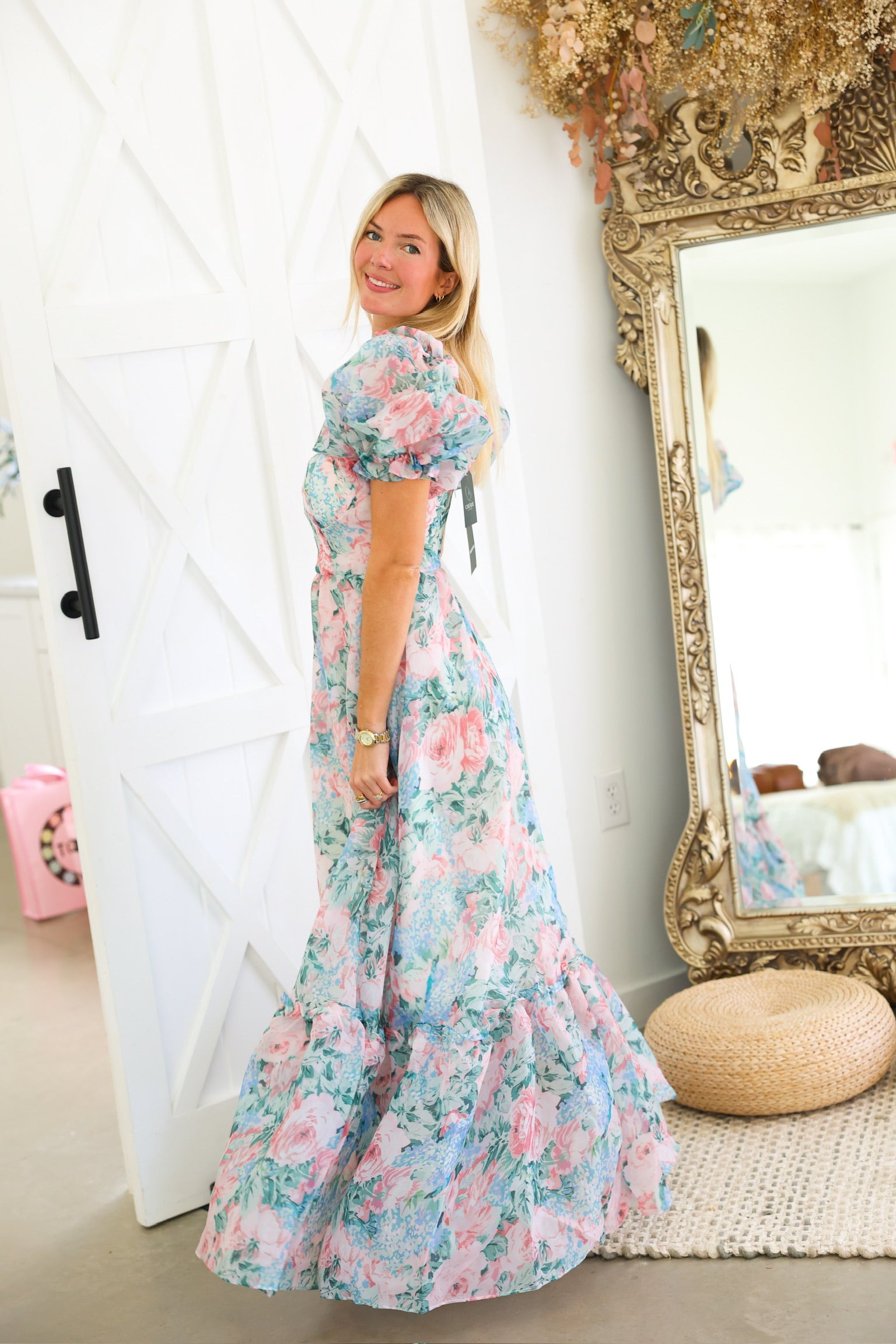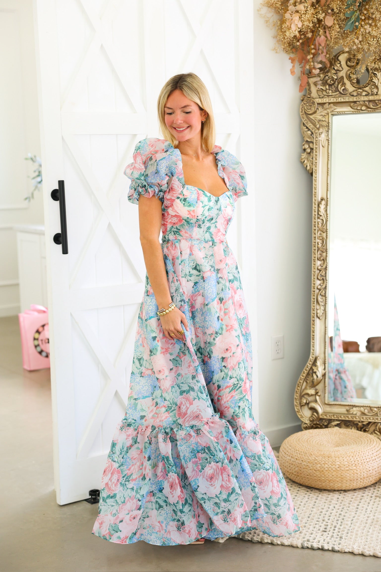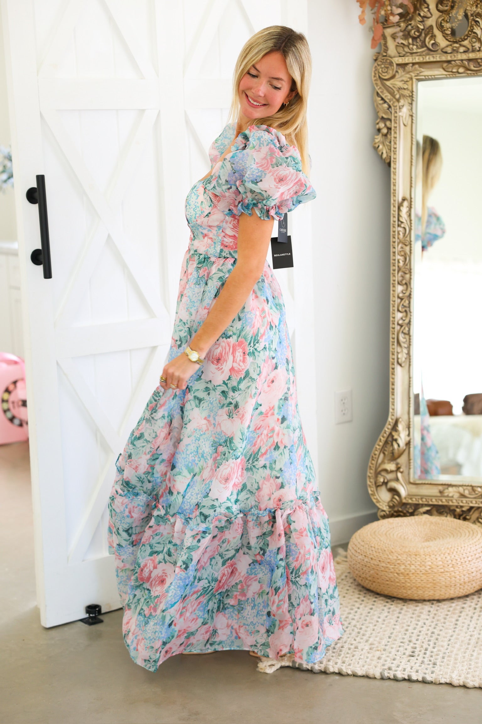 Sheer Floral Maxi Dress with Slip - Evergreen