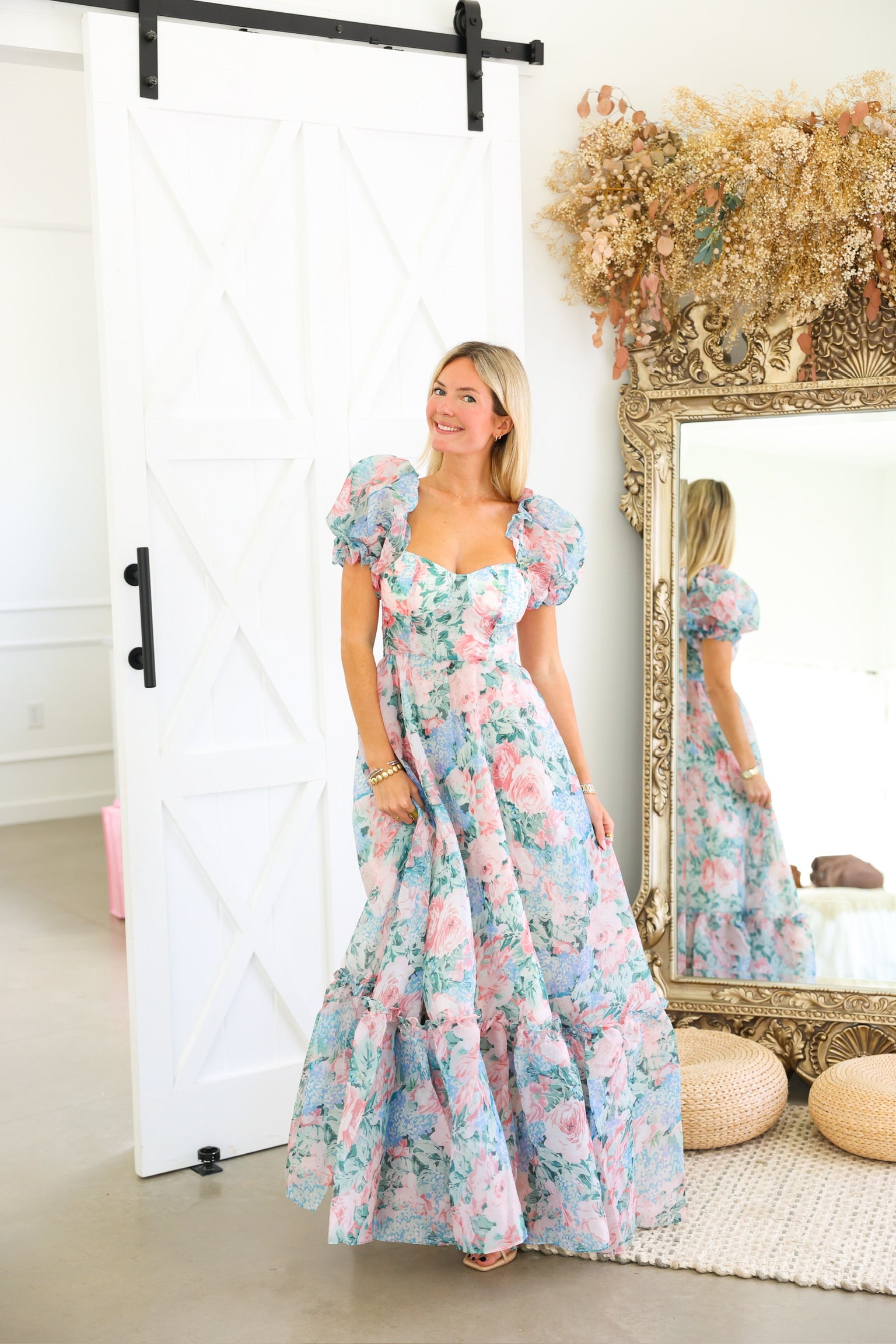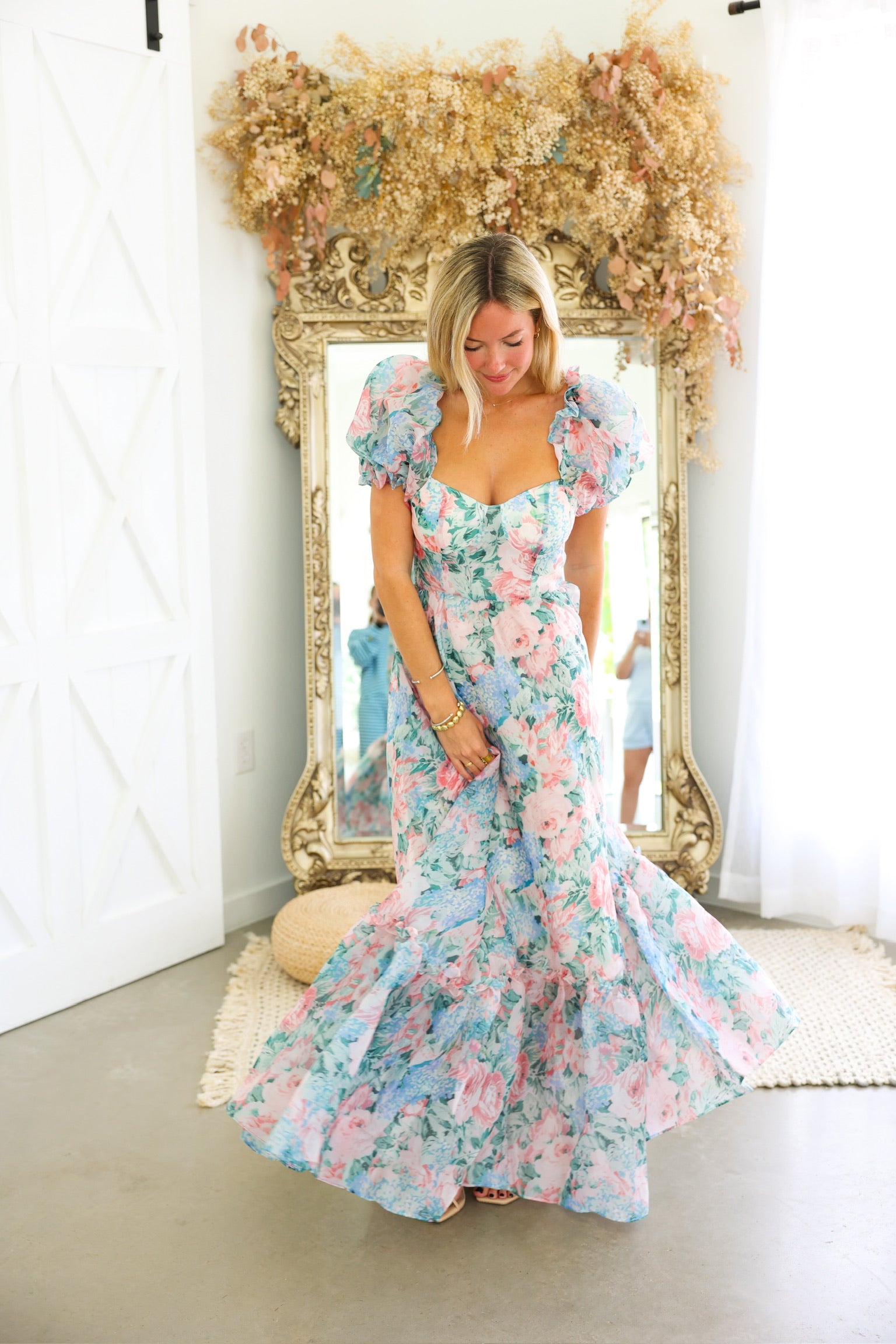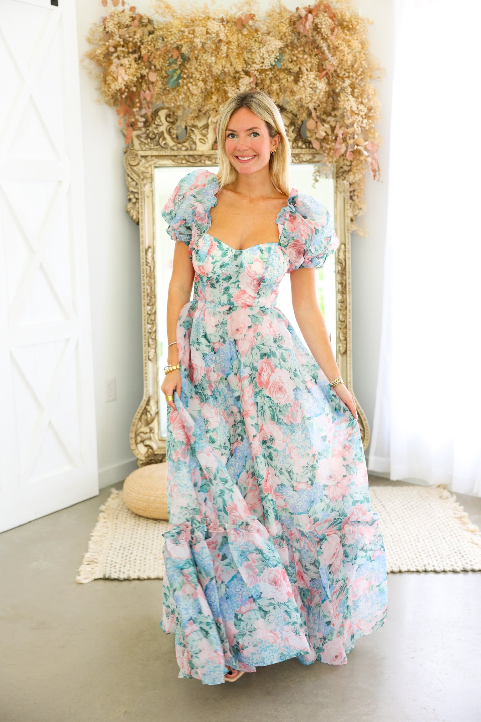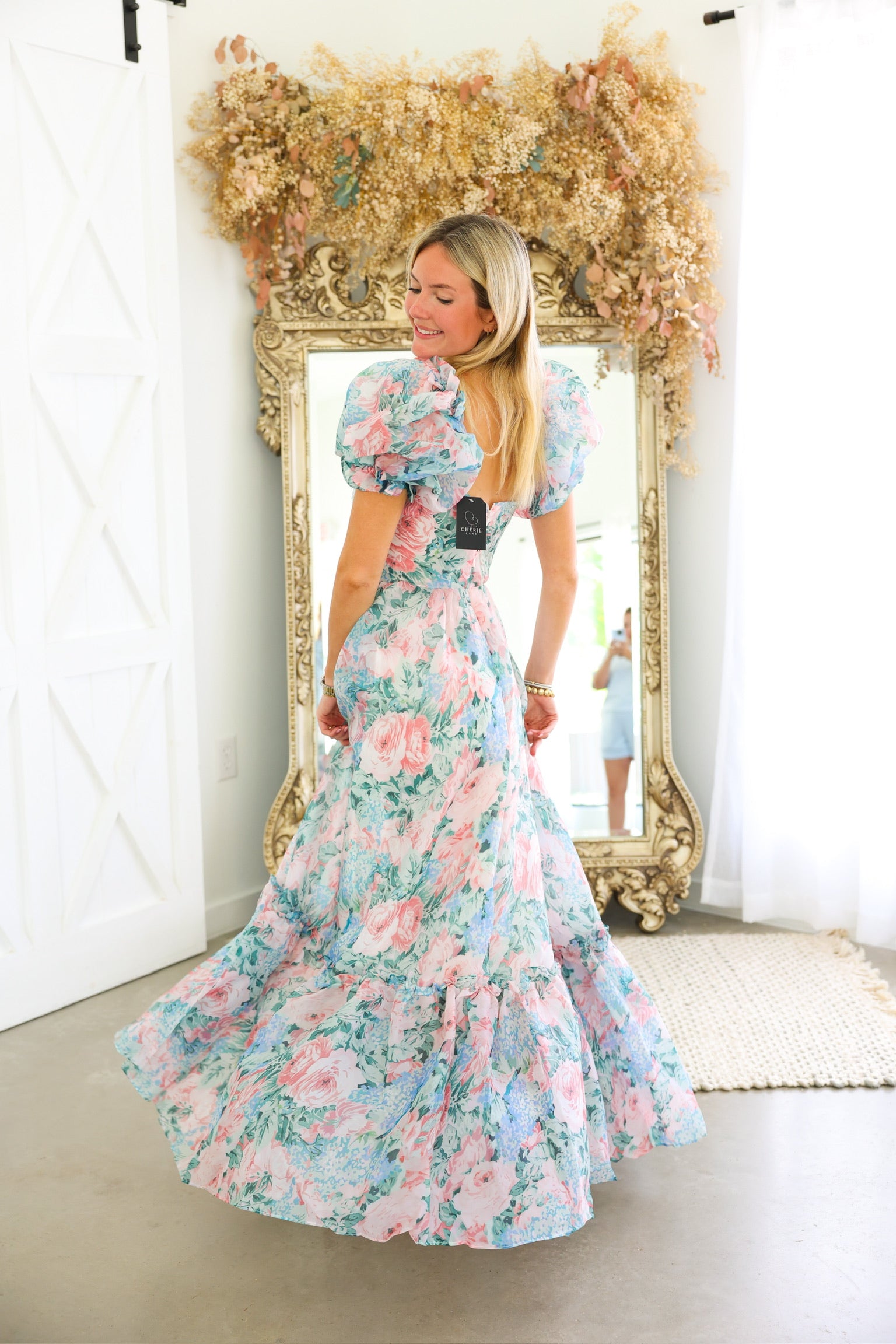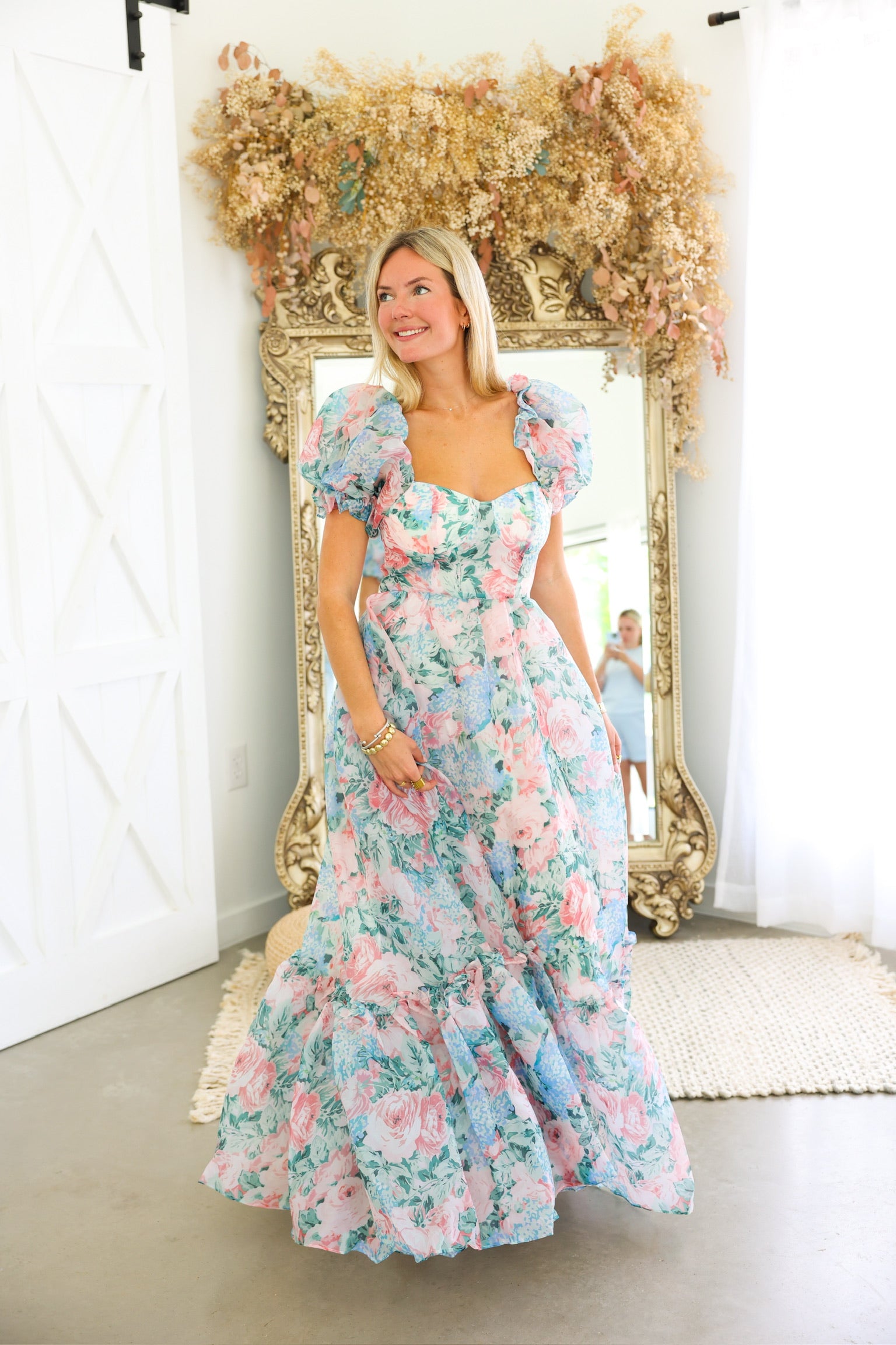 Sheer Floral Maxi Dress with Slip - Evergreen