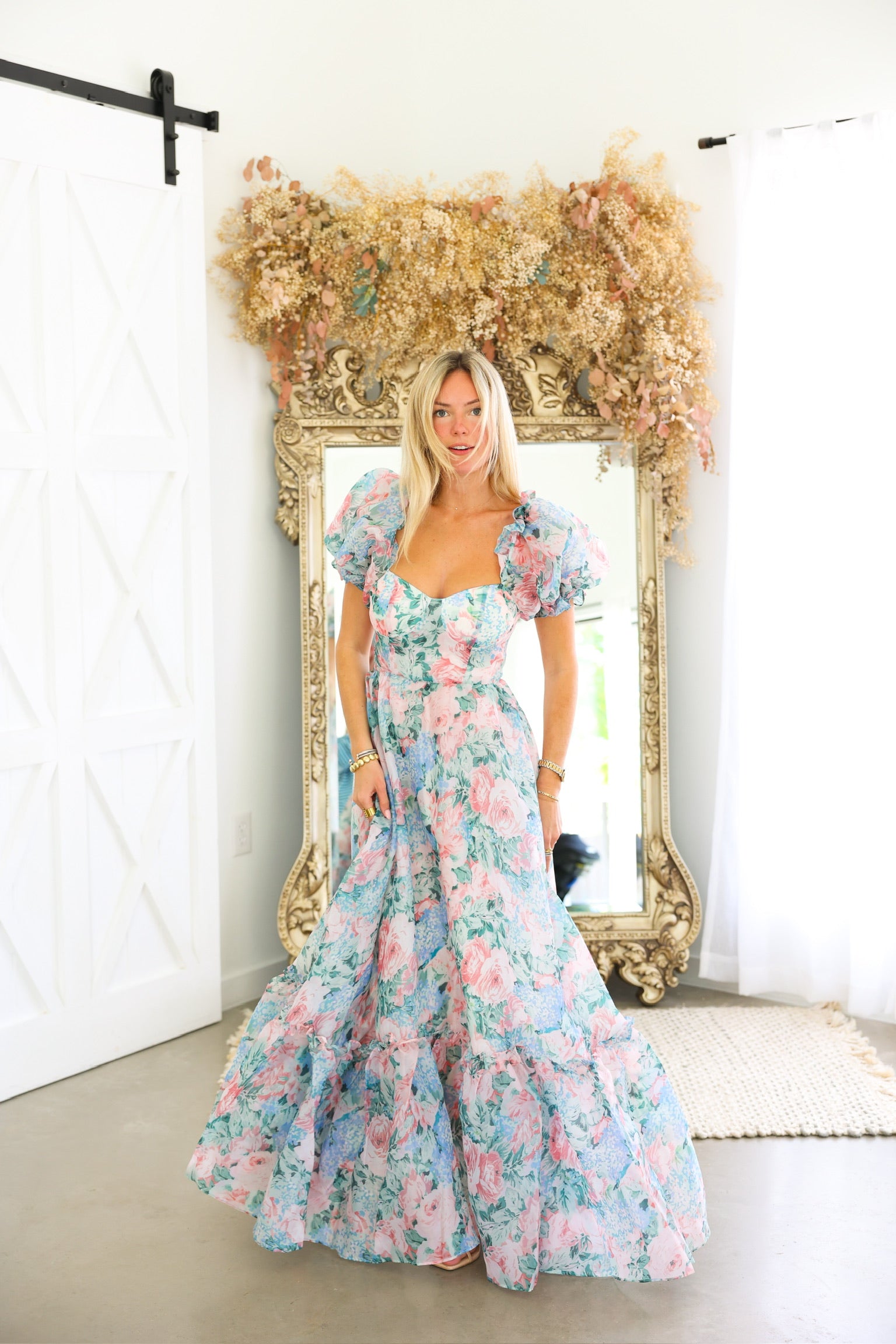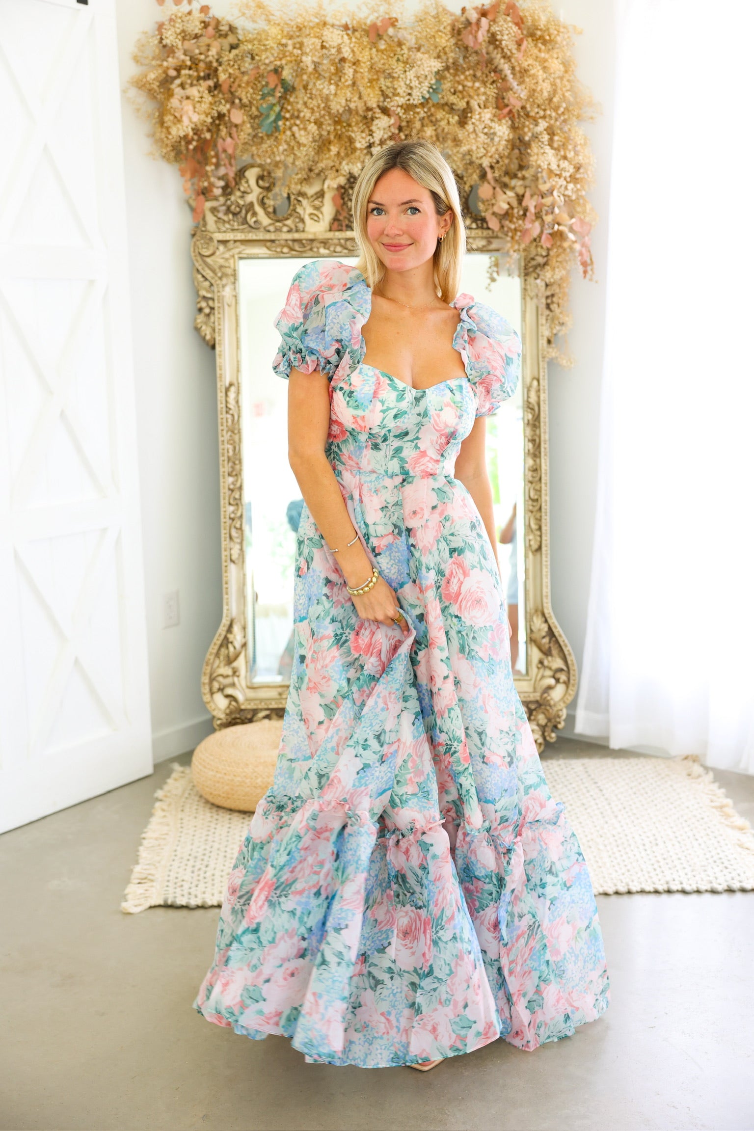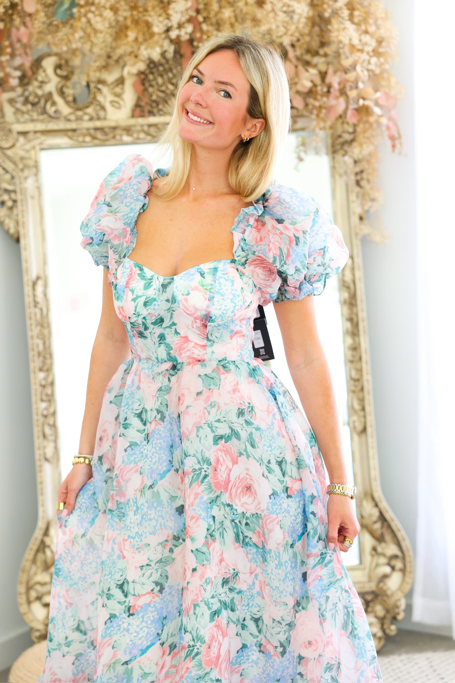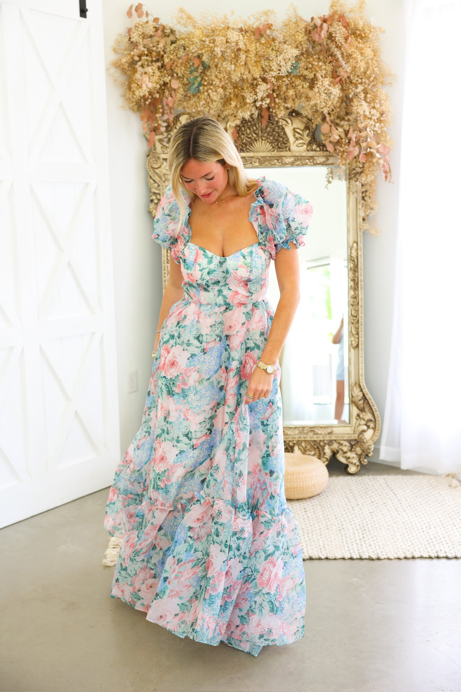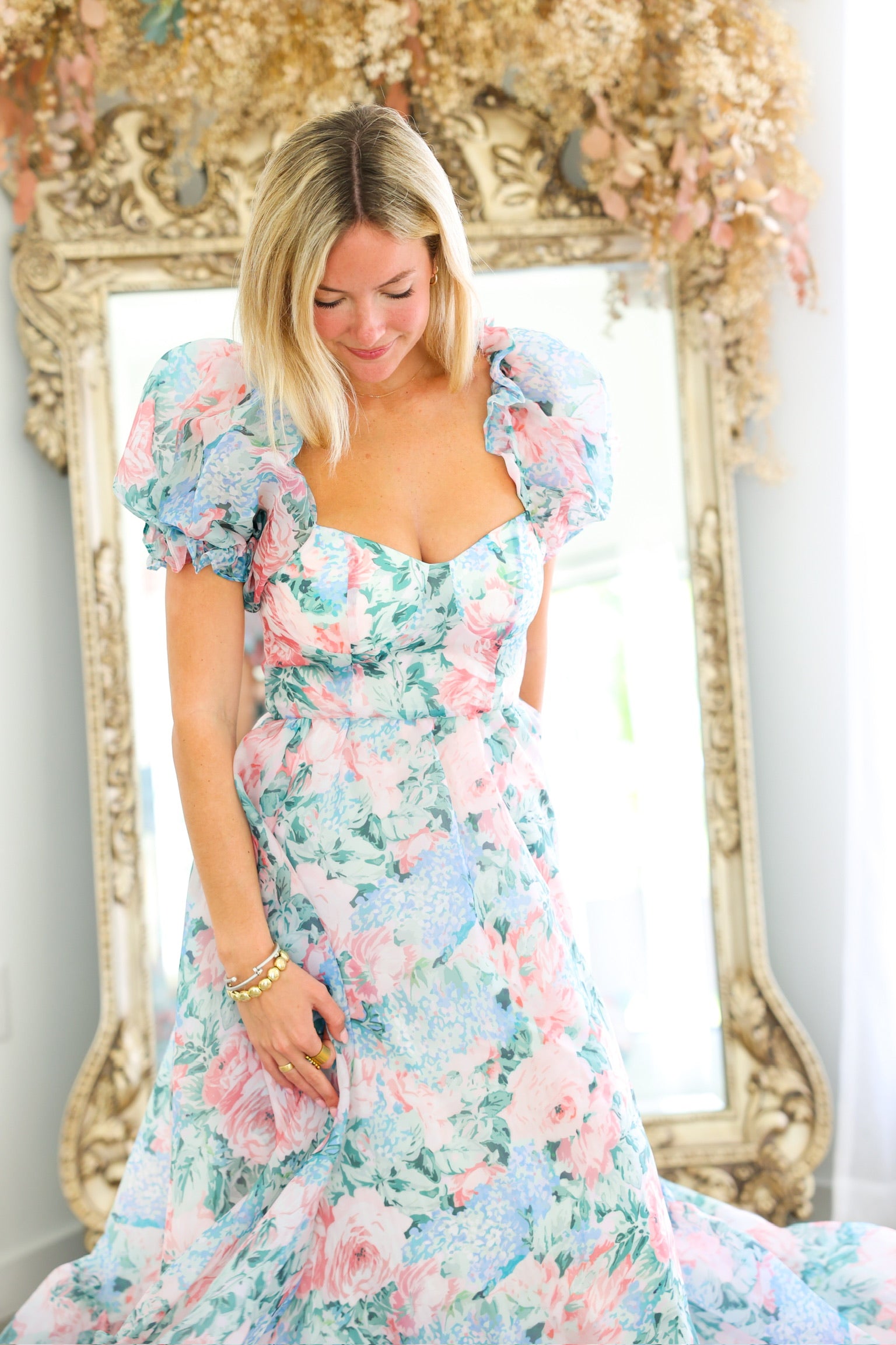 Sheer Floral Maxi Dress with Slip - Evergreen