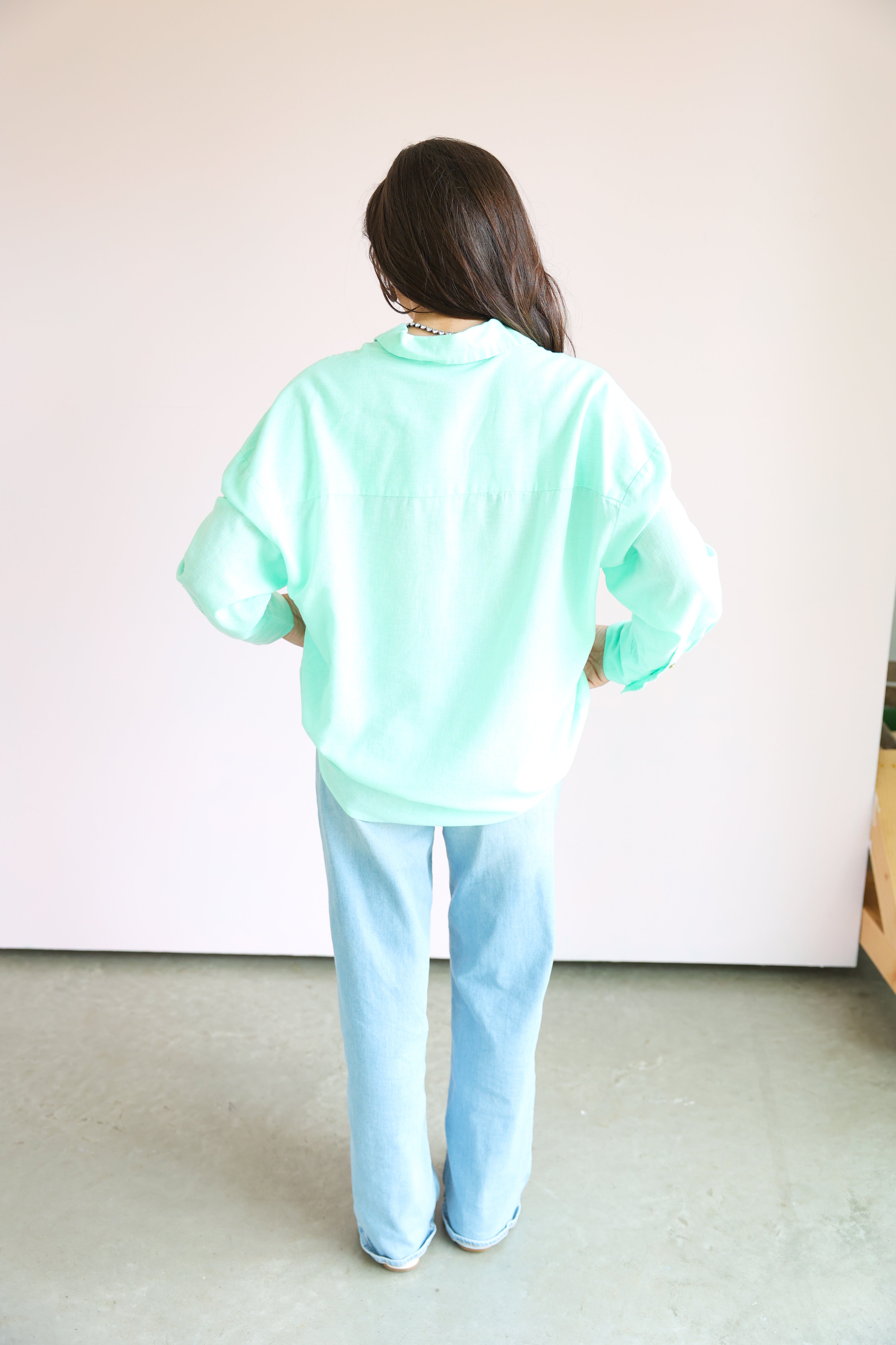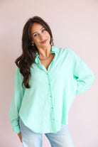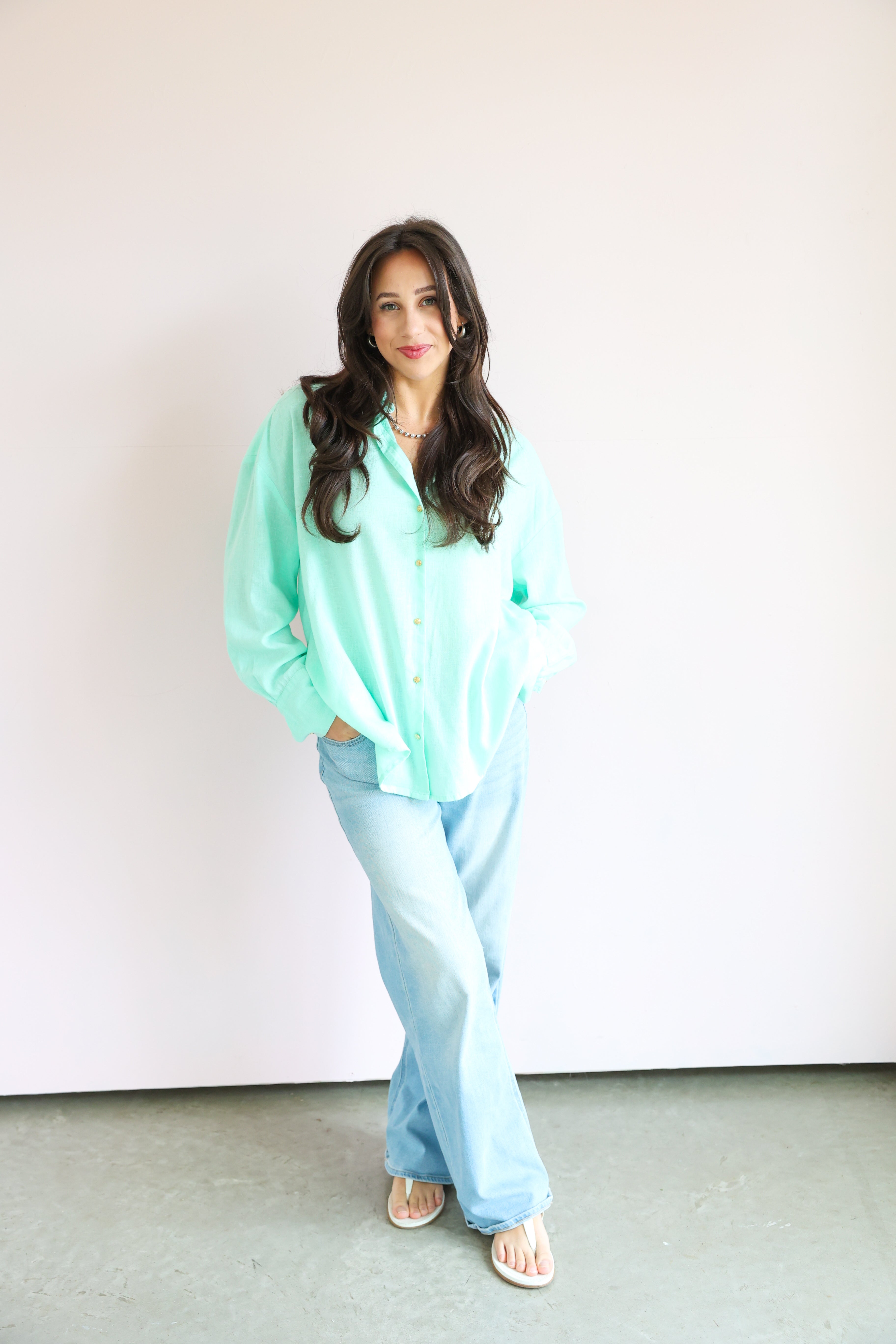 Fresh, light, and effortlessly polished. The Elan Button Down – Mint 🌿 brings a soft pop of color to your everyday wardrobe with a relaxed, easy-to-wear silhouette.