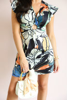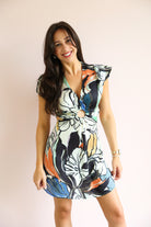 Playful, fresh, and effortlessly flattering. The Elan Blue Botanical Mini Dress šæ features a vibrant, artistic print with a twist-front detail that creates a beautifully shaped silhouette.