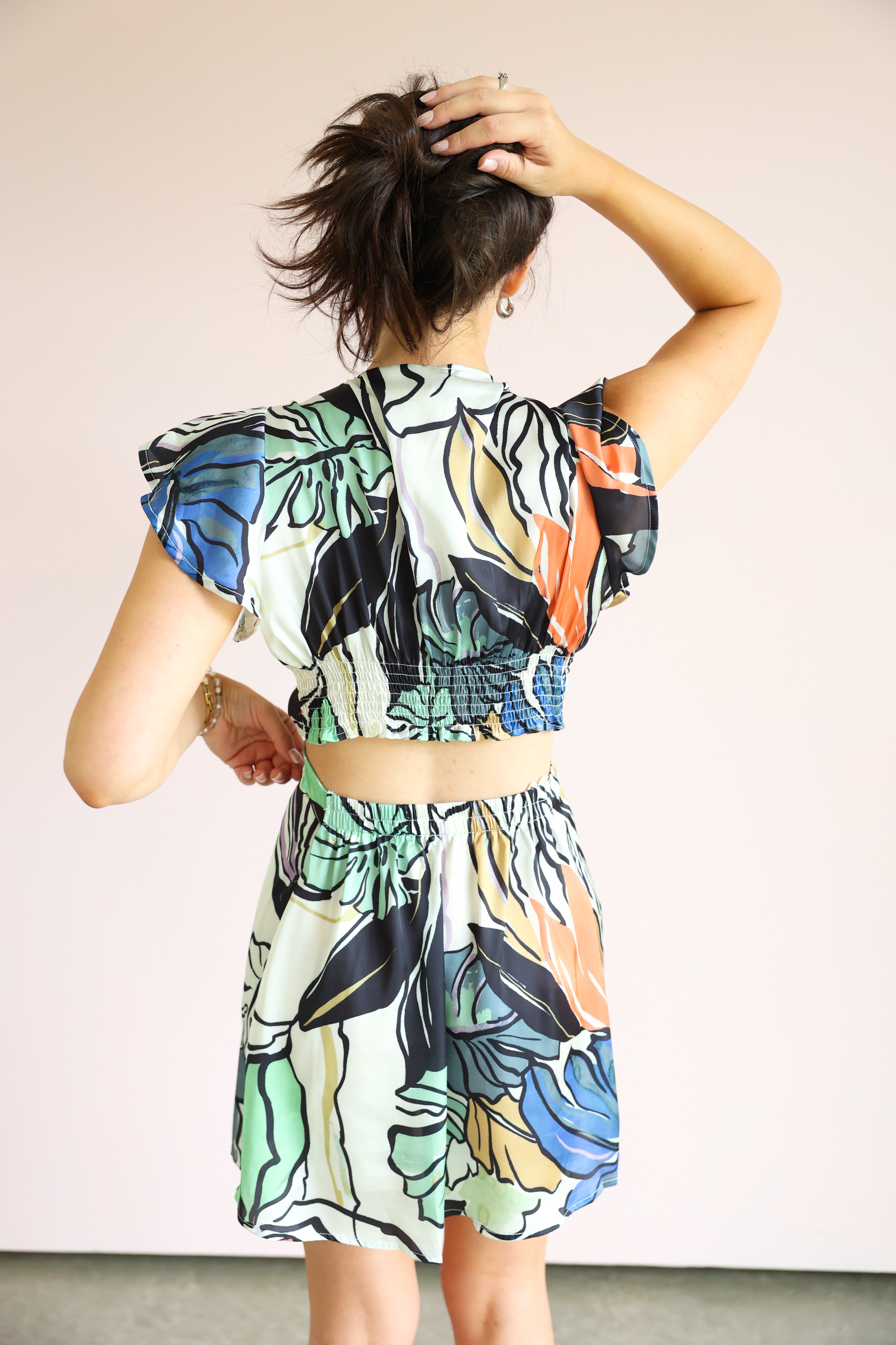The lightweight fabric and easy fit make it perfect for warm days, while the soft flutter sleeves add a feminine, breezy touch. Whether you're heading to brunch or on vacation, this dress is an easy go-to for standout style.