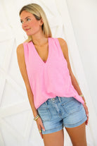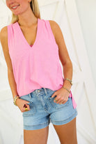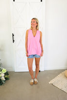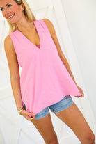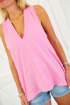 šŸ’— Cotton Modal Slub Tank with Box Pleat Back Detail – Blush