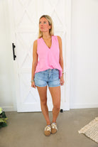 This tank is the perfect blend of softness and subtle detail. Featuring a dreamy blush hue and a relaxed silhouette, it’s designed to feel effortless while still offering a polished, feminine look. The box pleat back detail adds a unique touch, giving it beautiful movement and dimension.