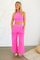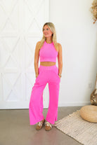 šŸ’– Halter Neck Crop Top and Pants Set – Fuchsia