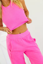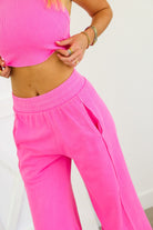 Halter Neck Crop Top and Pants Sets - Fuchsia