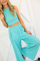 š Halter Neck Crop Top and Pants Set ā Neon Aqua