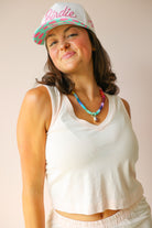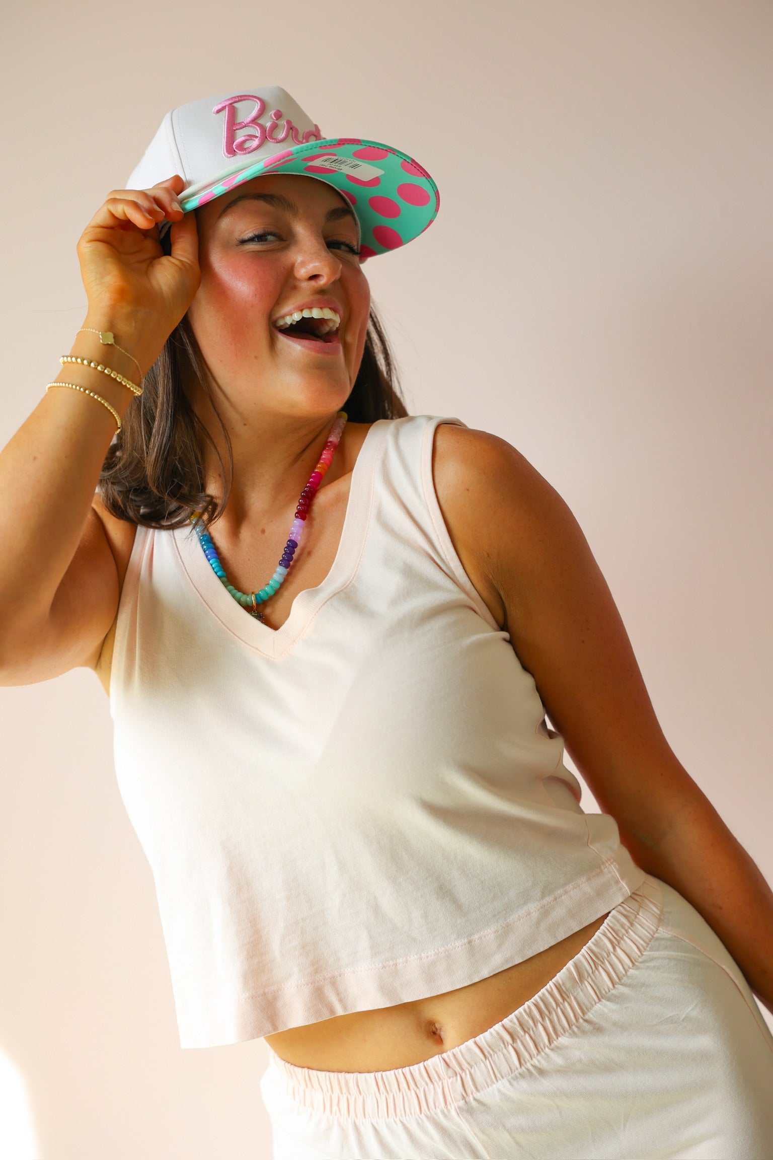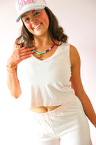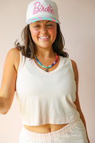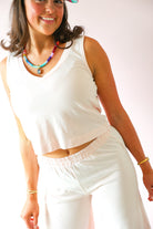 Pair it with the matching rib pants or denim shorts for an easy, coordinated look.