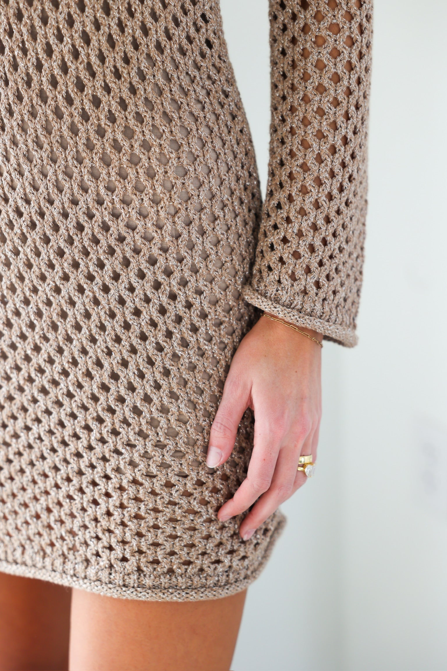 • Crochet fabrication with subtle shimmer