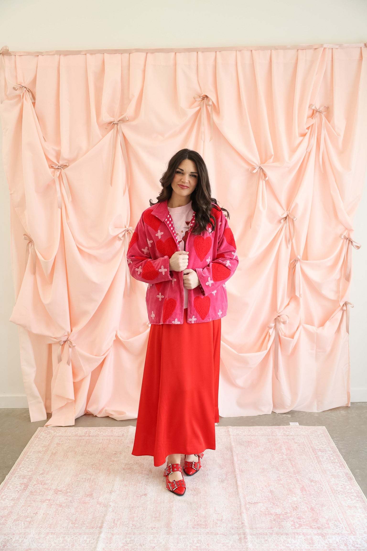 Equal parts artful and wearable, this jacket is perfect for Valentine’s season, statement dressing, or anytime you want to add a little heart (and personality) to your look.