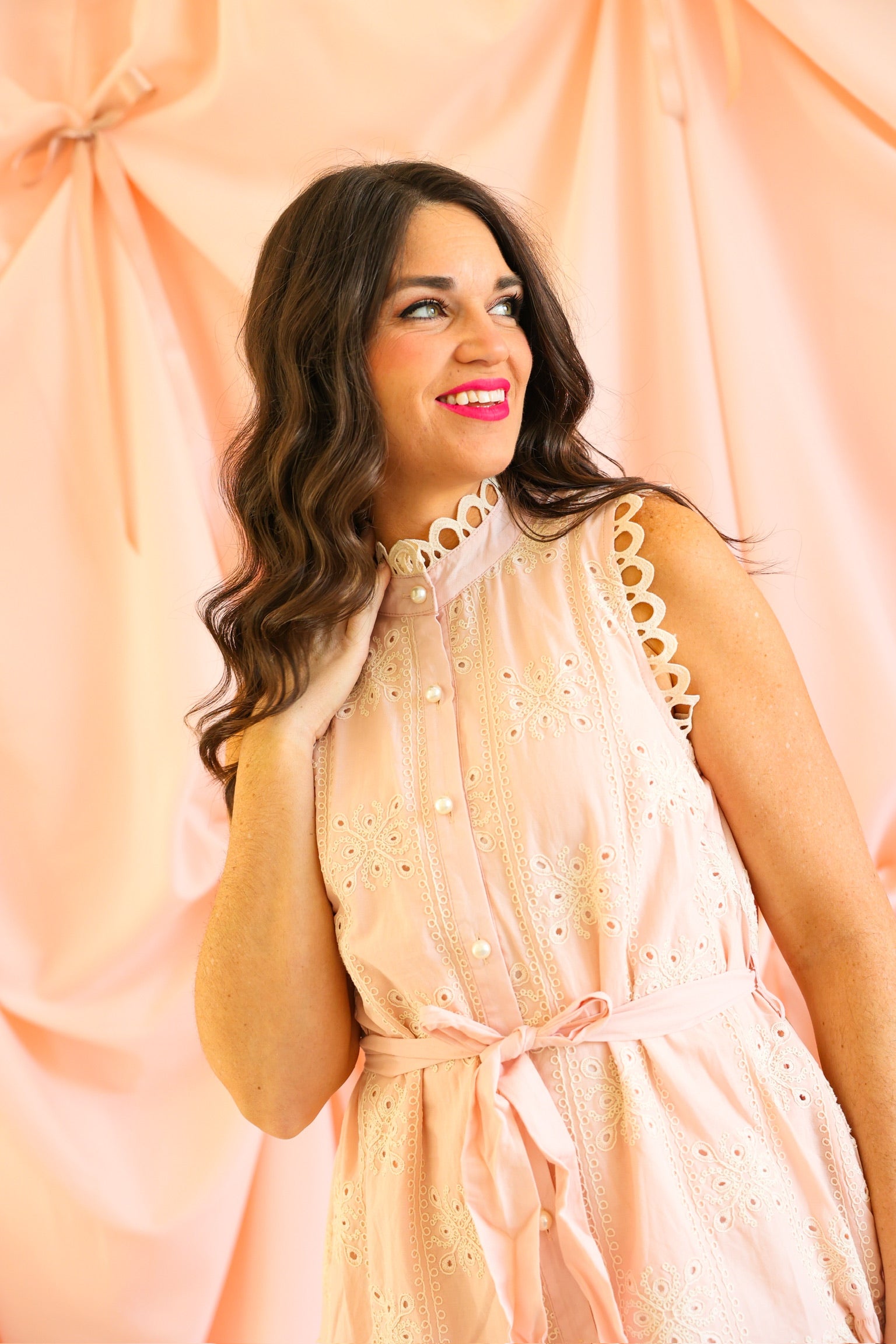 - Sleeveless dainty pink dress