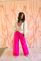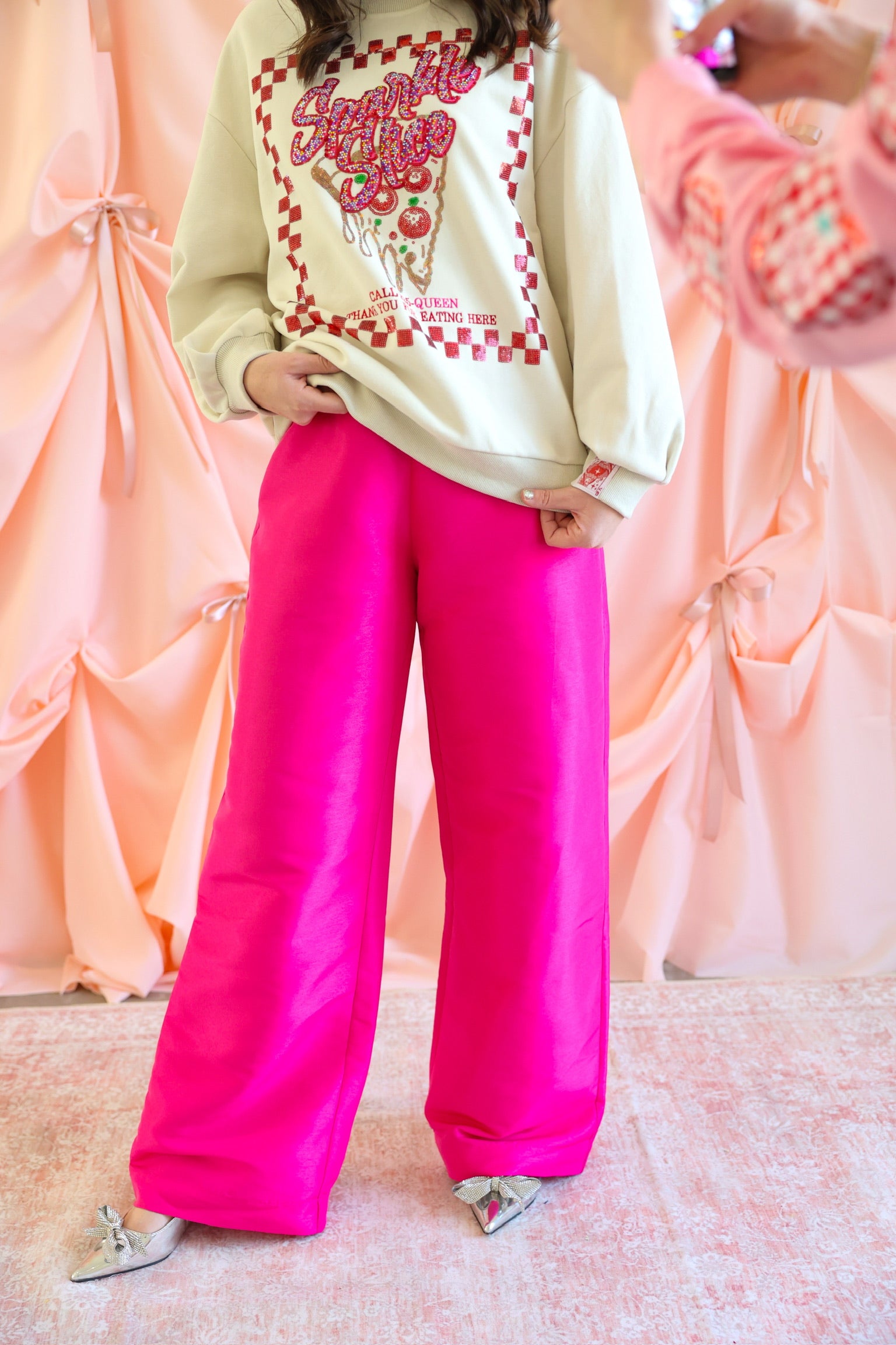 Meet your new statement pant 💕 The Hestia Pink Wide Leg Pants by Sugarlips bring bold color and effortless polish together in one standout silhouette. Designed with a clean, high-rise waist and fluid wide-leg shape, these pants instantly elevate everything from simple tanks to dressy blouses. The vibrant pink hue adds a playful pop while the tailored fit keeps the look refined and chic.
