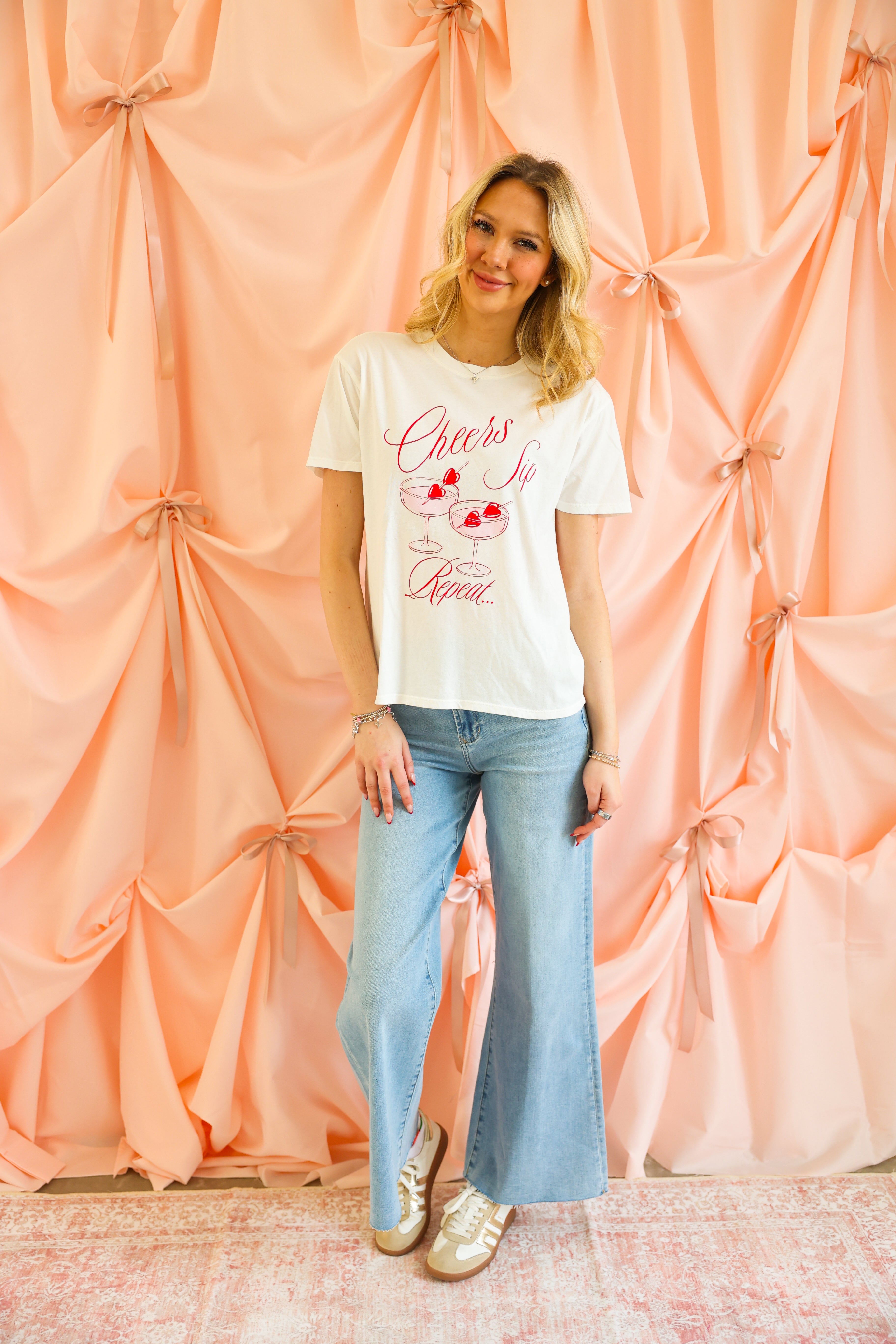 Cheers to cute, casual style! The Z Supply Cheers Boyfriend Tee brings a playful twist to everyday basics with its charming cocktail graphic and flirty “Cheers Sip Repeat…” lettering. Made from Z Supply’s signature soft cotton jersey, this tee has that perfectly worn-in feel you’ll reach for again and again.